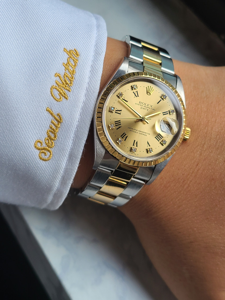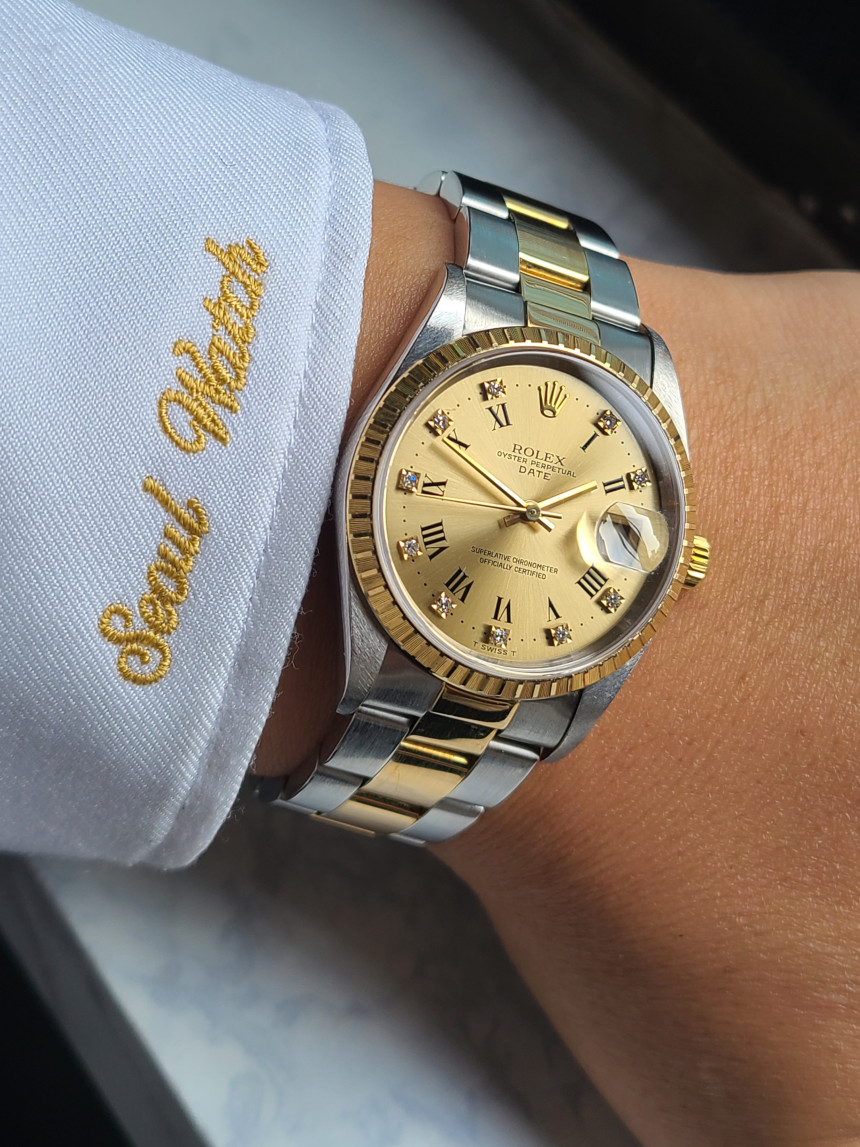 또한 일반 민판이 아닌 롤렉스 순정 10P 다이아몬드가 탑재되어 있으며, 고급스러운 다이아몬드와 옐로우골드 콤비의 조합이 아름다운 시계 입니다.
