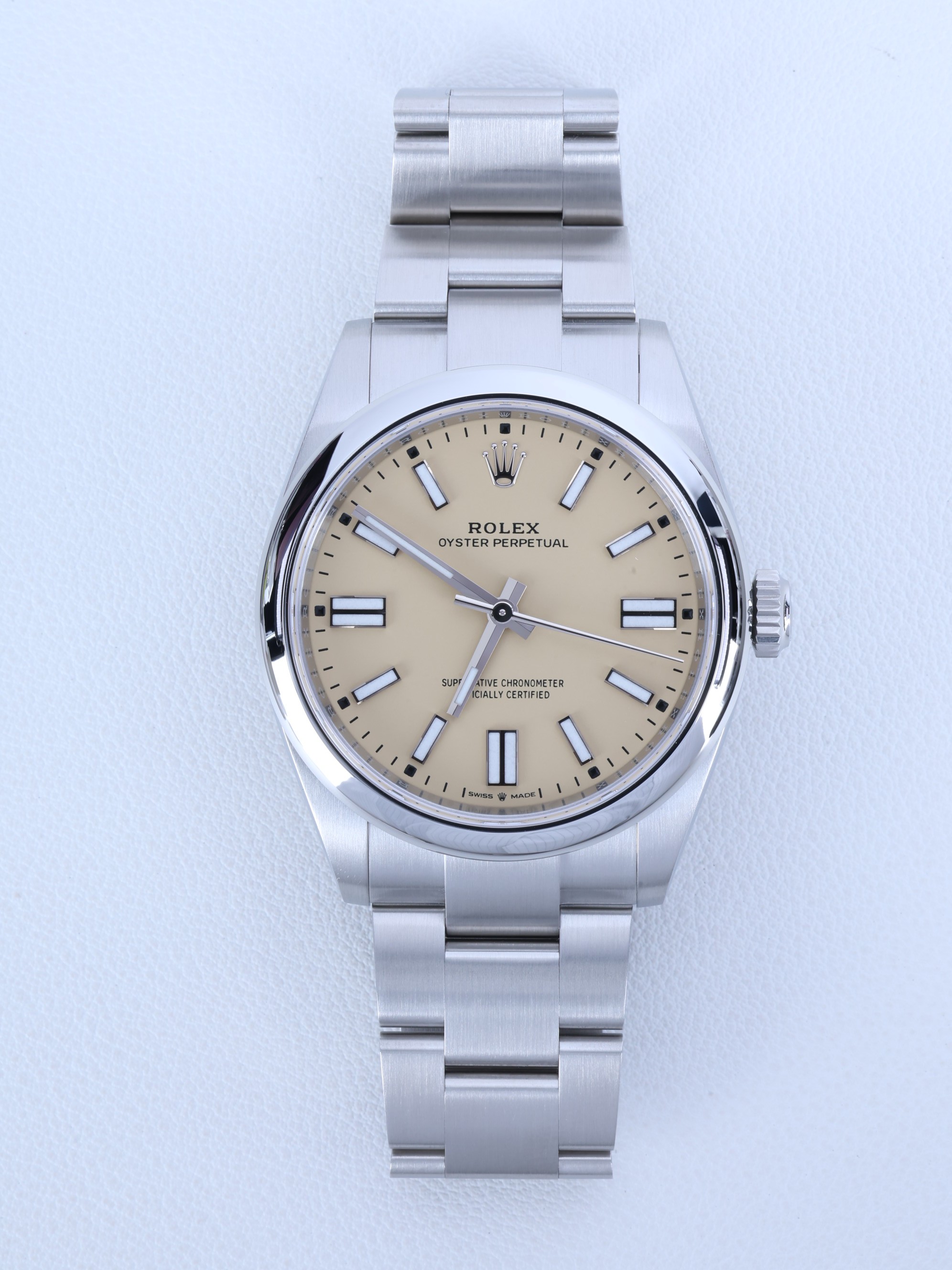 M134300-0007,134300,Rolex Oyster Perpetual OP 41 beige yellow 41mm 134300,롤렉스 로렉스 오이스터 퍼페추얼 퍼페츄얼 오피 op 41 베이지 옐로우 41mm 134300,베이지,옐로우,노랑,노란,스테인리스 스틸,오이스터 브레이슬릿,41mm,돔드,셀프 와인딩,Cal.3230,Stainless steel,Folding clasp,Baton indices,Oyster Perpetual 41,오이스터 퍼페츄얼 41,Oyster Perpetual,Rolex,롤렉스,남성,예물,웨딩,.베이지,바,폴딩 클라스프,약 21mm,원형,클래식,남성용