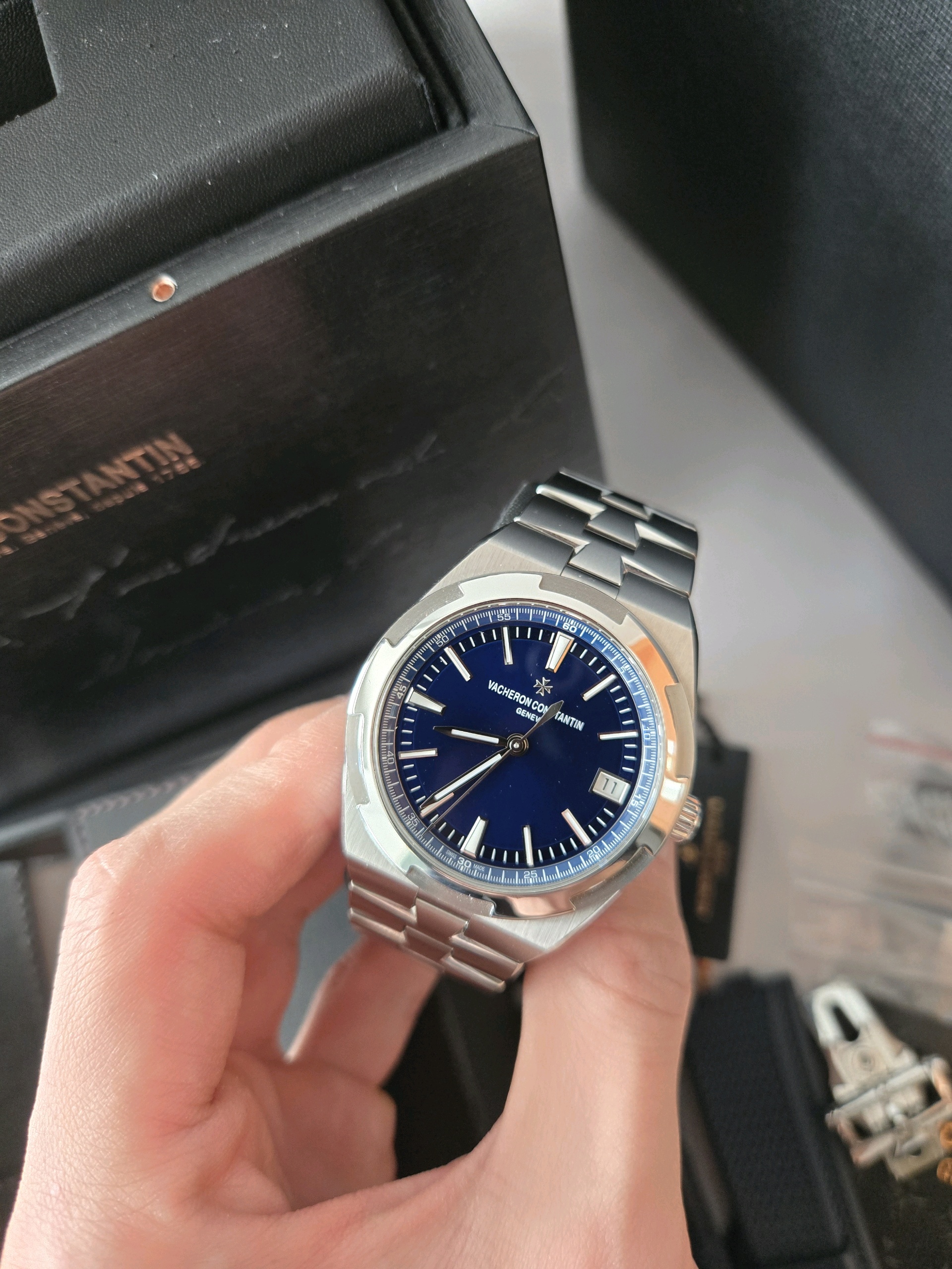 Overseas,4500V/110A-B128,4500V,4500,VacheronConstantin,VC,블루,스테인레스스틸,사파이어크리스탈,41mm,11mm,약166g,150m,셀프와인딩,Cal.5100,28,800진동,약60시간,바쉐론,바세론,바셰론,바섀론,콘스탄틴,바쉐론콘스탄틴,오버시즈,이지핏,시스루백,제네바,홀마크,제네바홀마크,일체형,integrated,스테인레스 스틸,사파이어 크리스탈,Vacheron Constantin,바쉐론 콘스탄틴,스테인리스 스틸,Switzerland,Stainless steel,Butterfly clasp,Date / baton & trapezoidal indices,Hour + minute + seconds