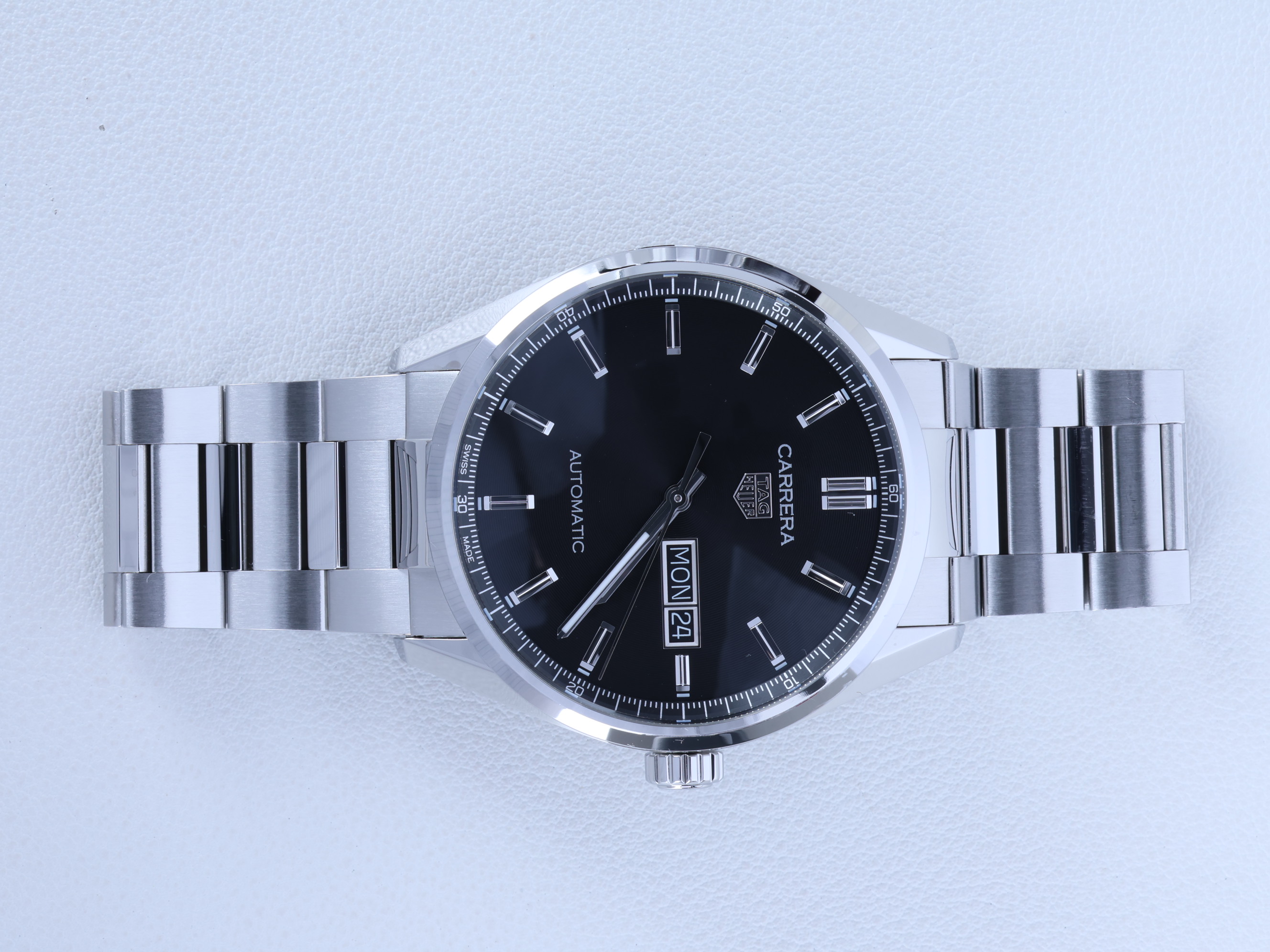 TAG Heuer Carrera Calibre 5 Day Date 41,태그호이어 까레라 칼리버 5 데이데이트 41,태그호이어 까레라 데이데이트 스틸,태그호이어 까레라 데이데이트 41 오토매틱,태그호이어 까레라 스틸 데이데이트 브레이슬릿,태그호이어 까레라 스틸 데이데이트 블랙 검판,TAG Heuer Carrera Day Date Black,WBN2010.BA0640,블랙,사파이어 크리스탈,41mm,셀프 와인딩,Stainless steel,Push-button folding clasp,Day-date / applied baton indices,Hour + minute + seconds,Carrera Calibre 5 Day Date 41,까레라 칼리버 5 데이데이트 41,Carrera,TAG Heuer,태그 호이어