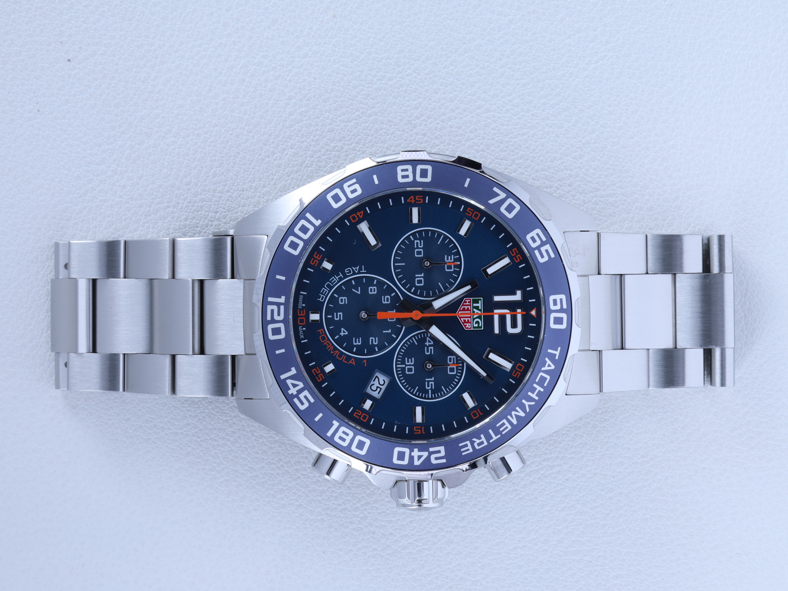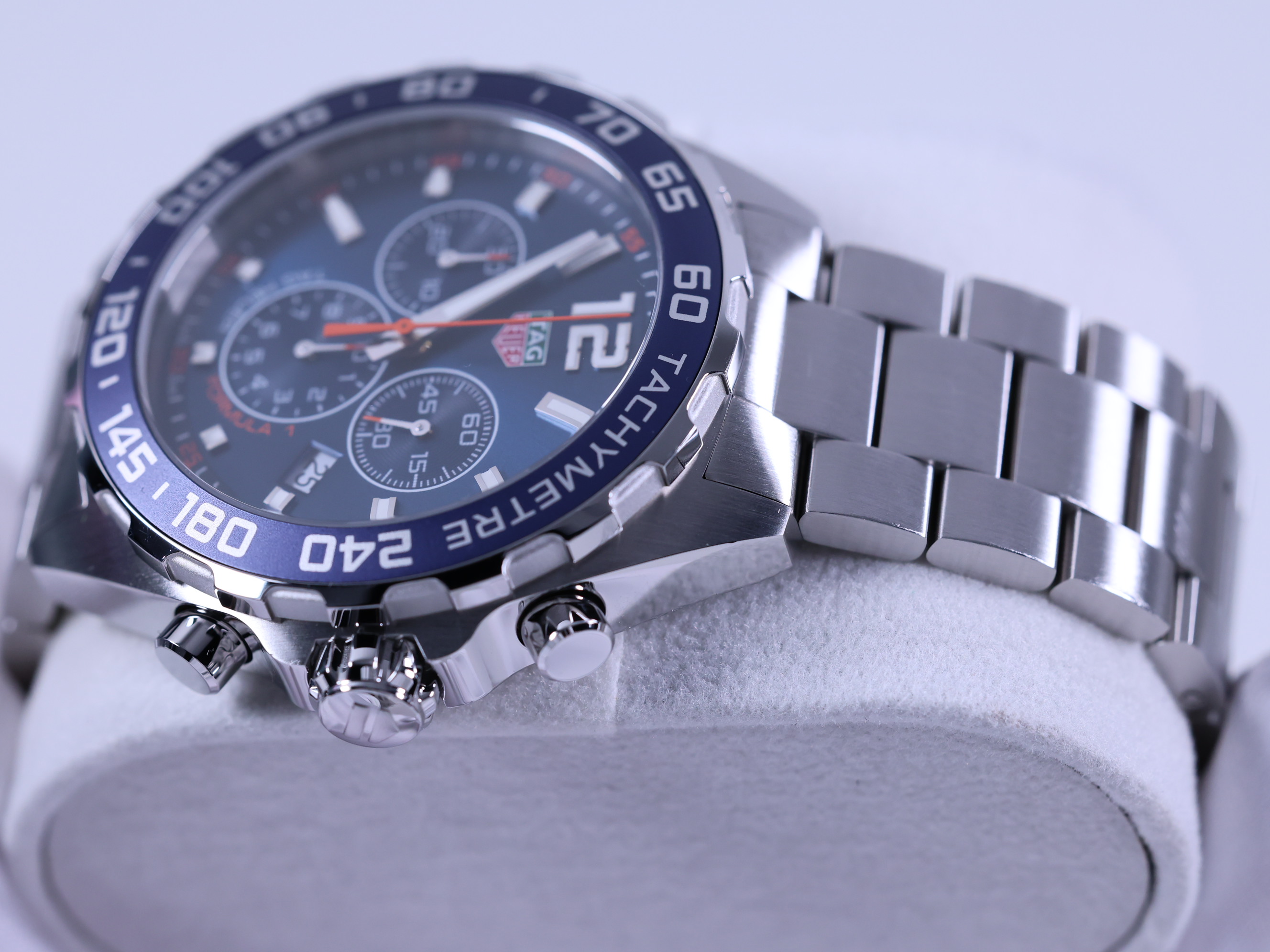 태그호이어 쿼츠 포뮬러 1 크로노그래프 칼리버 16 스틸 블랙 스틸 43 쿼츠,CAZ1014.BA0842,블루,스테인리스 스틸,브레이슬릿,43mm,타키미터,쿼츠,Switzerland,Stainless steel,Folding clasp,Date,chronograph subdials,small seconds / applied baton indices,Formula 1 Chronograph,포뮬러 1 크로노그래프,Formula 1,TAG Heuer,태그 호이어,Date, chronograph subdials, small seconds / applied baton indices