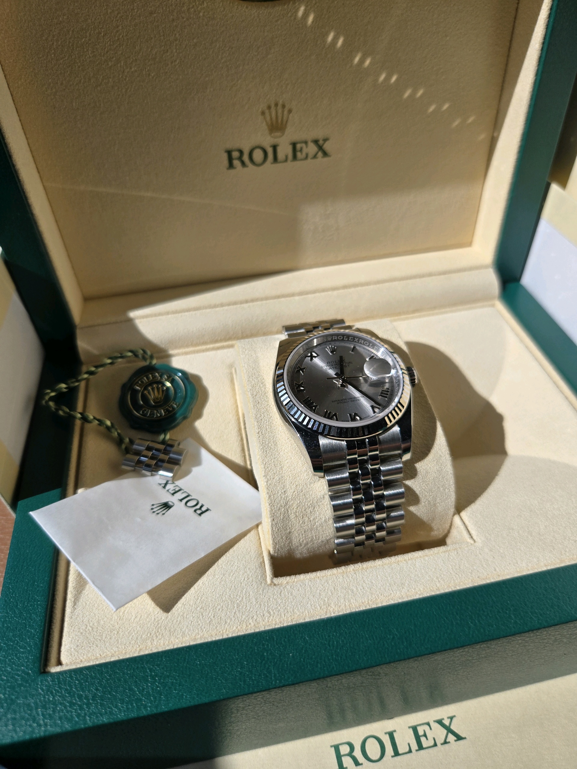 롤렉스 로렉스 데이저스트 데이트저스트 36 116234 스틸 그레이 로듐 로만 로마 숫자 스틸 쥬빌리,datejust36,116234,m116234-0081,로듐,로만,스테인레스 스틸 + 화이트 골드,스테인레스 스틸,쥬빌리 브레이슬릿,사파이어 크리스탈,36mm,데이트저스트,데이저스트,데이트,화이트골드,화골,롤레조,콤비,예물시계 추천,쥬빌리,어버이날 선물,40대 추천,단종,Rolex,스테인리스 스틸,화이트 골드,Switzerland,Stainless steel,Hidden folding clasp,Date / roman numeral indices,Hour + minute + seconds,Datejust 36,데이저스트 36,Datejust,롤렉스,웨딩
