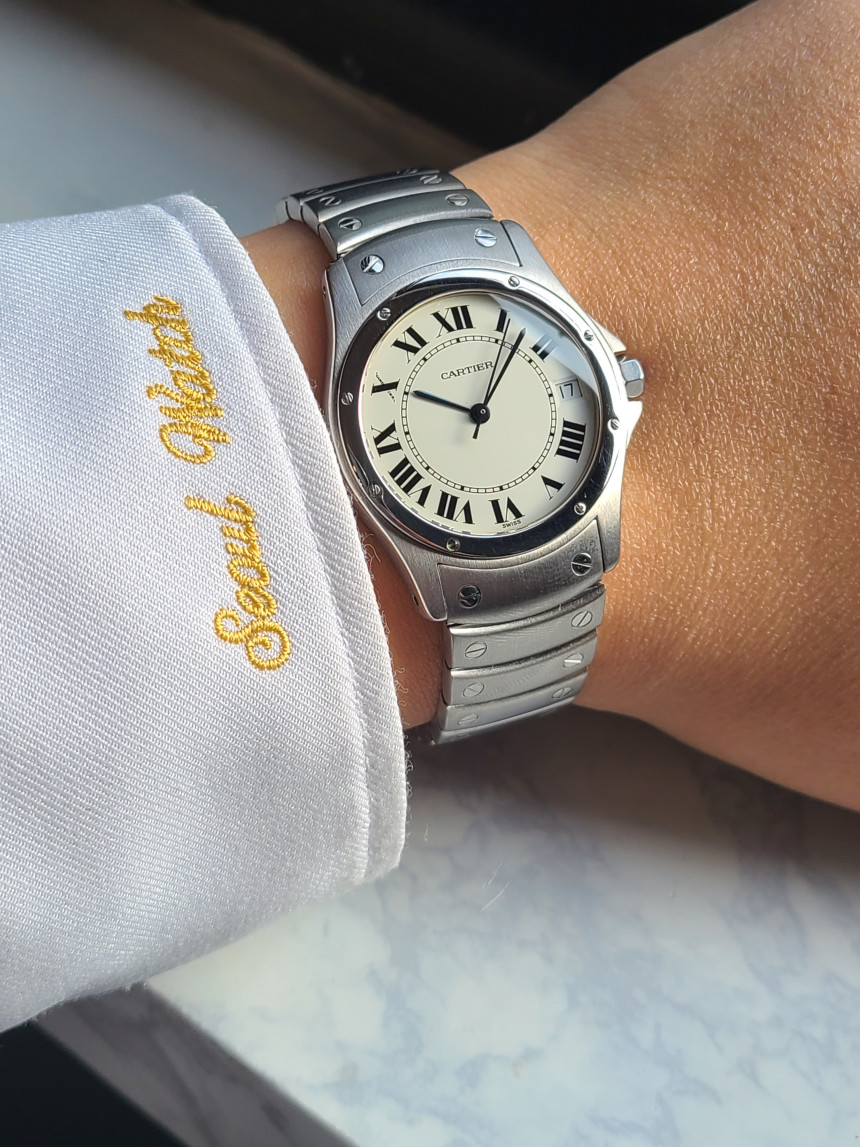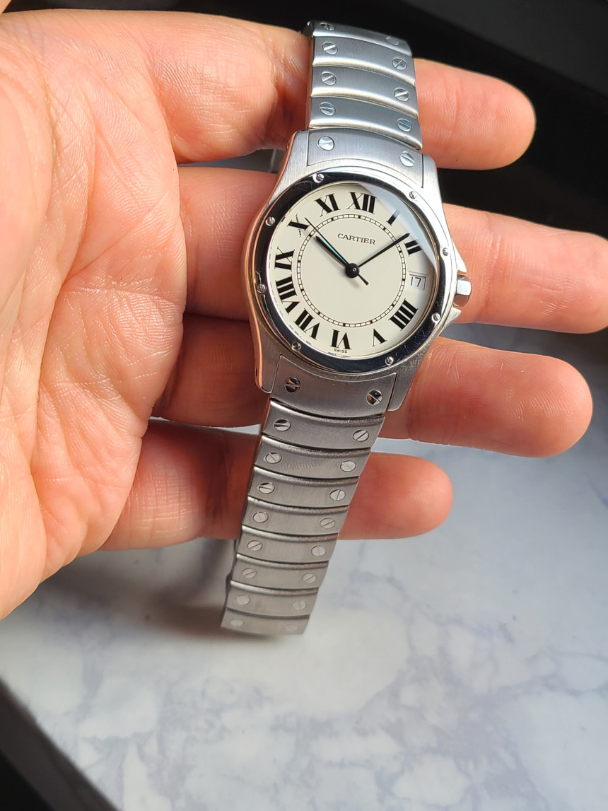 대부분의 산토스 모델은 정사각형으로 이루어졌으나, 판매하는 시계는 사각이 아닌 원형 모양으로 매우 소량만 발매하고 바로 단종되었던 산토스의 원형 버전의 산토스 롱드 시계입니다.