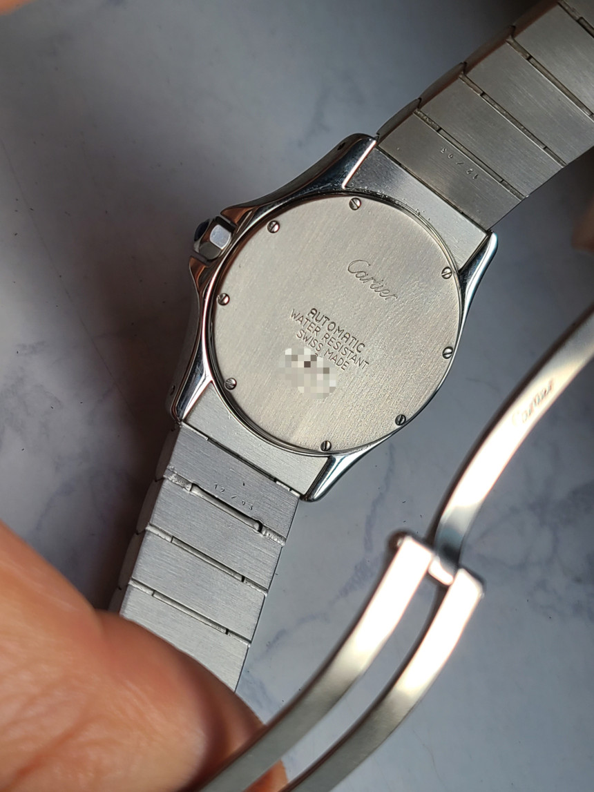 산토스에서 흔히 보이는 배터리 쿼츠가 아닌 오토메틱 자동 무브먼트 입니다. 그래서, 시계 케이스 뒷면에는 AUTOMATIC 이라는 자랑스러운 문구가 들어갑니다. (★사진참조)