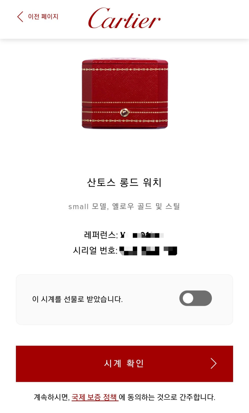 다만, 최근에 까르띠에 공식 홈페이지에 제 아이디로 정품인증 등록이 완료되었으며, 양도받으실 때 까르띠에 홈페이지 회원가입하시면 시계 양도처리 해드립니다. (★사진참조)