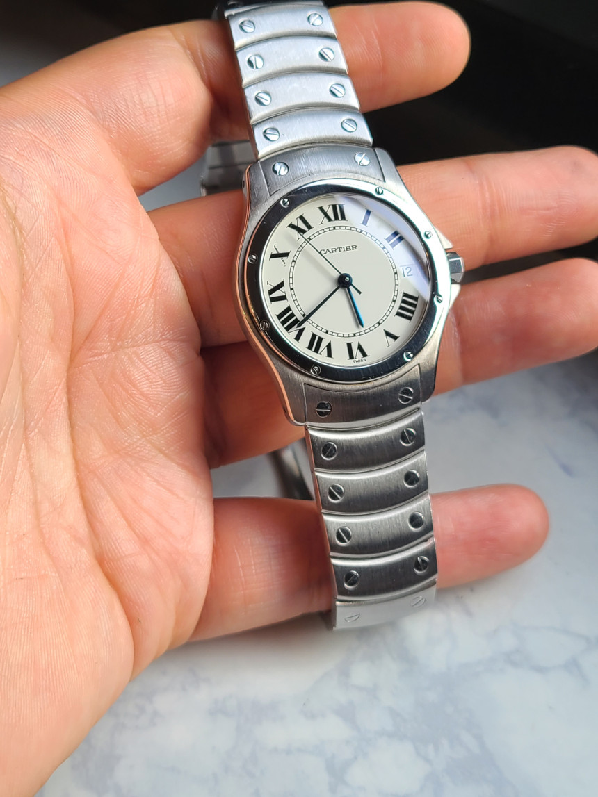 대부분의 산토스 모델은 정사각형으로 이루어졌으나, 판매하는 시계는 사각이 아닌 원형 모양으로 매우 소량만 발매하고 바로 단종되었던 산토스의 원형 버전의 산토스 롱드 시계입니다.