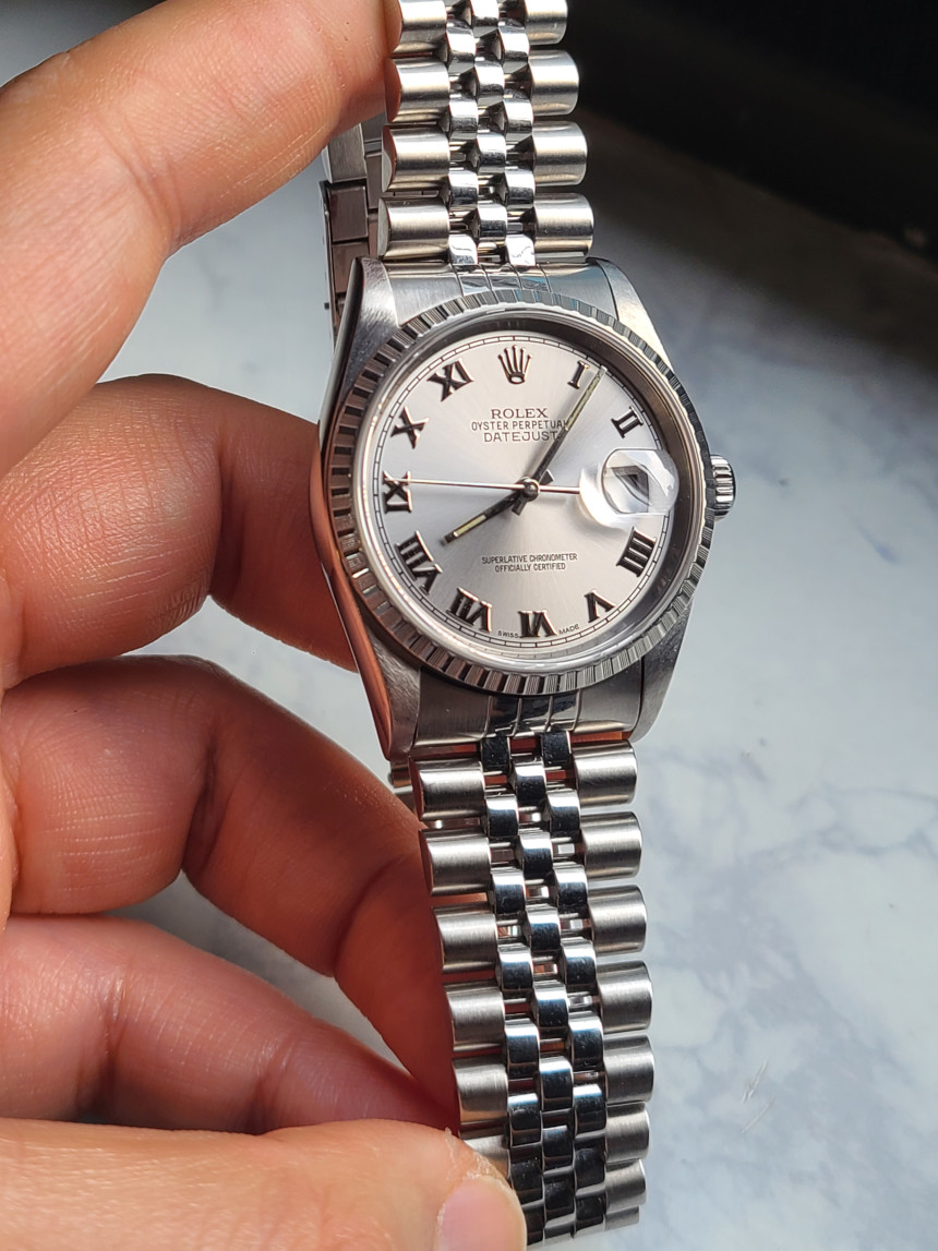 롤렉스 로렉스 데이저스트 데이트저스트 36 16220 로듐 로만 엔진턴 엔진 턴 베젤 쥬빌리,16220-RHROMJUB1,16220,로듐,스테인리스 스틸,쥬빌리 브레이슬릿,36mm,엔진 턴 베젤,셀프 와인딩,Cal. 3135,Switzerland,Stainless steel,Folding clasp,Date / roman numeral indiecs,Datejust 36,데이트저스트 36,Datejust,Rolex,롤렉스,로만