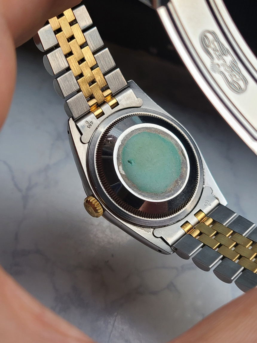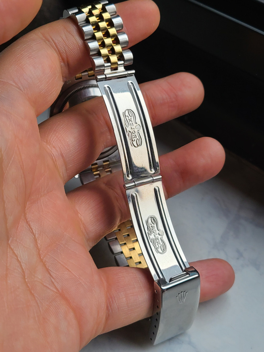시계에 있는 모든 노란색 부분은 도금이 아닌 18K 옐로우골드 실제 금으로 만들어진 콤비 모델 입니다. 당연히 골드가 들어가지 않은 일반 스틸 모델보다 더욱 높은 리테일가에 판매되었던 시계입니다.