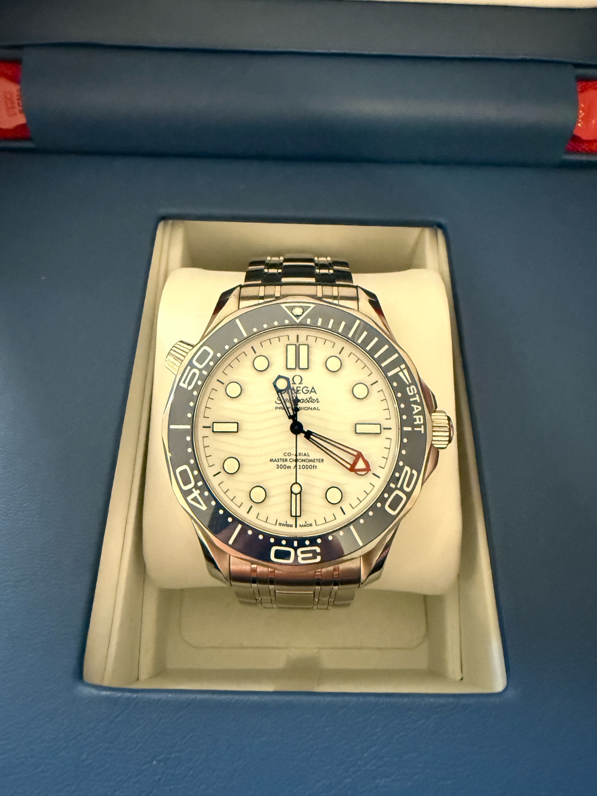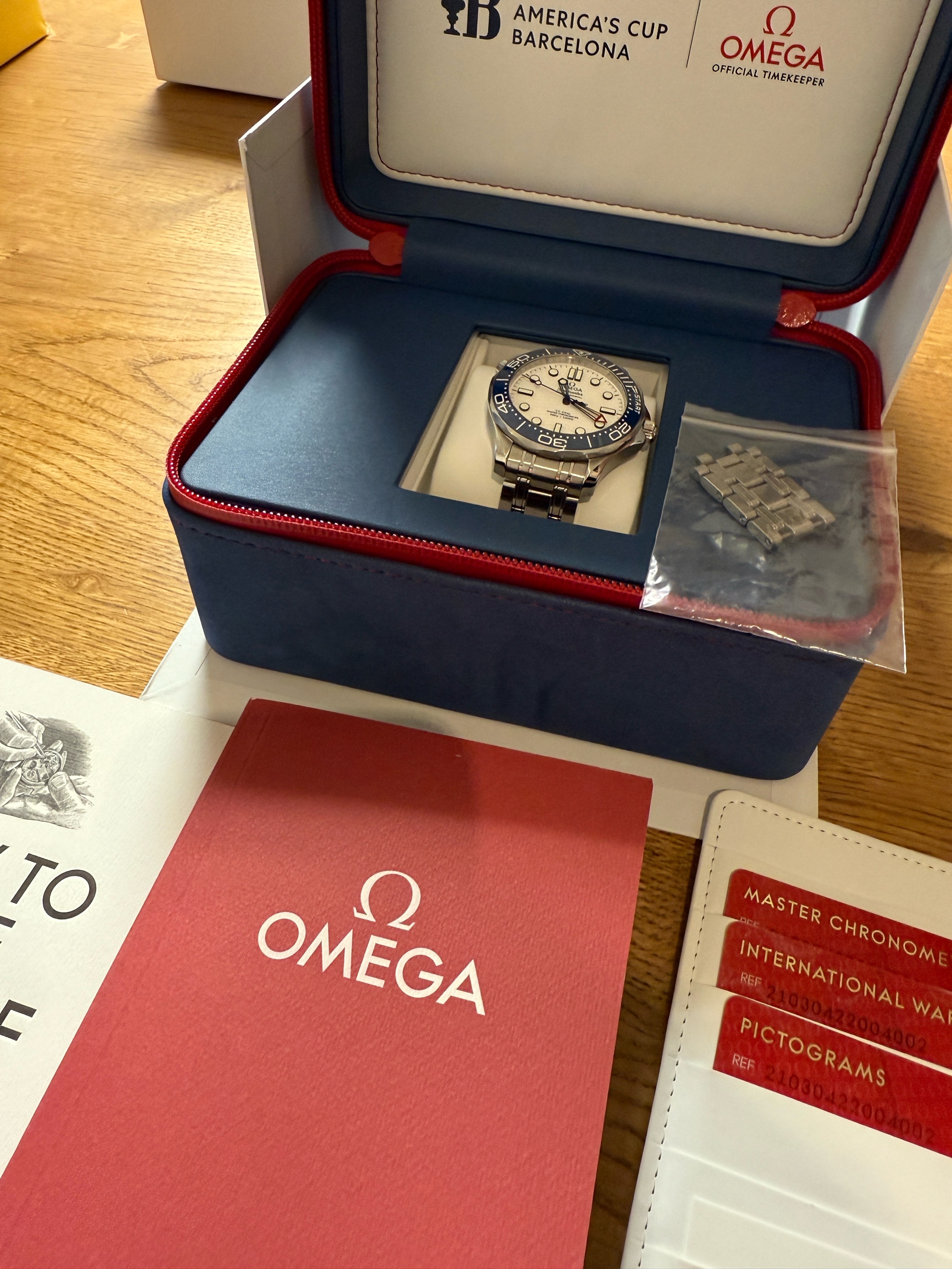 210.30.42.20.04.002,오메가 씨마스터 프로 프로페셔널 SMP 다이버 SMP 300M 아메리카 컵 에디션 스틸 브레이슬릿 화이트 블루,Omega Seamaster Professional SMP Diver 300M SMP America's Cup Edition steel bracelet white blue,화이트,스테인리스 스틸,300m,세라믹,역회전 방지 베젤,셀프 와인딩,Stainless steel,Folding clasp,Applied hour markers,Seamaster Diver 300M America's Cup Edition,씨마스터 다이버 300M 아메리카 컵 에디션,Seamaster,Omega,오메가,세라믹 인서트,.화이트,도트,패턴,폴딩 클라스프,투명 케이스백,20 mm,원형,다이버,남성용,2024,도트, 바,물결 패턴,투명 케이스백,브레이슬릿,스테인리스 스틸, 세라믹 인서트