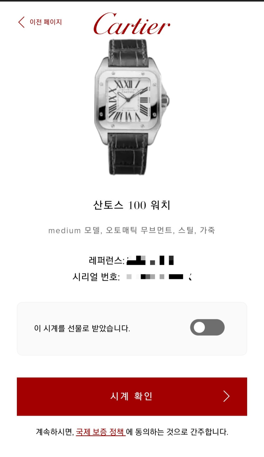 다만, 최근에 까르띠에 공식 홈페이지에 제 아이디로 정품인증 등록이 완료되었으며, 양도받으실 때 까르띠에 홈페이지 회원가입하시면 시계 양도 처리해 드립니다. (★사진참조)