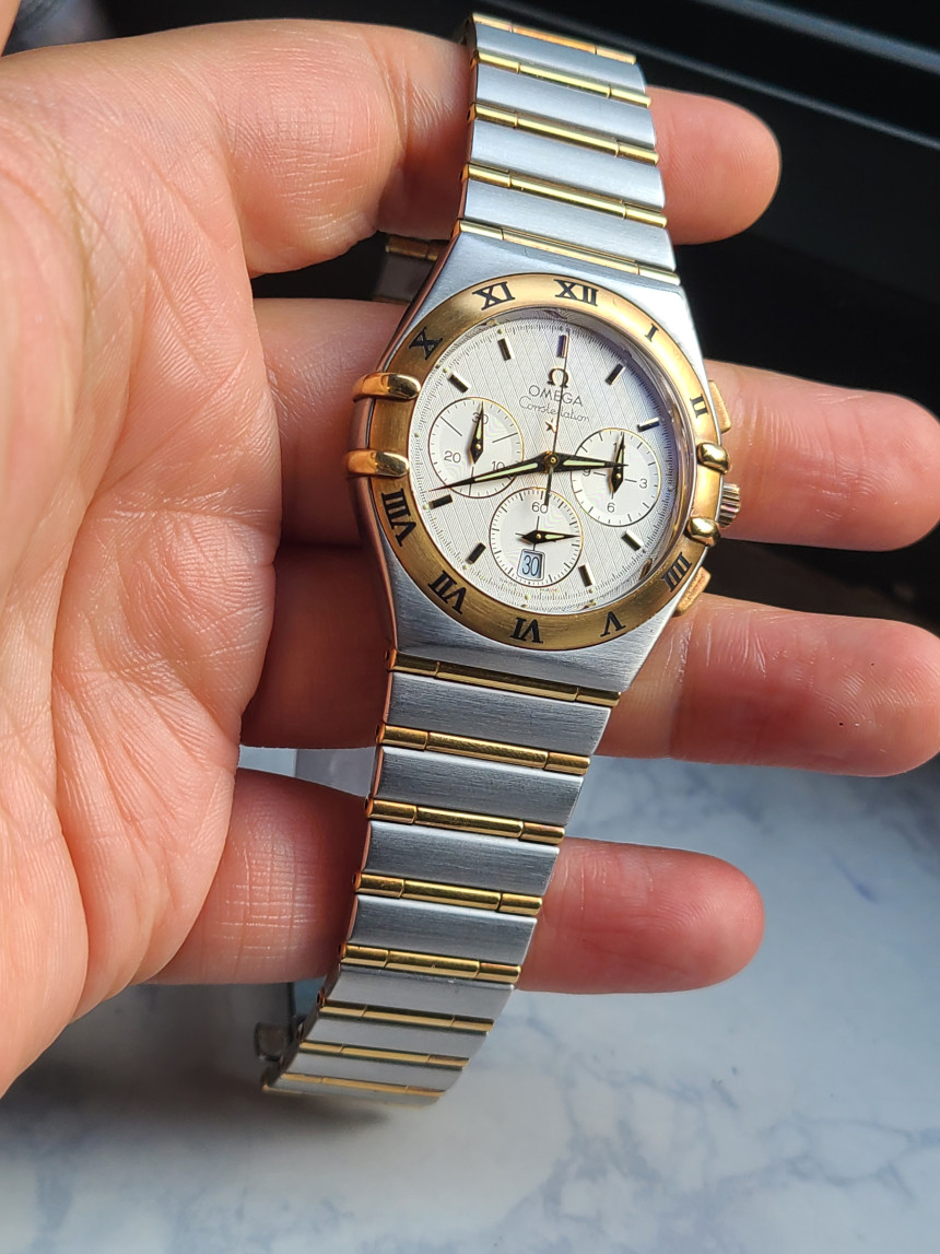 1242.30.00오메가 컨스텔레이션 쿼츠 크로노 39 39mm 쿼츠 크로노 투톤 1242.30.00 1242.30,다이얼,스테인리스 스틸,옐로우 골드,39mm,쿼츠,Omega 1270,Switzerland,Yellow gold,Folding clasp,Date,chronograph subdials,small seconds / applied baton indices,Constellation,컨스텔레이션,Omega,오메가,실버,스테인리스 스틸, 옐로우 골드,Date, chronograph subdials, small seconds / applied baton indices