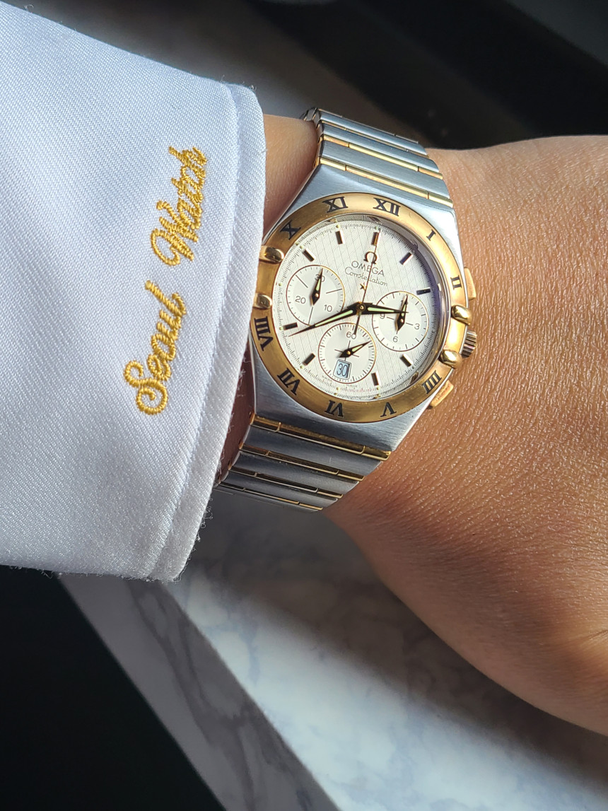 또한 케이스백에는 컨스틸레이션을 상징하는 천문대 메달리온(Observatory Medallion)이 정교하게 각인되어 있어 오메가 크로노미터 역사와 브랜드 헤리티지를 시각적으로 보여주는 중요한 디테일을 완성합니다.