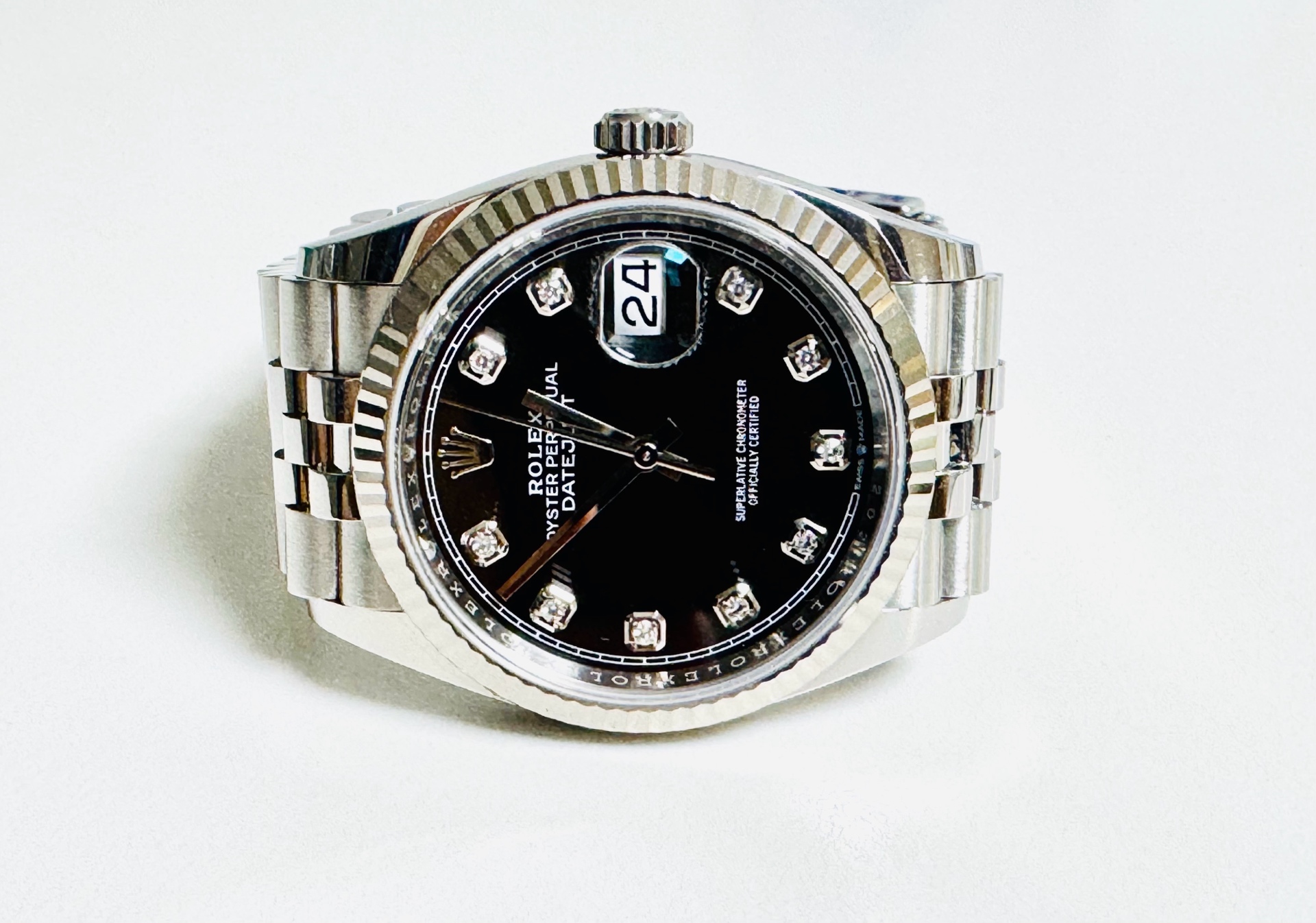 datejust36,126234,m126234-0027,브라이트 블랙,다이아몬드,스테인레스 스틸 + 화이트 골드,스테인레스 스틸,쥬빌리 브레이슬릿,사파이어 크리스탈,36mm,데이트저스트,데이저스트,데이트,화이트골드,화골,롤레조,콤비,검판,데잇저스트,데잇,예물시계 추천,다이아,다이아몬드 세팅,쥬빌리,어버이날 선물,40대 추천,단종,Rolex,스테인리스 스틸,화이트 골드,Switzerland,Stainless steel,Folding clasp,Date / diamond-set indices,Hour + minute + seconds,Datejust 36,데이저스트 36,Datejust,롤렉스,남성,예물,웨딩,.블랙,보석 세팅,폴딩 클라스프,약 20mm,원형,클래식,남녀공용