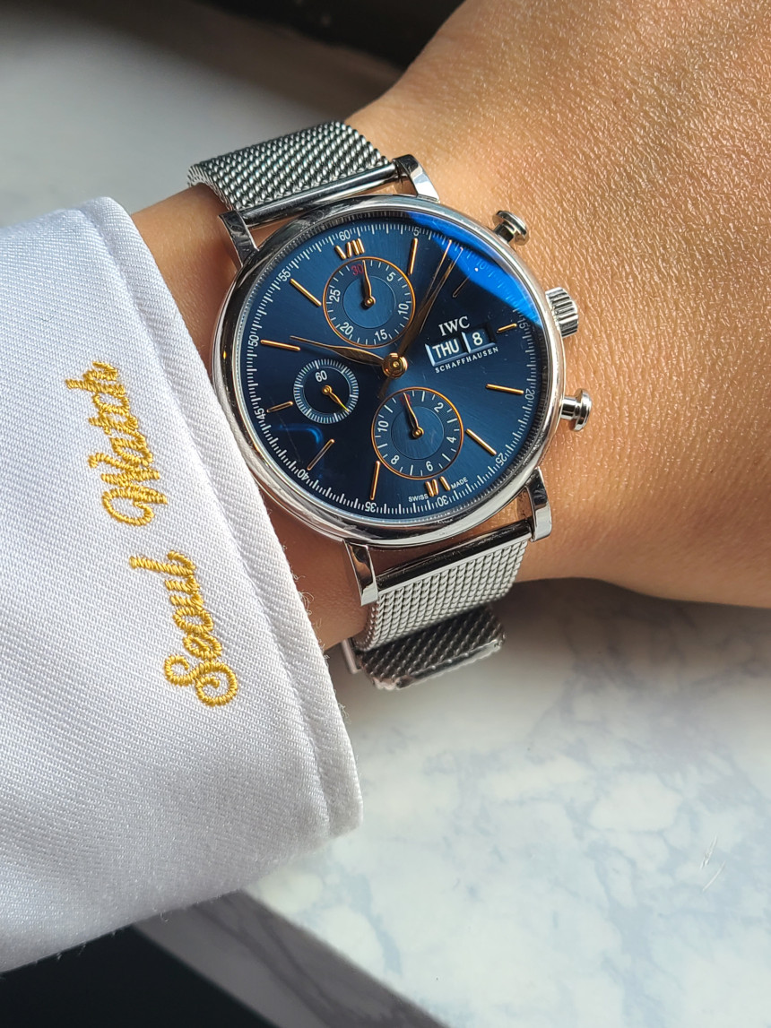 IWC 포르토피노 블루 데이데이트 신형 42 모델입니다. 오래전에 발매한 구형 모델이 아닌 지금 백화점에 나오고 있는 최신형 모델입니다.