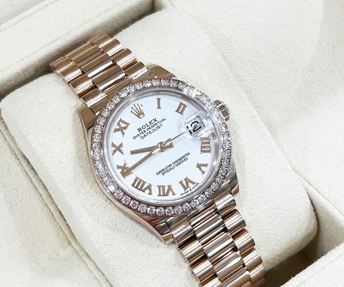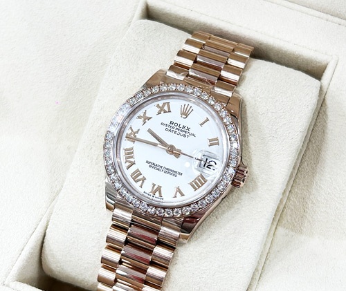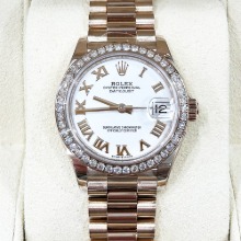 롤렉스 데이트저스트 18K 로즈골드 금통 베젤 다이아 278285 화이트로만 31mm 여성용 모델 입니다.