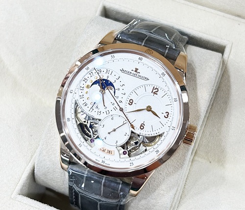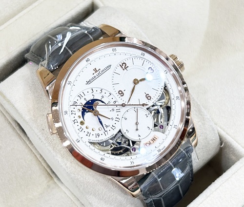 예거 르쿨트르 듀오미터 퀀텀 루나 18K 로즈골드 가죽 스트랩 42mm 남성용 모델 입니다.
