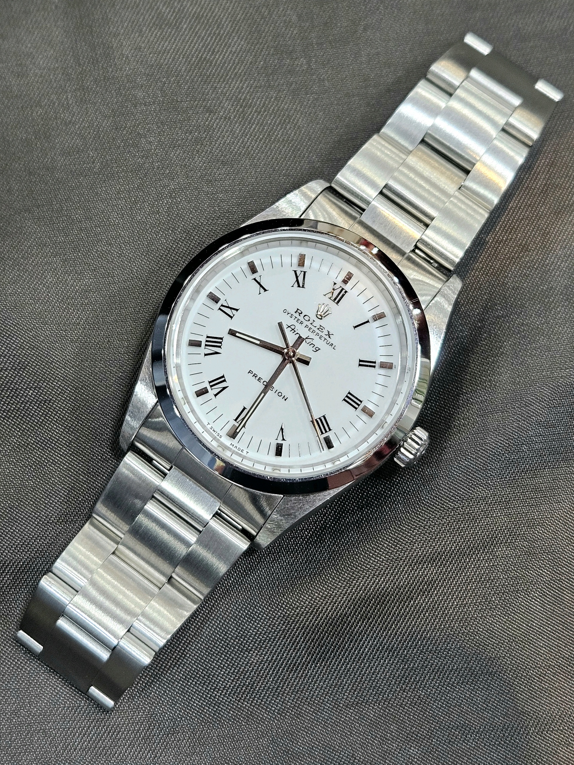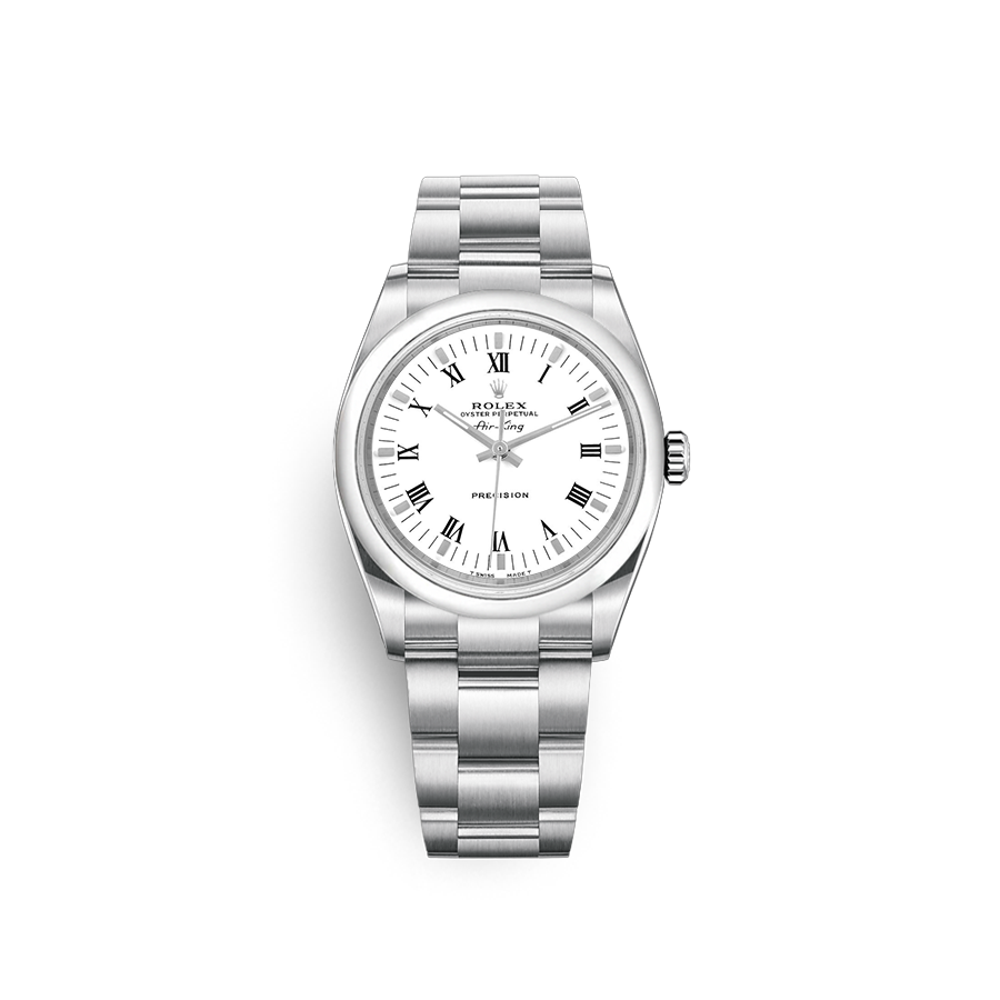 14000-WHROMLUMOYS,Air-King,에어-킹,Rolex,롤렉스 로렉스 에어킹 34 14000 로만 화이트 흰판 로만 욍스터,화이트,로만,스테인리스 스틸,34mm,돔드,Stainless steel,Folding clasp,Roman numeral indices,에어킹,롤렉스
