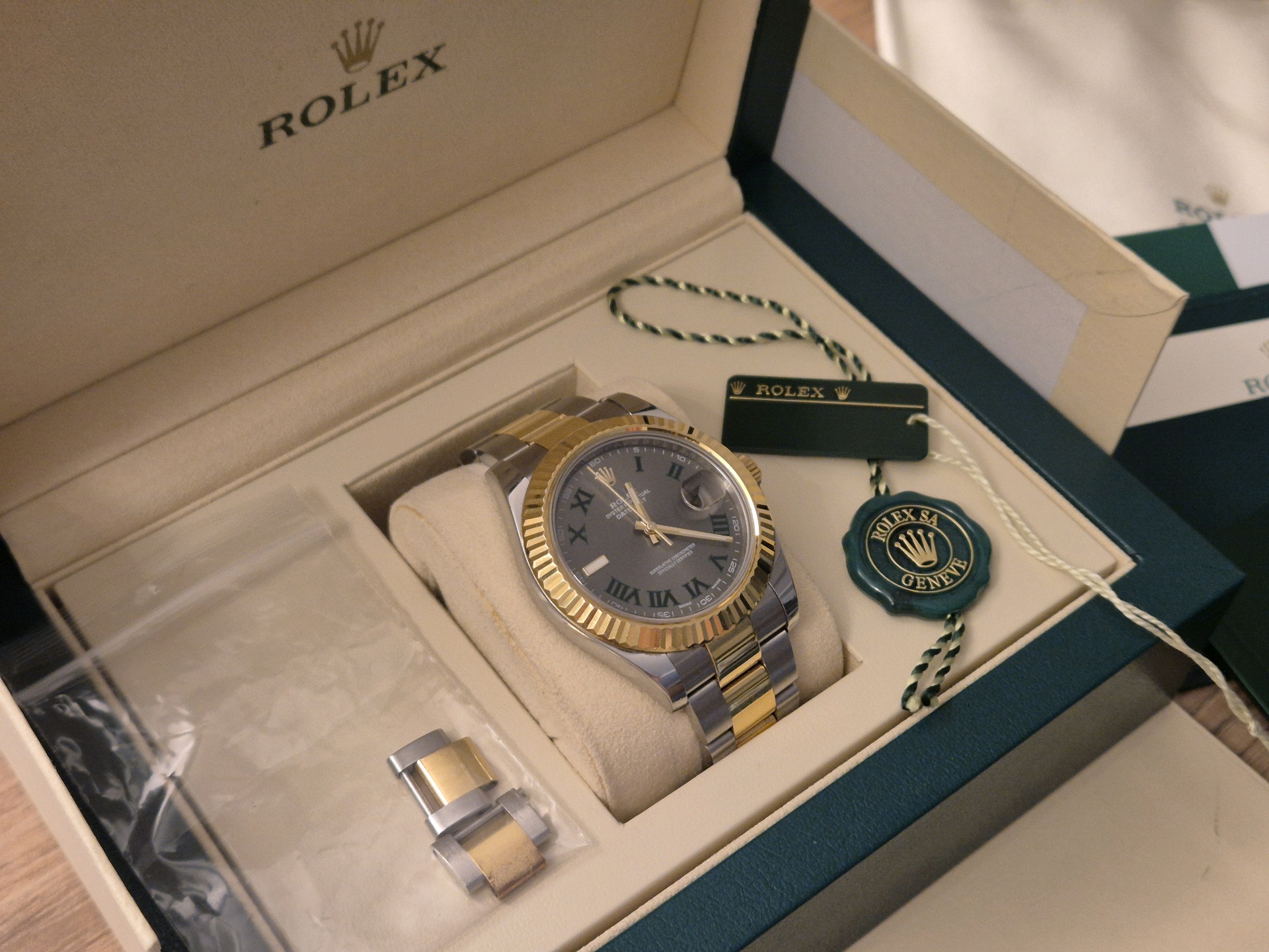 압구정 현백에서 구매한 롤렉스 데이저스트 41mm 윔블덤 콤비 시계 판매합니다.