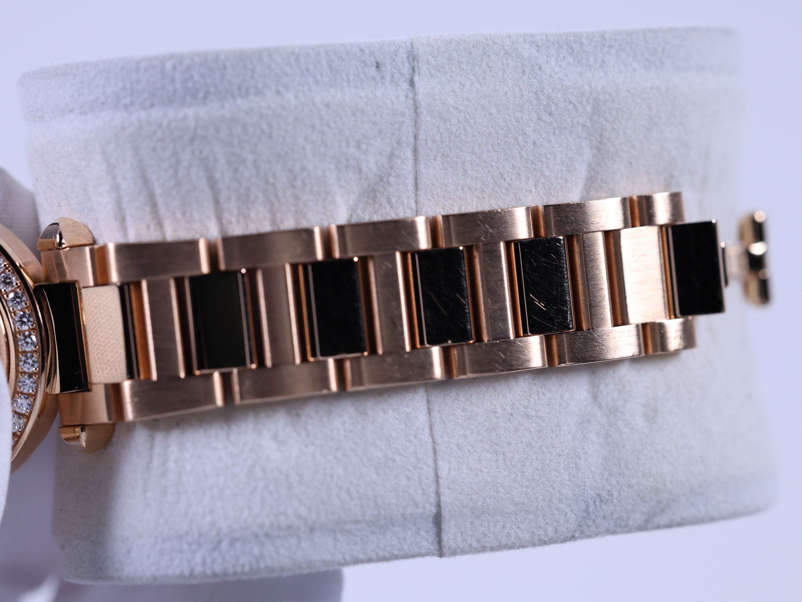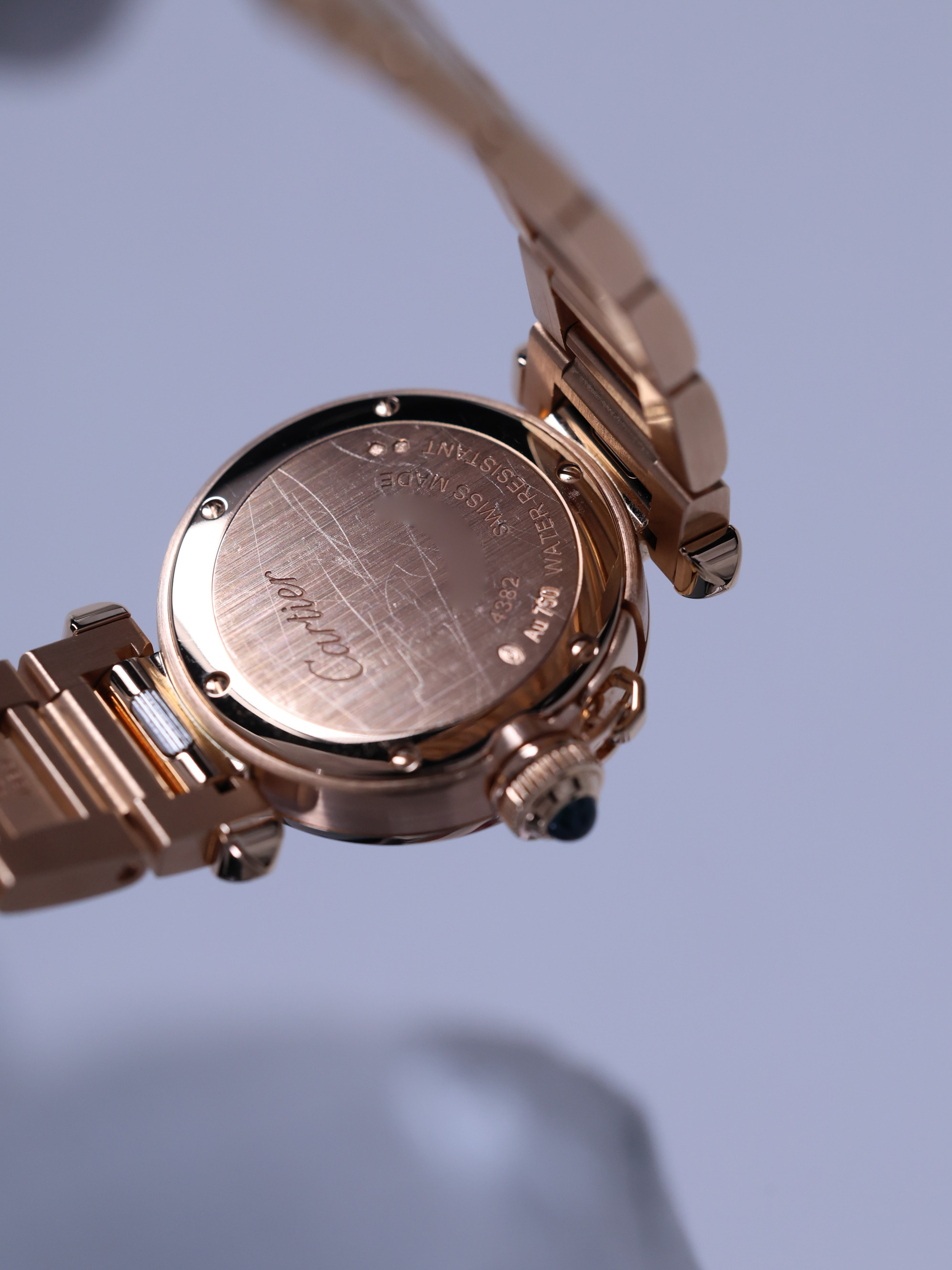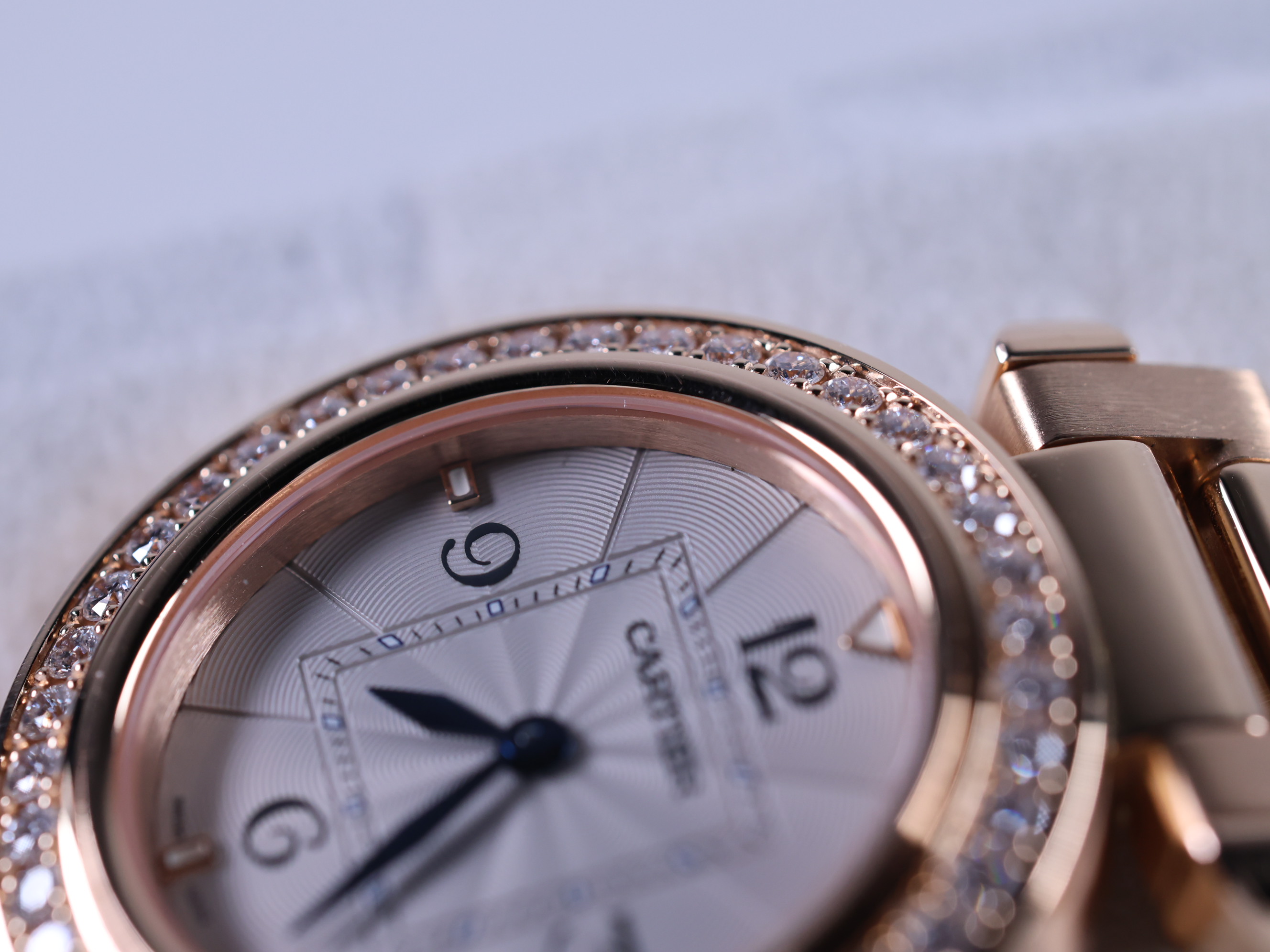 WJPA0018,오팔린,아라빅,핑크 골드,30mm,다이아몬드 세팅,쿼츠,Switzerland,Pink gold + sapphire,Folding clasp,3-6-9-12 arabic numerals & hour markers,Pasha de Cartier,파샤 드 까르띠에 워치,Cartier,까르띠에,.화이트,아라빅,폴딩 클라스프,원형,클래식,여성용