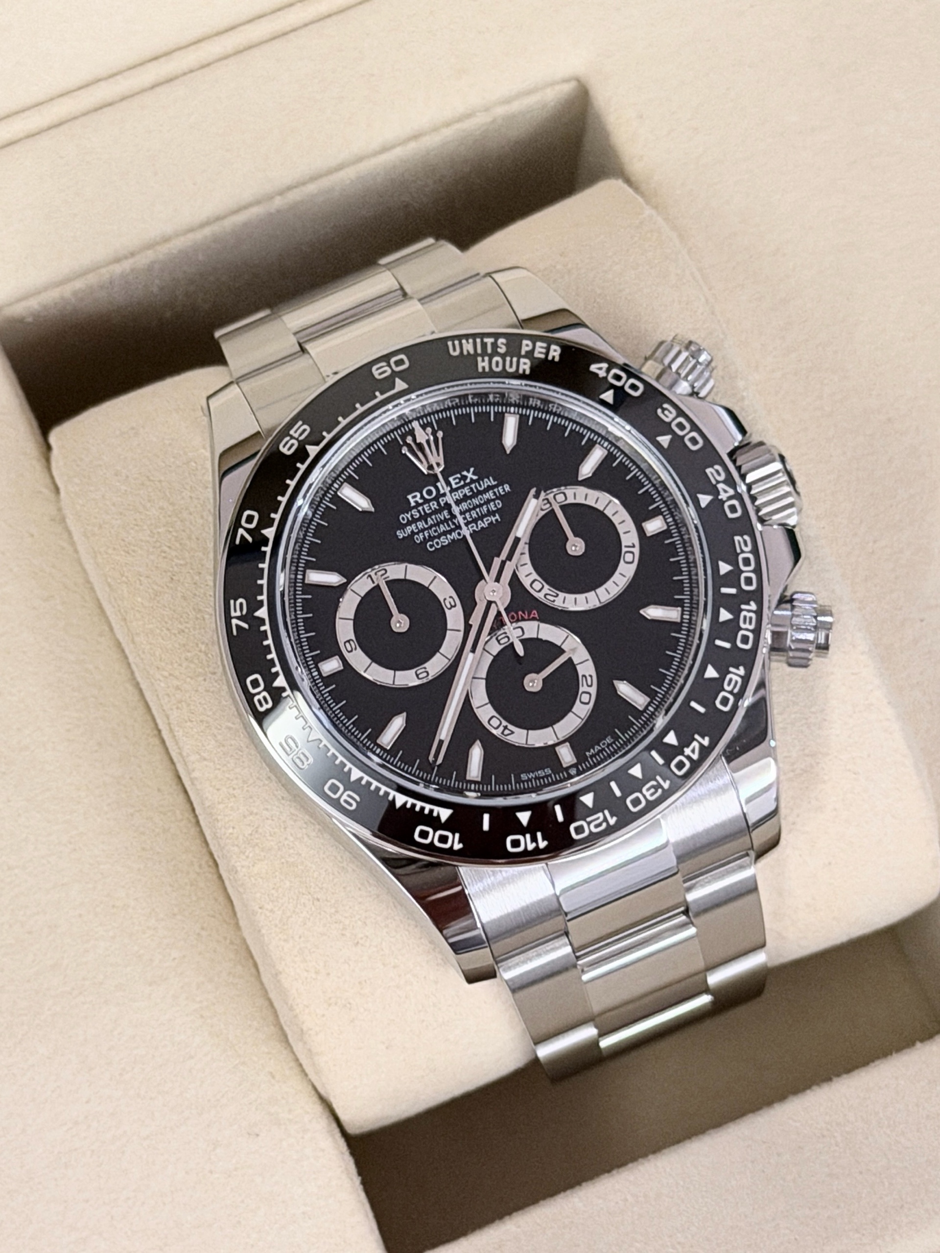 CosmographDaytona,M126500LN-0002,블랙,스테인레스스틸,오이스터브레이슬릿,사파이어크리스탈,40mm,Rolex,롤렉스 데이토나 검판,롤렉스 데이토나 블랙,롤렉스 데이토나 스틸,롤렉스 데이토나 세라토나,세라토나 검판,세라토나 블랙,블랙 세라토나,롤렉스 데이토나 세라믹 베젤,롤렉스 데이토나 세라믹 인서트,스테인레스 스틸,오이스터 브레이슬릿,사파이어 크리스탈,Daytona,데이토나,롤렉스,스테인리스 스틸,타키미터,Switzerland,Stainless steel,Folding clasp,Chronograph subdials,small seconds / applied hour markers,Hour + minute + central chronograph + counter (2) + small seconds,남성,예물,웨딩,Cosmograph Daytona,.블랙,바,폴딩 클라스프,크로노그래프,약 20mm,원형,레이싱,남성용,Chronograph subdials, small seconds / applied hour markers