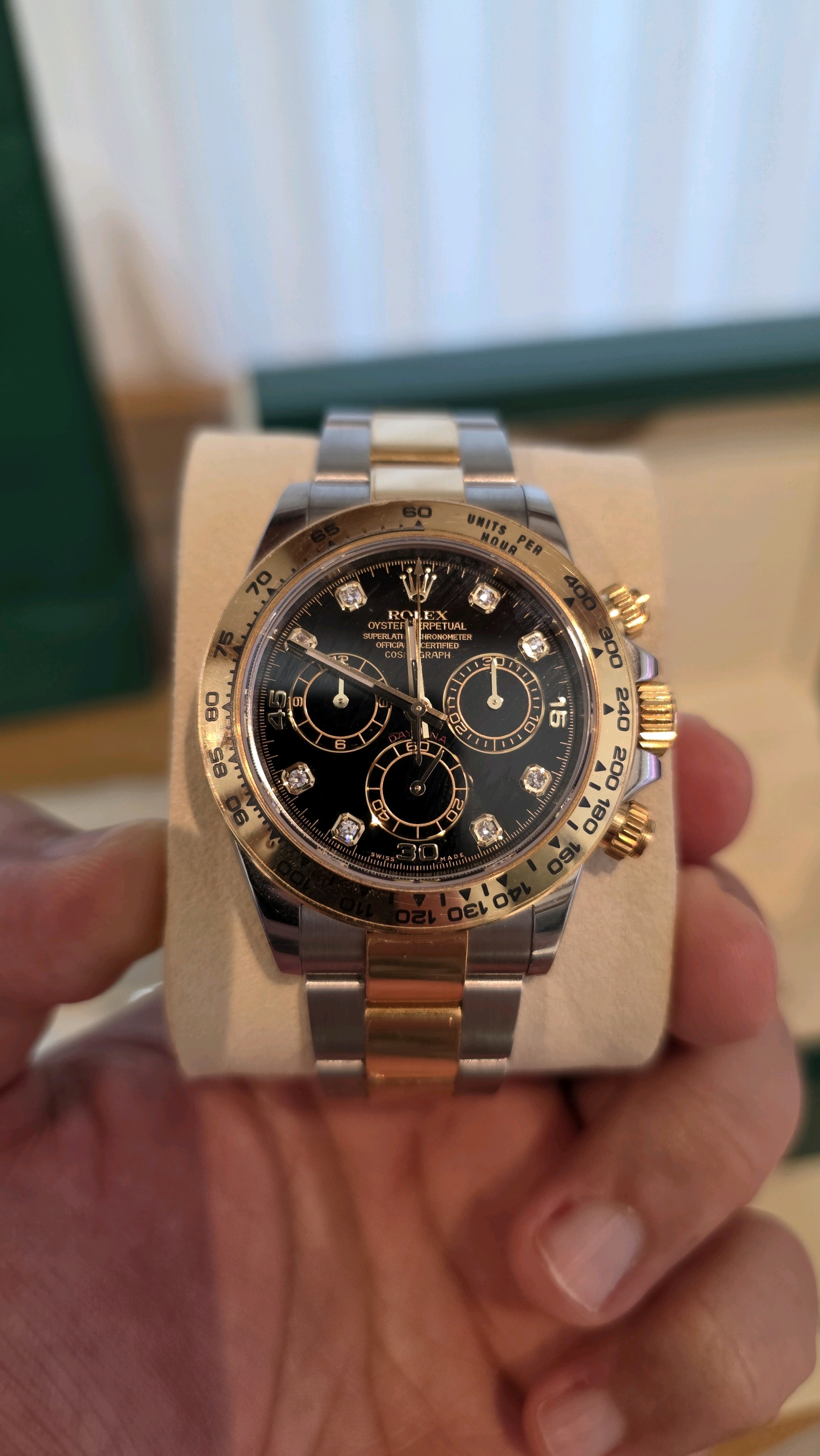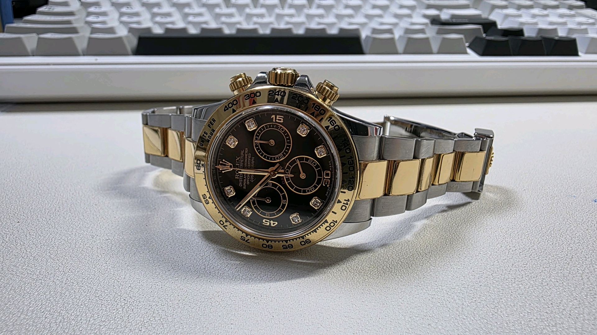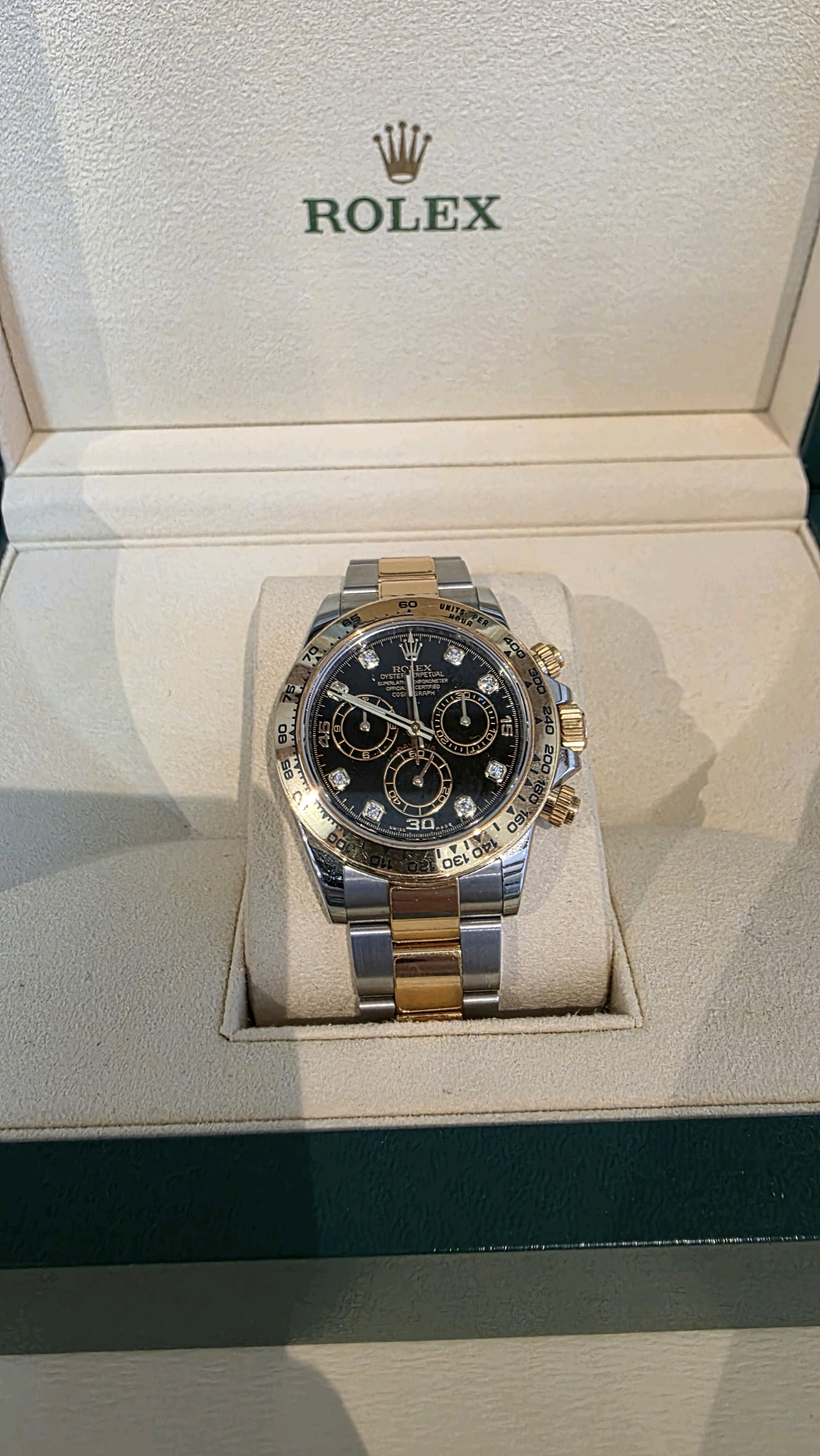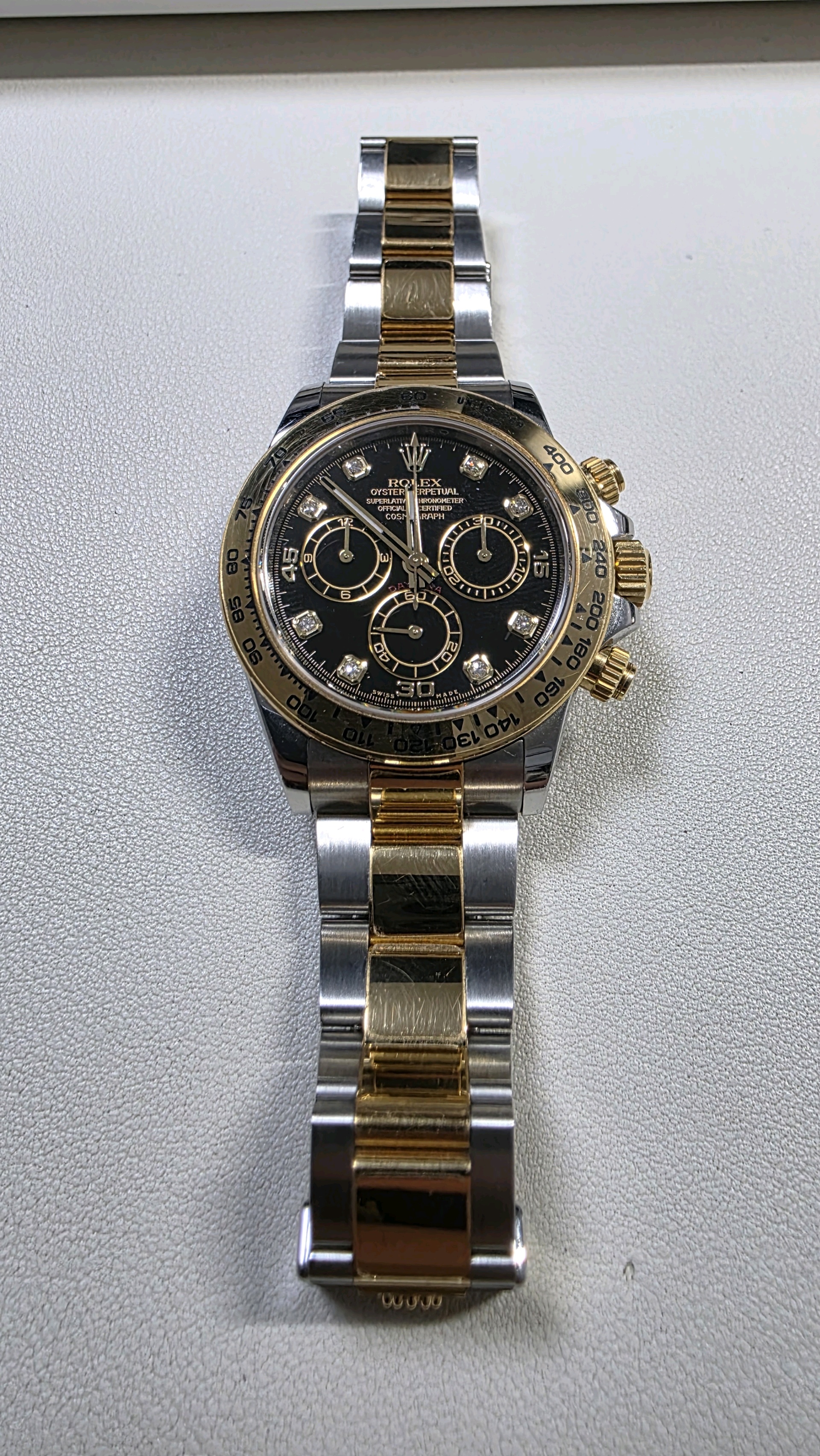daytona,116503,m116503-0011,블랙,다이아몬드,스테인레스 스틸 + 옐로우 골드,오이스터 브레이슬릿,사파이어 크리스탈,40mm,데이토나,옐로우골드,옐골,롤레조,콤비,검판,다이아,다이아몬드 세팅,40대 추천,단종,Rolex,스테인리스 스틸,옐로우 골드,스테인리스 스틸 + 옐로우 골드,Switzerland,Yellow gold,Folding clasp,Chronograph subdials / diamond-set indices,Hour + minute + central chronograph + counter (2) + small seconds,Daytona,롤렉스,스테인리스 스틸, 옐로우 골드,Cosmograph Daytona