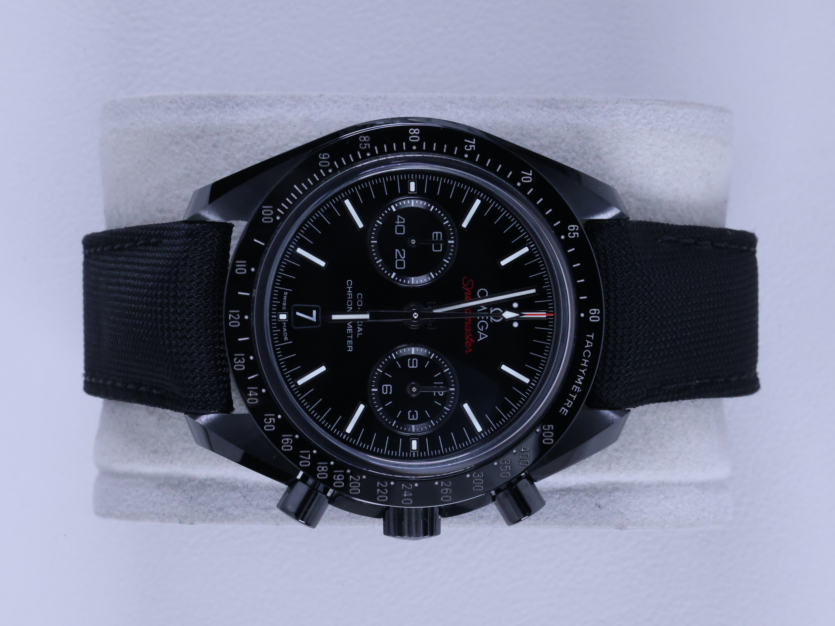 OmegaSpeedmaster Dark Side of the Moon 311.92.44.51.01.007,오메가 스피드마스터 다크사이드 오브 더 문,오메가 스피드마스터 다크 사이드 오브 더 문,오메가 스마 다크,오메가 스피드마스터 세라믹,오메가 세라믹,오메가 세라믹 스피드마스터,오메가 블랙 세라믹 스피드마스터,오메가 스피드마스터 블랙 세라믹,블랙,세라믹,타키미터,셀프와인딩,Speedmaster Dark Side of the Moon,스피드마스터 다크 사이드 오브 더 문,Speedmaster,Omega,오메가,Ceramic,Deployant buckle,Date,chronograph subdial,small seconds / applied baton indices,셀프 와인딩,.블랙,바,디플로이언트,데이트,크로노그래프,투명 케이스백,21 mm,원형,레이싱,남성용,Date, chronograph subdial, small seconds / applied baton indices