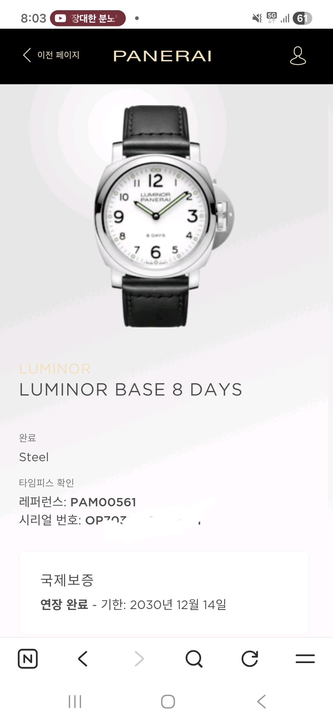 파네라이 다이빙 다이버 루미노르 베이스 8 데이즈 아찌아이오 스틸 화이트 흰판 44 44mm PAM00561 PAM561 PAM 561 다이빙 다이버,Panerai diving diver Luminor Marina Base 8 Days Acciaio steel white PAM00561 PAM561 PAM 561 white steel white diving diver,화이트,아라빅,스테인리스 스틸,핸드 와인딩,Stainless steel,Pin buckle,Arabic numeral indices,dotted lume plots,Luminor Base 8 Days Acciaio,루미노르 베이스 8 데이즈,Luminor,Panerai,파네라이,투명 케이스백,Arabic numeral indices, dotted lume plots
