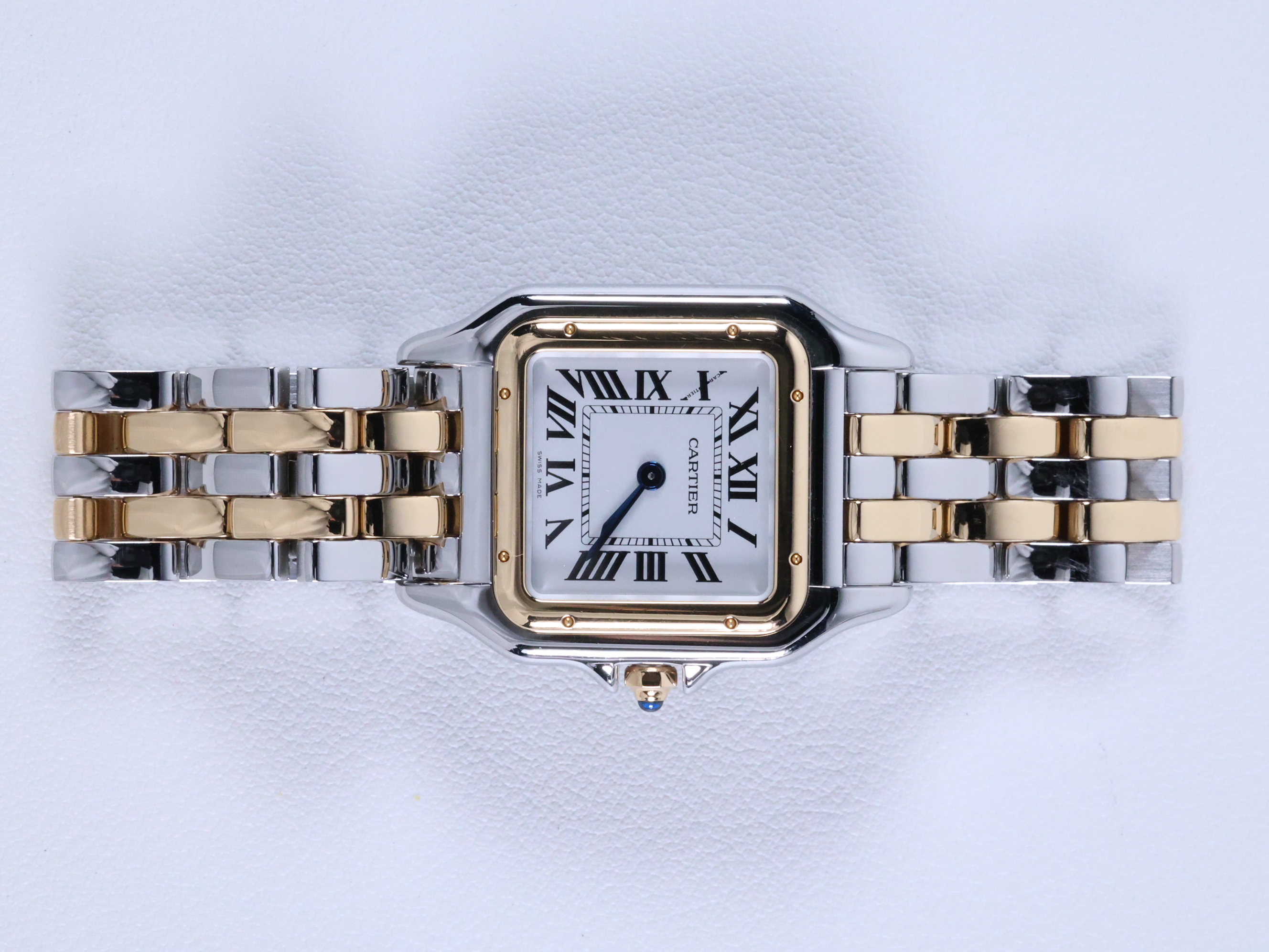 W2PN0014,실버,로만,스테인리스 스틸,옐로우 골드,쿼츠,Switzerland,Yellow gold + spinel,Folding clasp,Roman numeral indices,Panthere MM,팬더 드 까르띠에 워치 MM 미디엄 미디움 스틸 옐로우 골드 스틸 투톤 쿼츠 여성,Panthere de Cartier,Cartier,까르띠에,.실버,폴딩 클라스프,직사각형,클래식,여성용,스테인리스 스틸, 옐로우 골드,팬더 드 까르띠에 워치 MM