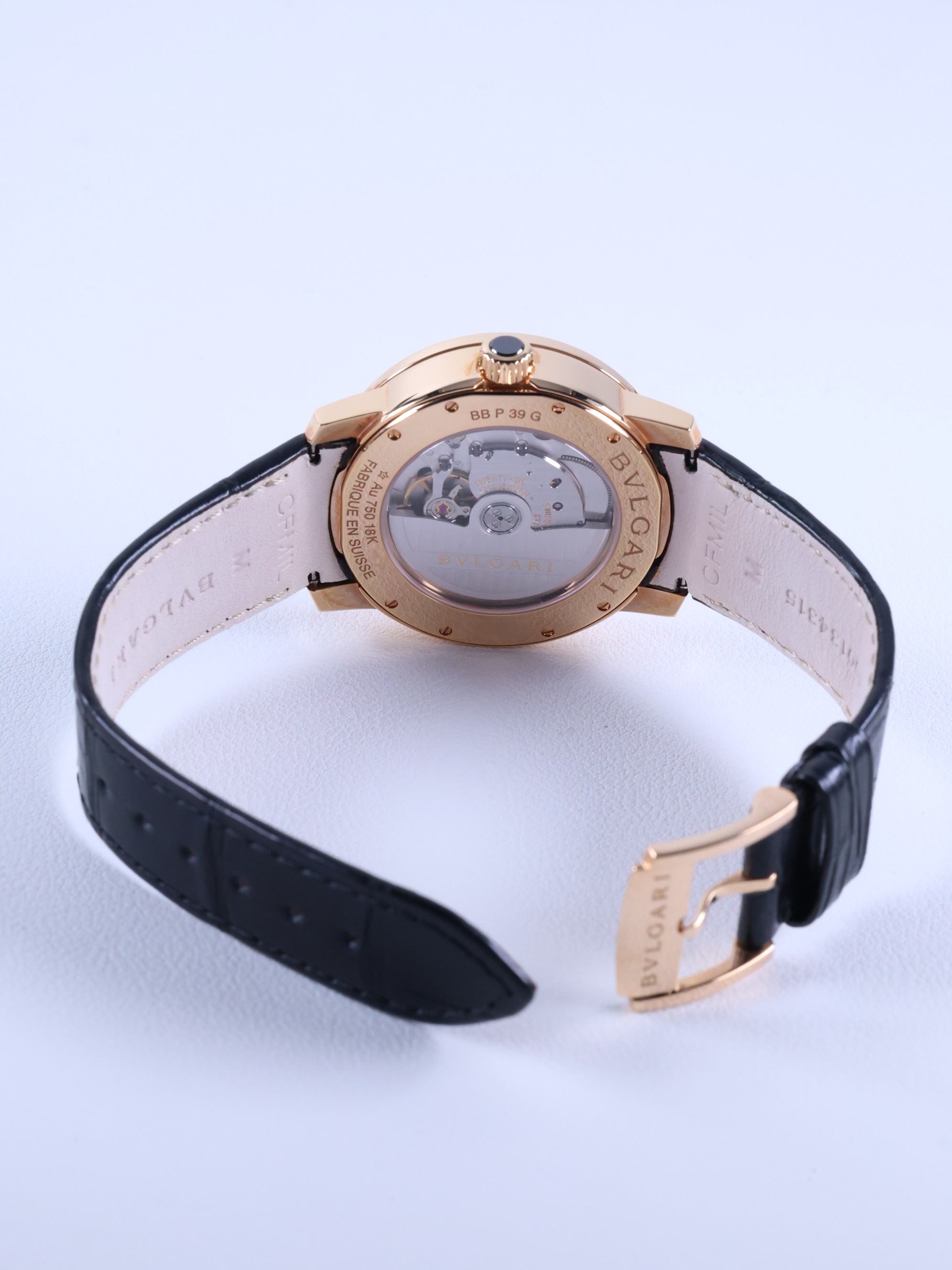 불가리 불가리 솔로템포 39 39mm 101869 BBP39WGLD 로즈 골드 로골 실버 39,bulgari bulgari bvlgari bvlgari solotempo 39 rose gold 39 101869 BBP39WGLD,101869-BBP39WGLD,101869,실버,핑크 골드,가죽,스트랩,39mm,셀프 와인딩,Cal. BVL 191,Switzerland,Pink gold + ceramic,Pin buckle,Date / applied arabic numerals & baton indices,Bvlgari Bvlgari,불가리 불가리,Bvlgari,불가리,투명 케이스백
