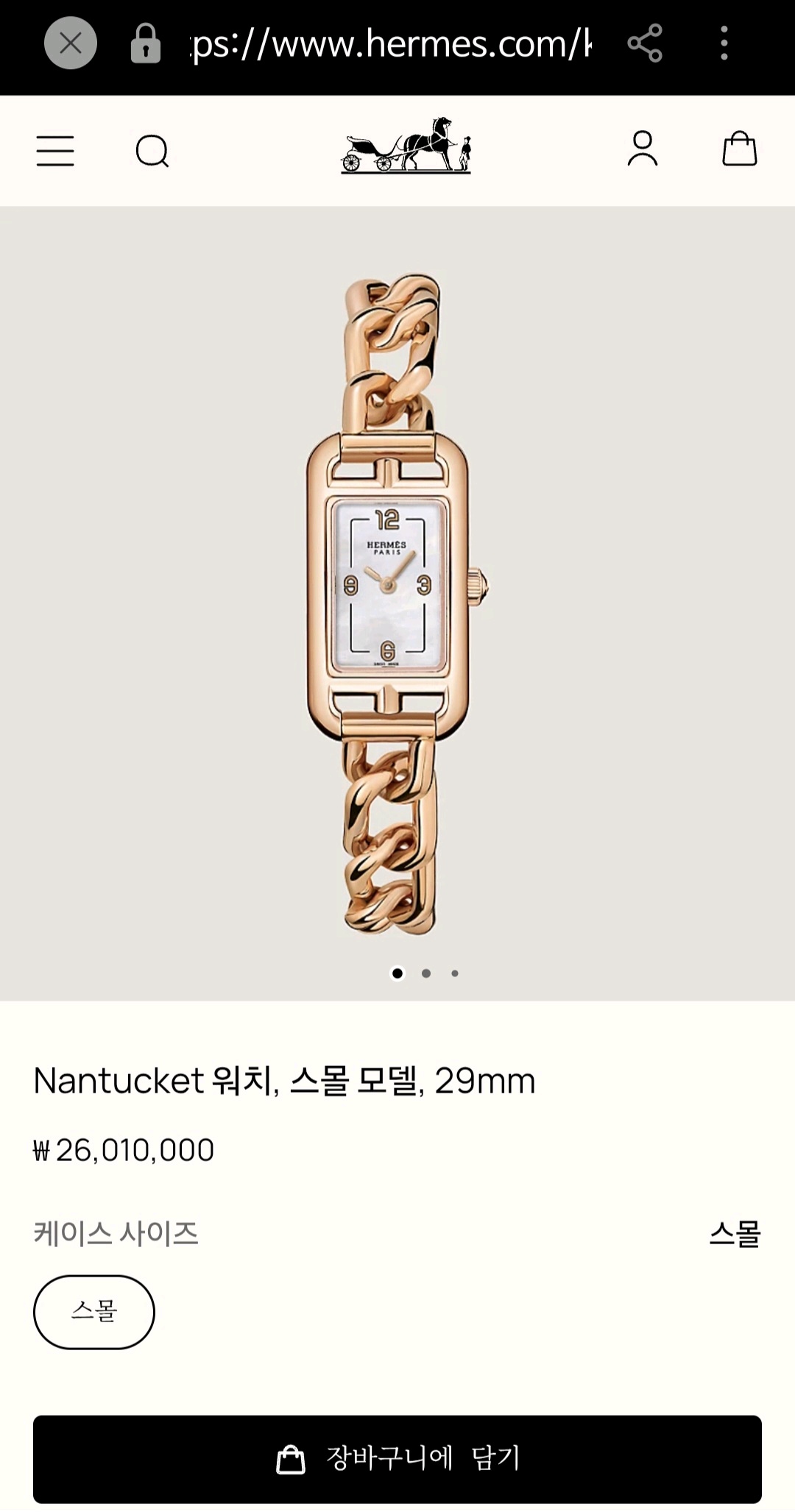 에르메스 난투켓 로즈골드 금통 시계 (금테크 가능)