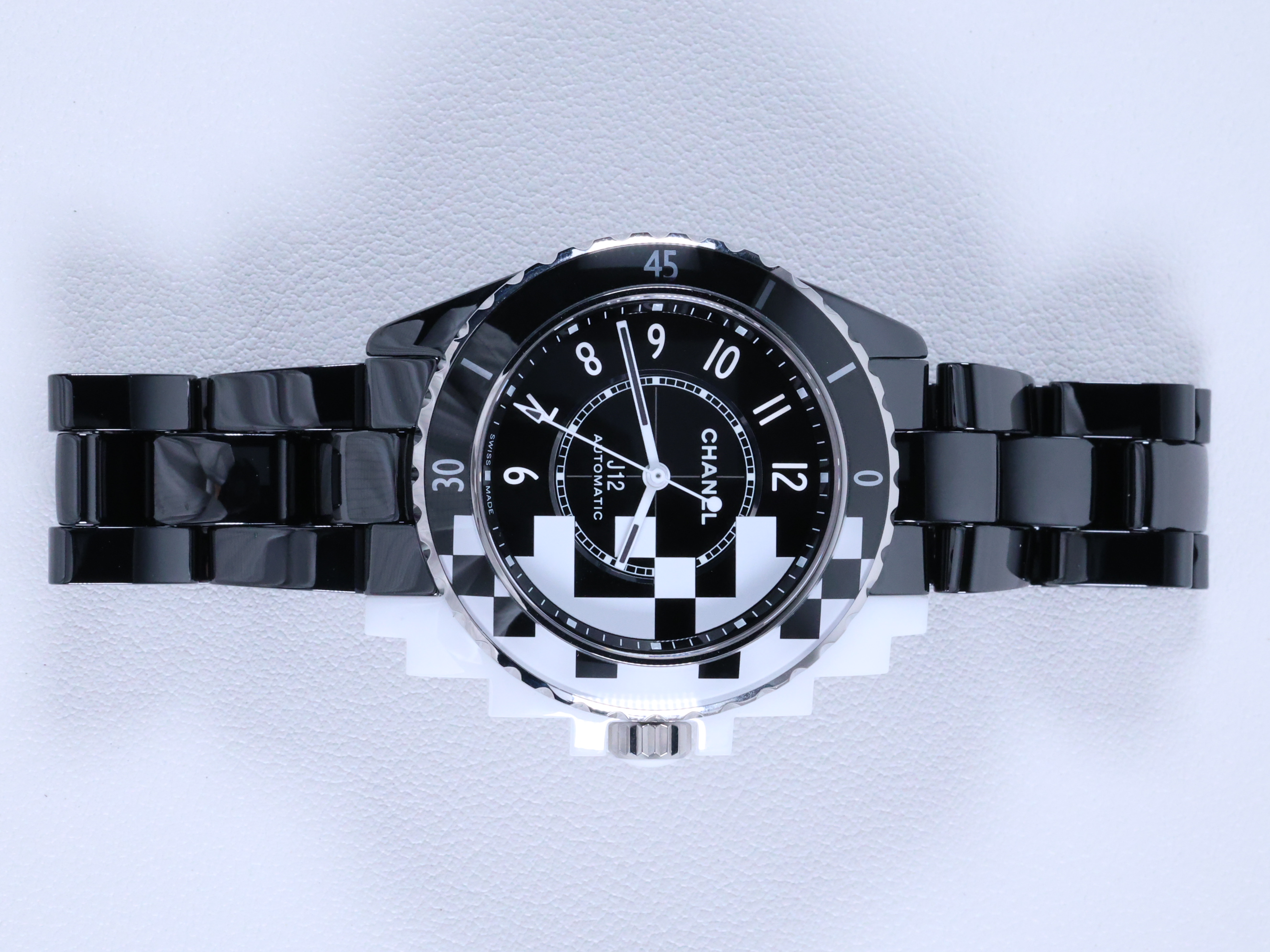 H7988 샤넬 J12 사이버네틱 H7988 인터스텔라 컬렉션 사이버네틱 세라믹 블랙 화이트 세라믹 블랙 픽셀 모티프 H7988,Chanel J12 cybernetic H7988 black white black ceramic pixel pixelated motif H7988,38mm,Stainless steel + ceramic cabochon,Folding clasp,Applied arabic numeral indices,J12 Cybernetic,J12 사이버네틱,J12,Chanel,샤넬