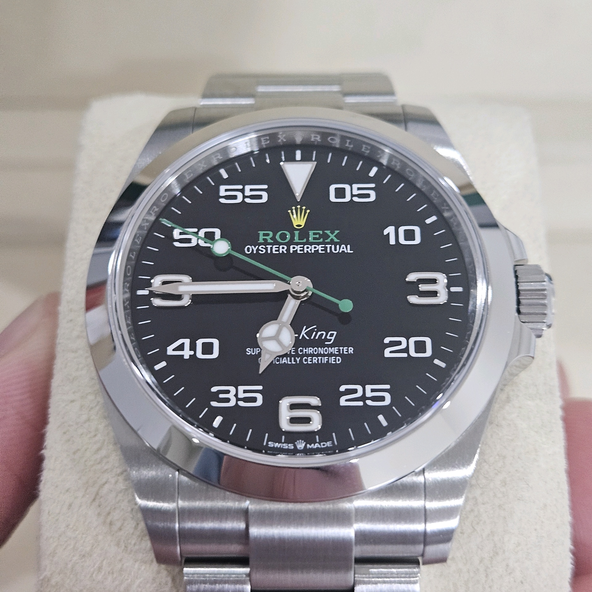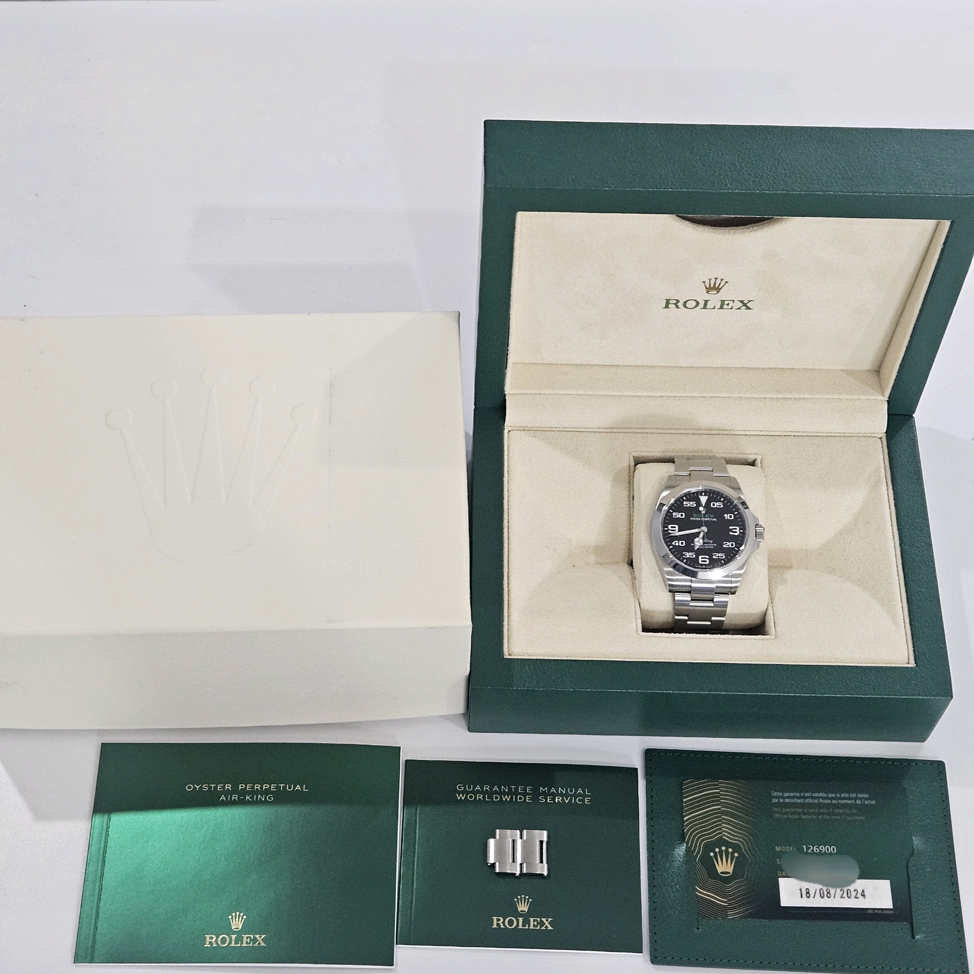 air-king,126900,m126900-0001,블랙,스테인레스 스틸,오이스터 브레이슬릿,사파이어 크리스탈,40mm,에어킹,공기왕,스무스,신형에어킹,검판,단종,Rolex,스테인리스 스틸,Switzerland,Stainless steel,Folding clasp,Arabic numeral indices,Hour + minute + seconds,Air-King,롤렉스,.블랙,아라빅,폴딩 클라스프,약 21mm,원형,파일럿,남성용