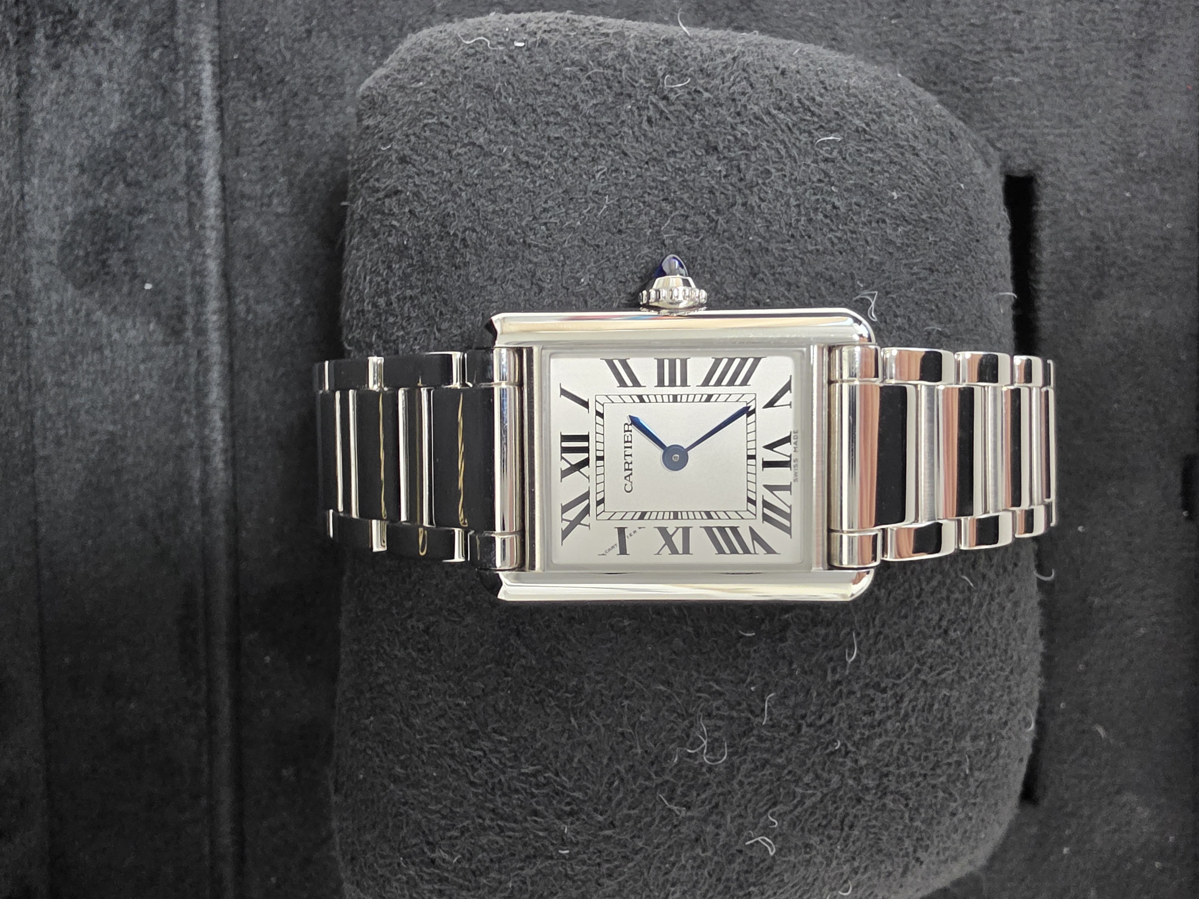 WSTA0107,까르띠에 카르티에 탱크 머스트 SM 스몰 스틸 브레이슬릿 쿼츠 WSTA0107,Cartier Tank Must SM Small steel bracelet quartz WSTA0107,스테인리스 스틸,Stainless steel,Butterfly clasp,Roman numeral indices,Tank Must SM,탱크 머스트 SM,Tank,Cartier,까르띠에,로마자 로마 숫자 로만 인덱스,roman numerals,.실버,로만,폴딩 클라스프,직사각형,클래식,여성용