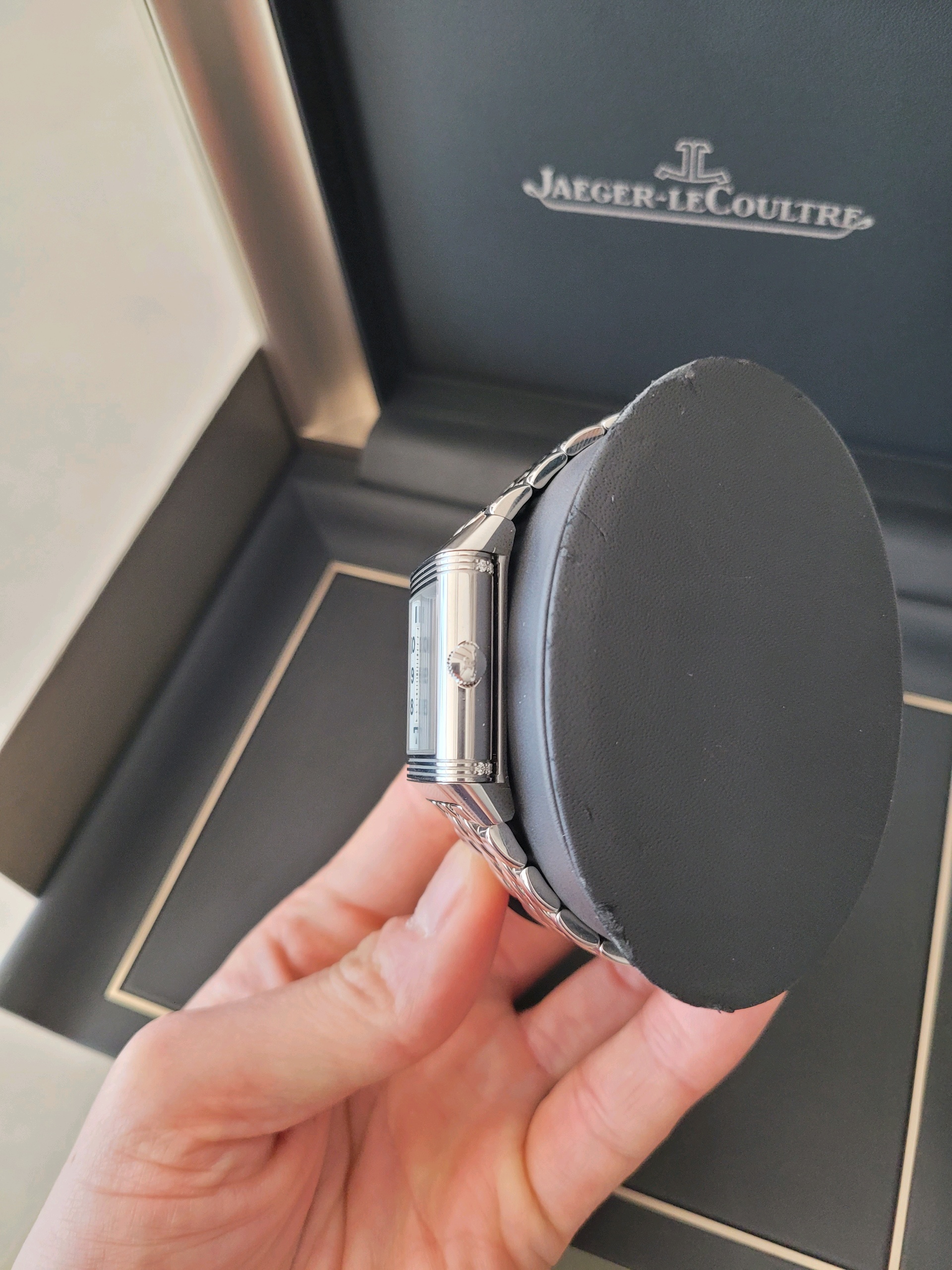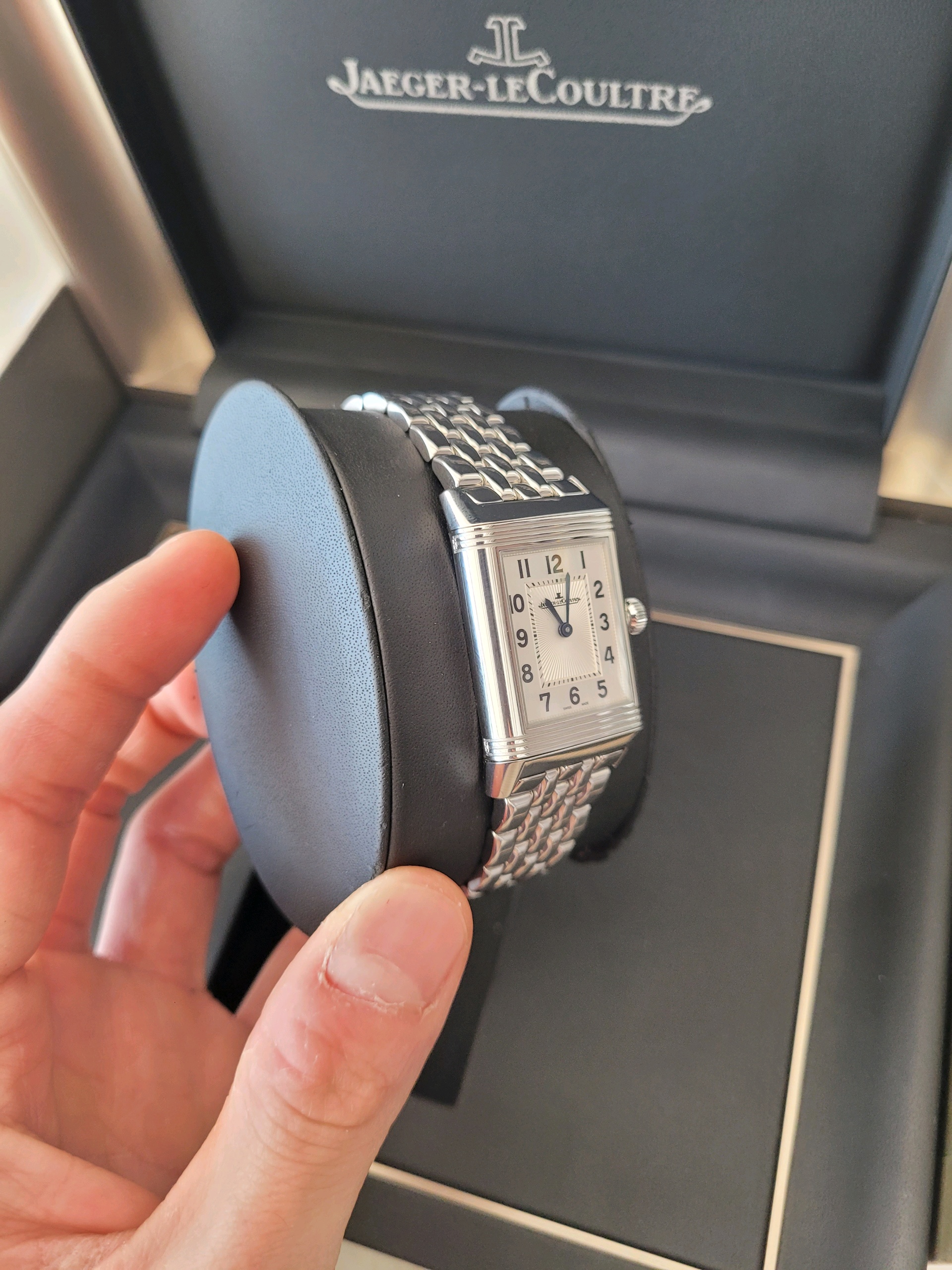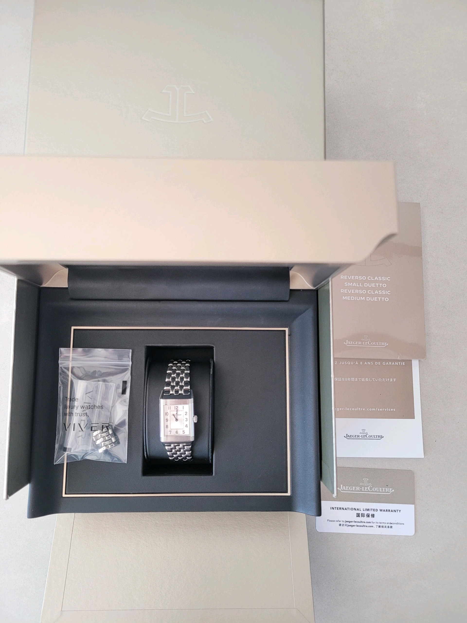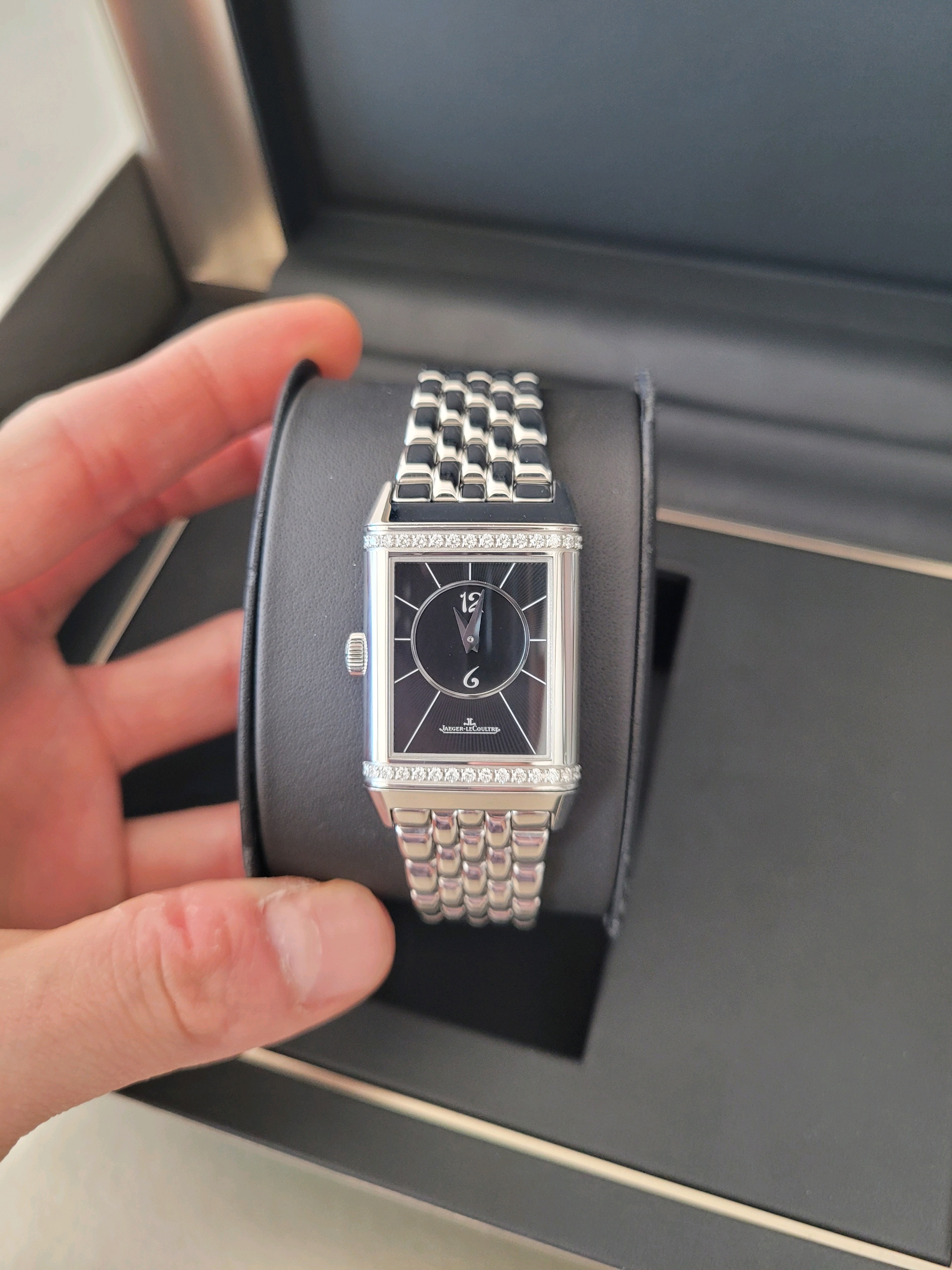 JLC 예거 르쿨트르 루꿀트르 리베르소 클래식 듀에토 Q2588120 실버 그레이 블랙 스테인리스 스틸 아라빅,Q2588120,앞면 : 실버 그레이 / 뒷면 : 블랙,스테인리스 스틸,브레이슬릿,핸드 와인딩,JLC Cal. 854B,Switzerland,Stainless steel,Folding clasp,Front: arabic numeral indices. Back: arabic numerals,Reverso Classic Duetto,리베르소 클래식 듀에토,Reverso Classic,Jaeger-LeCoultre,예거 르쿨트르,아라빅