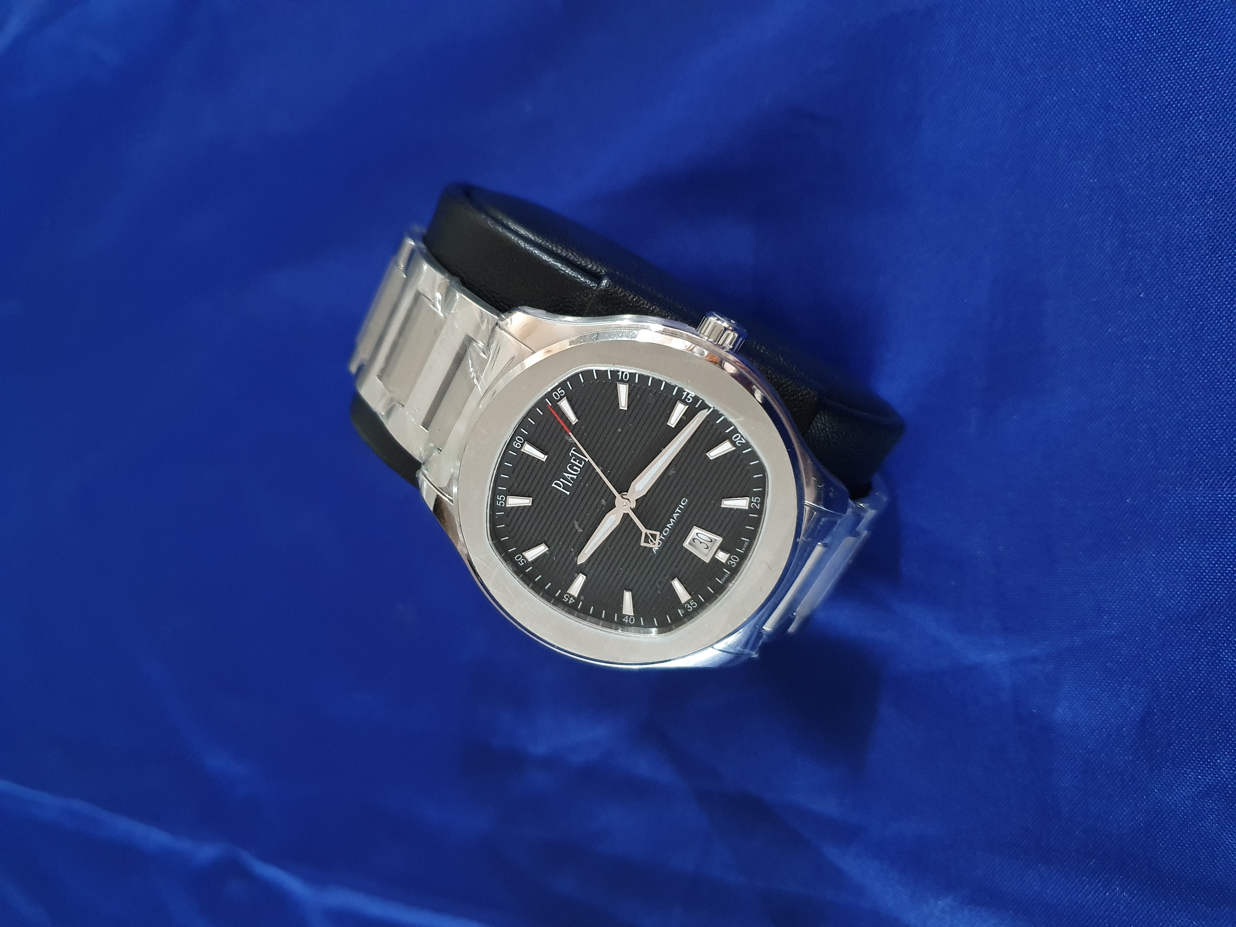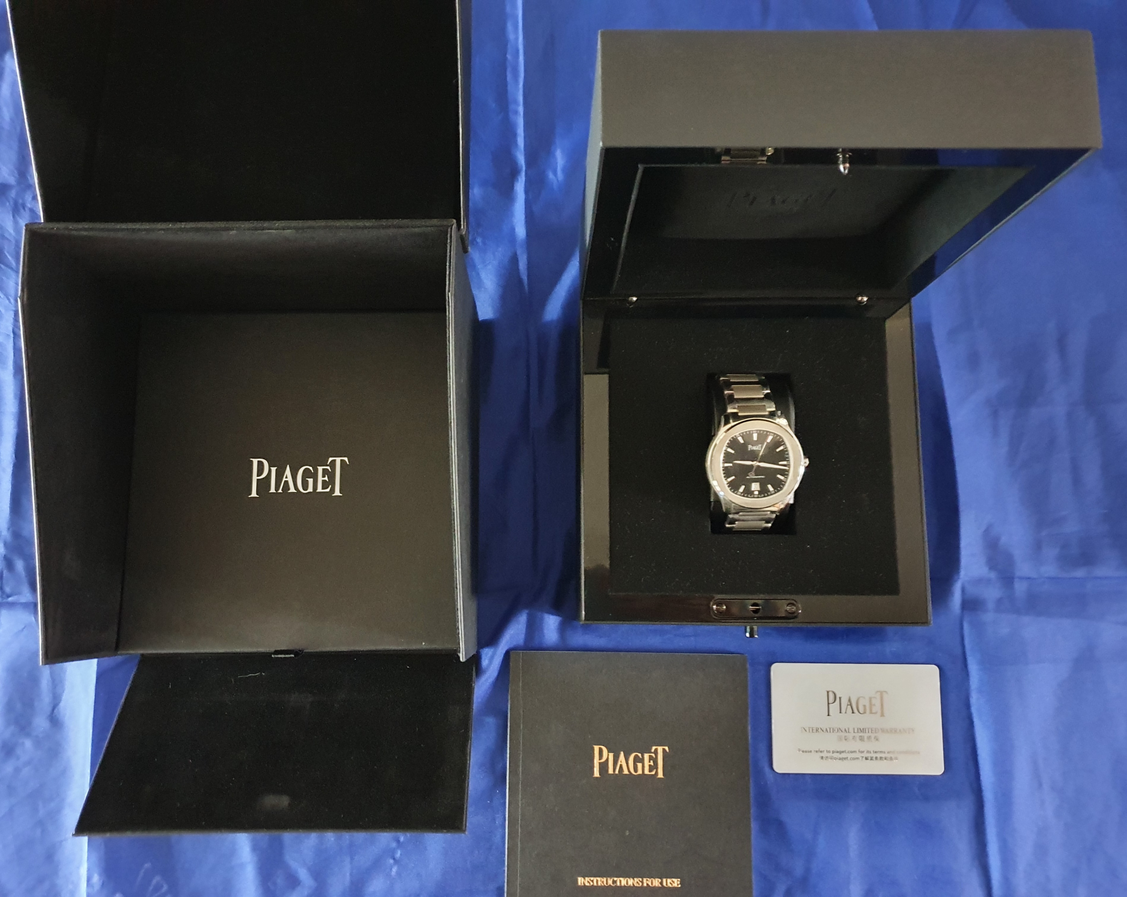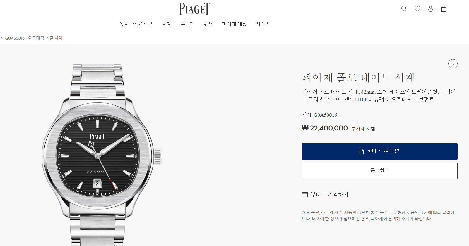 G0A50016,Polo Date,폴로 데이트,Polo,Piaget,피아제,Piaget Polo Date black steel black,피아제 폴로 데이트 블랙 스틸 블랙,블랙,스테인리스 스틸,셀프 와인딩,Stainless steel,Butterfly folding clasp,Date / applied trapezoidal indices