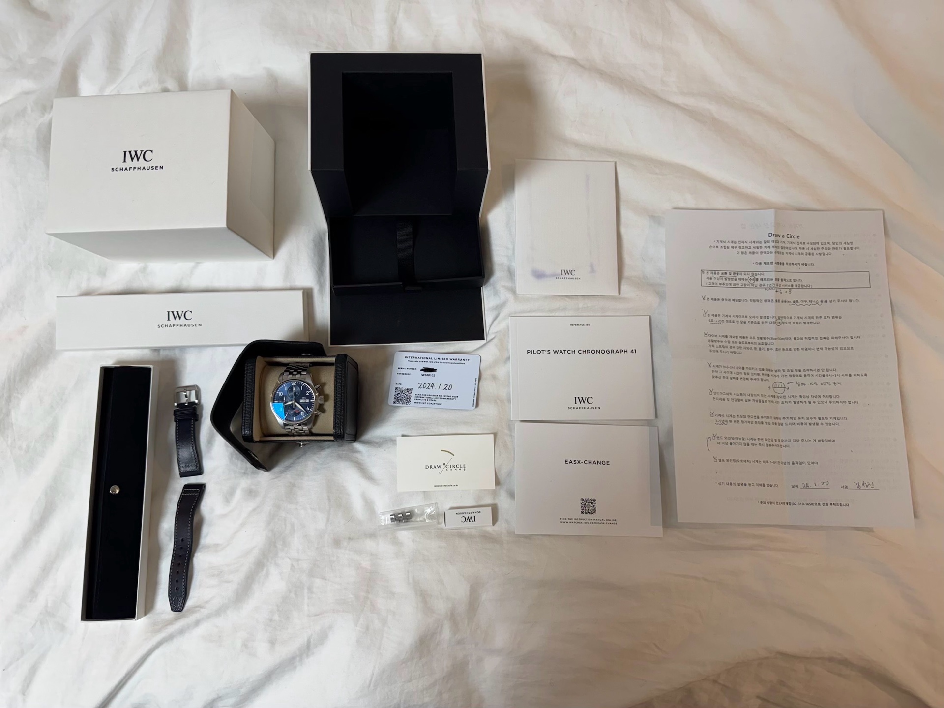 24년 1월 구매 모델입니다. 브레이슬릿 여분코 모두 보유중이며 풀세트 구성입니다.