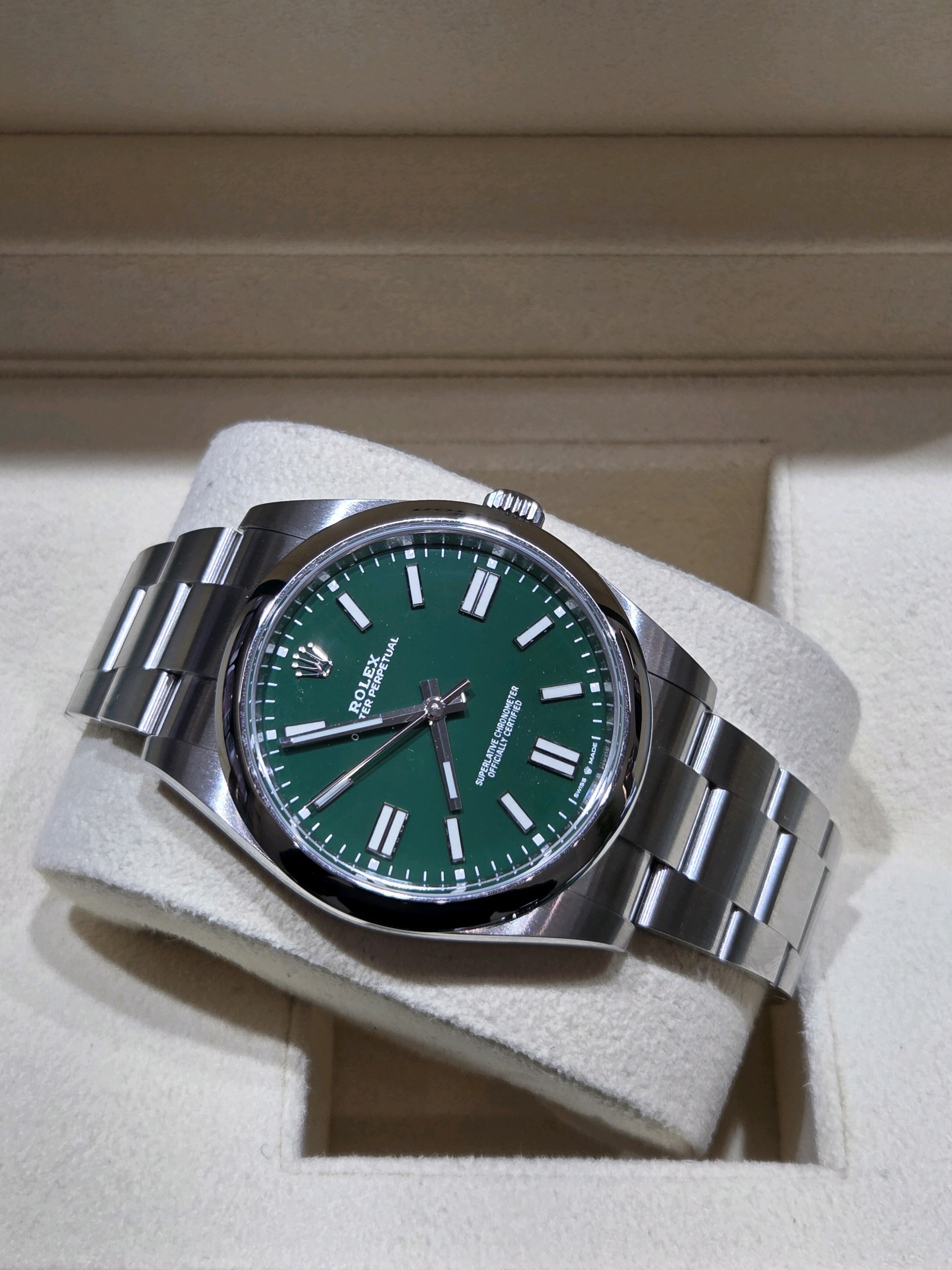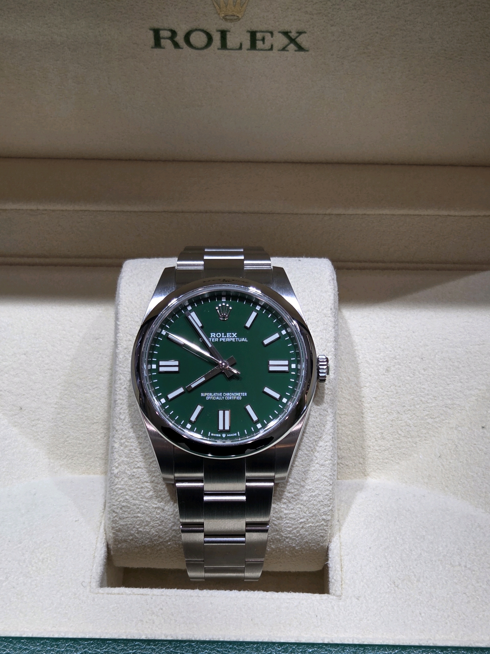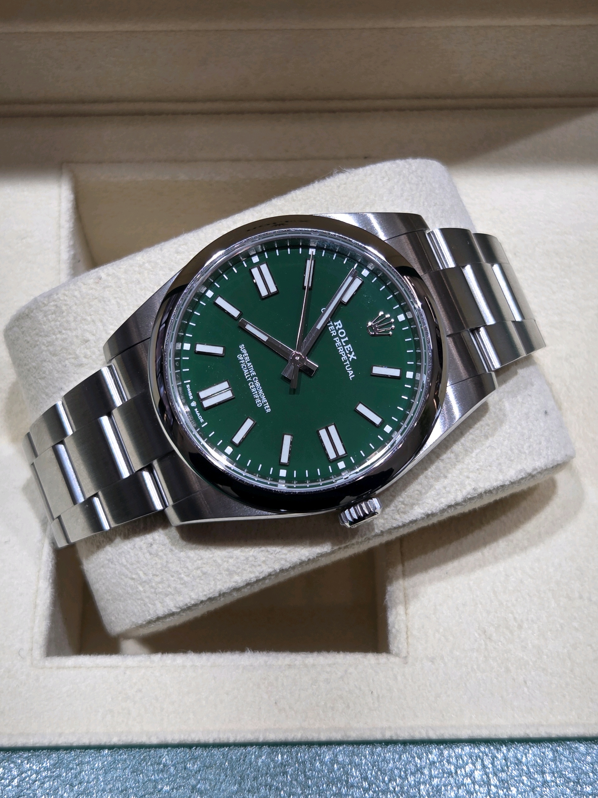 oysterperpetual41,124300,m124300-0005,그린,스테인레스 스틸,오이스터 브레이슬릿,사파이어 크리스탈,41mm,오이스터퍼페추얼,오이스터퍼페츄얼,오피,op,예물시계추천,졸업선물,green,Rolex,스테인리스 스틸,Stainless steel,Folding clasp,Baton indices,Hour + minute + seconds,Oyster Perpetual 41,오이스터 퍼페츄얼 41,Oyster Perpetual,롤렉스,웨딩