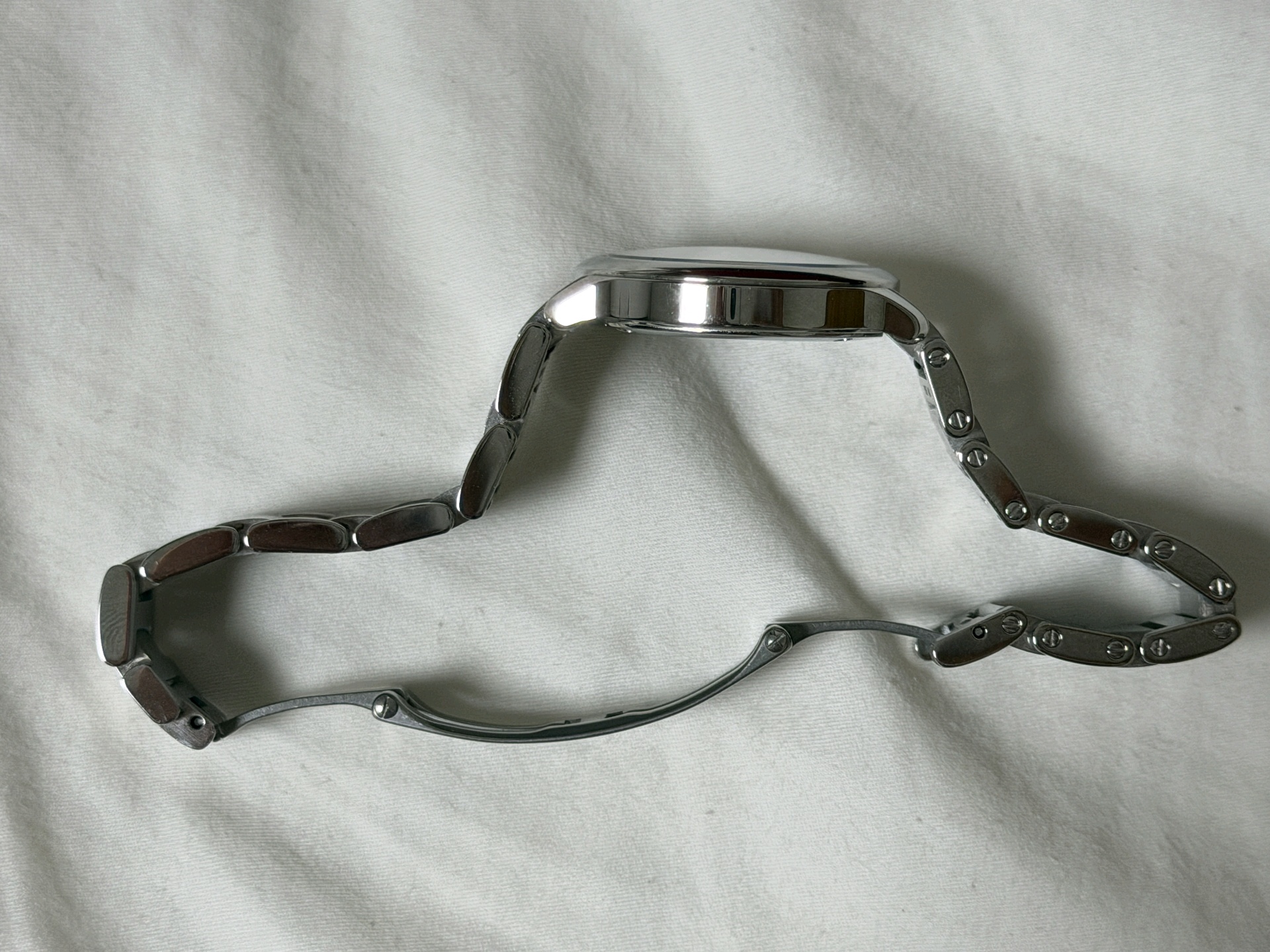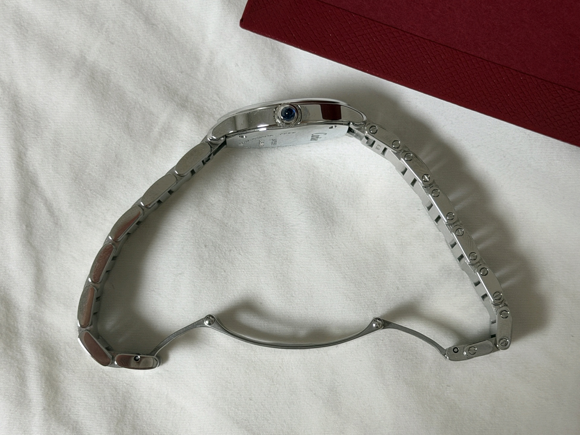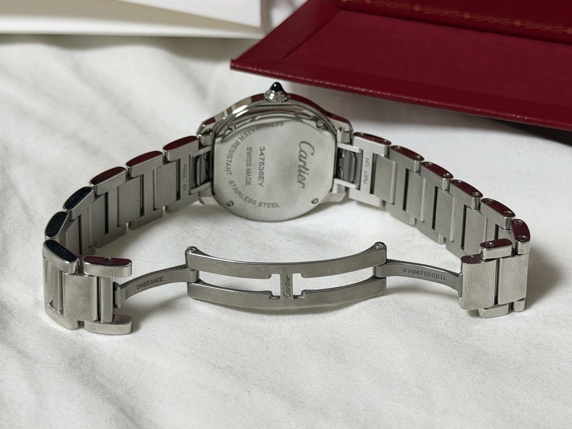 WSRN0033,까르띠에 롱드 드 까르띠에 롱드 머스트 SM 스몰 스틸 쿼츠 29mm,Cartier Ronde must de cartier small sm steel quartz 29mm,실버,스테인리스 스틸,29mm,쿼츠,Stainless teel + spinel,Folding clasp,Roman numeral indices,Ronde Must SM,롱드 머스트 SM,Ronde de Cartier,Cartier,까르띠에