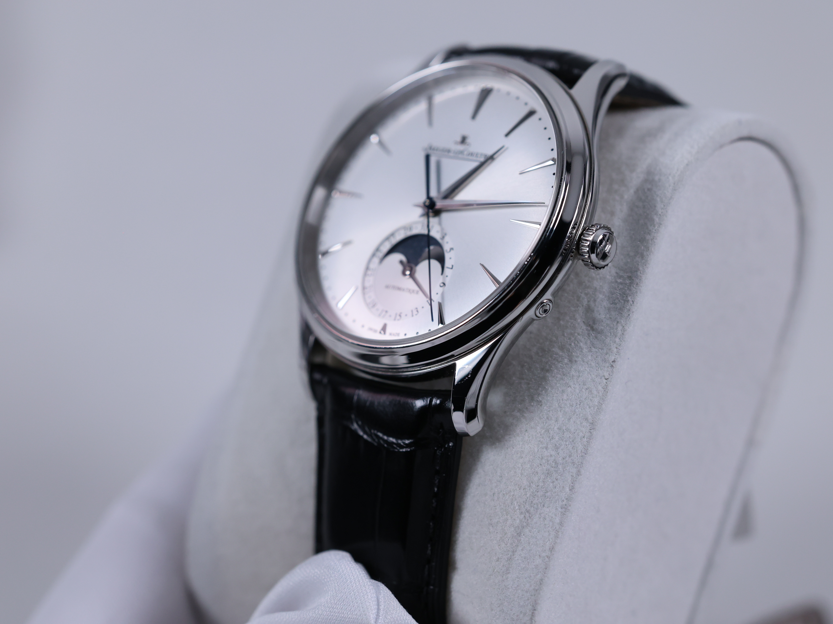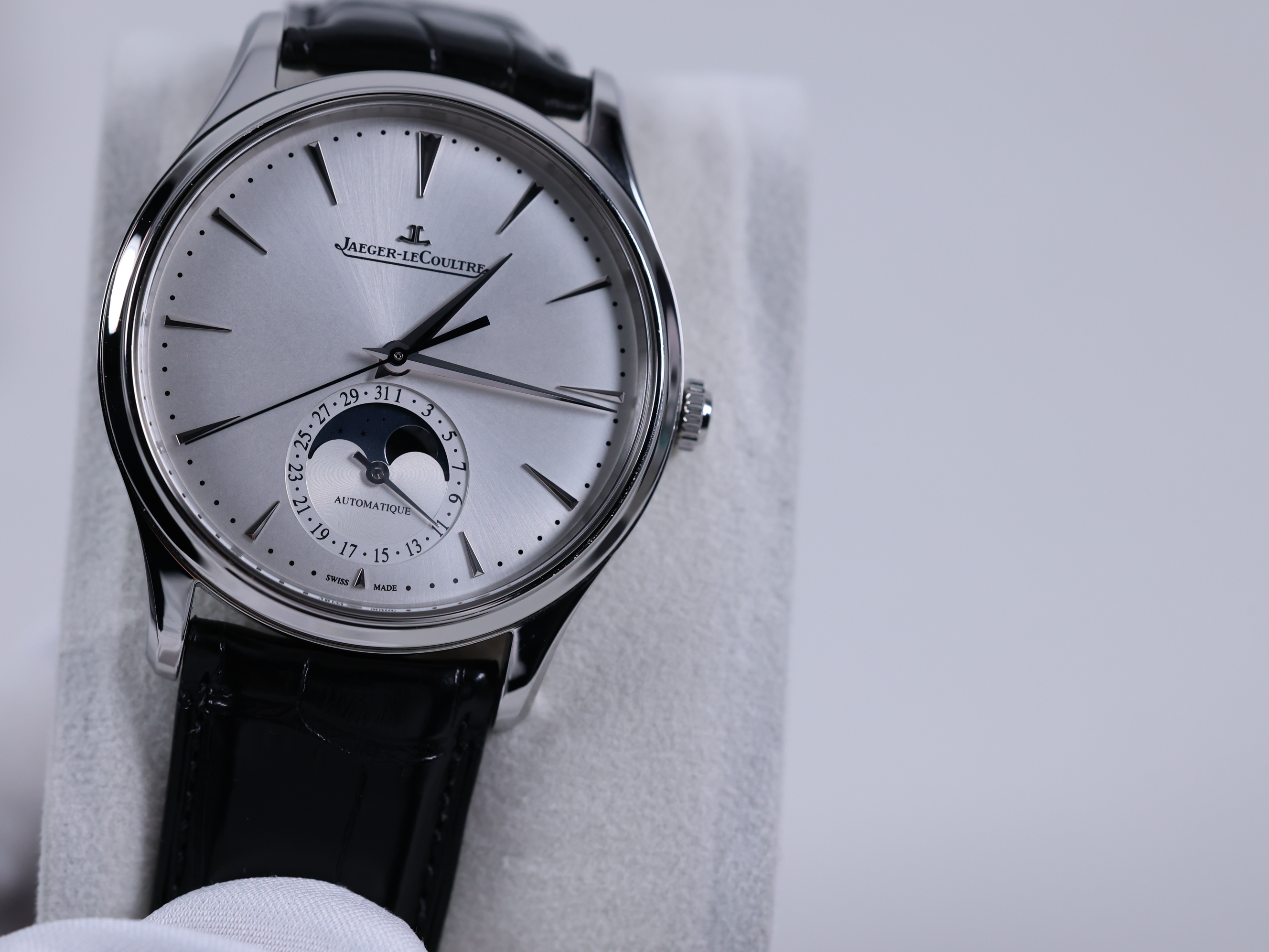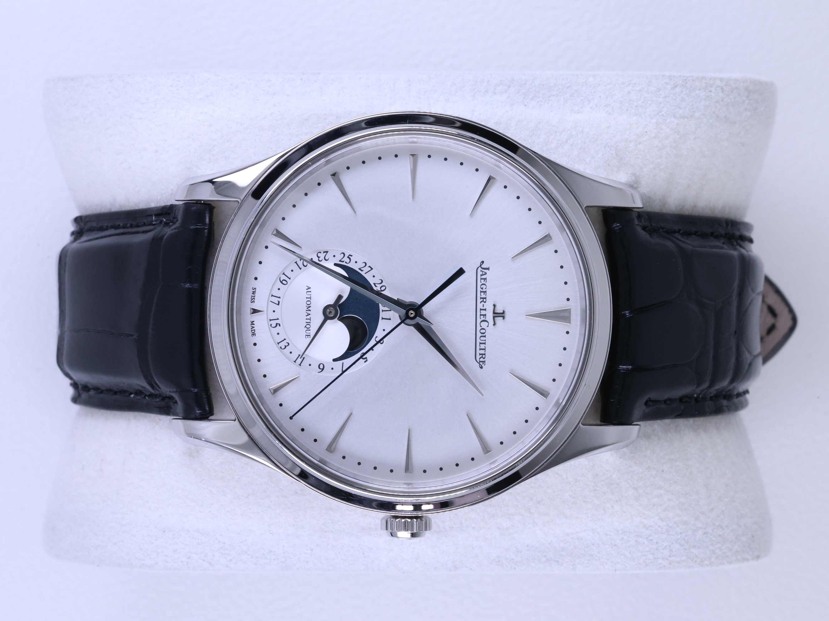 JLC Q1368430,예거 르쿨트르 Q1368430,예거 르쿨트르 마스터 울트라 씬 Q1368430,예거 르쿨트르 마울씬 Q1368430,Jaeger LeCoultre Master Ultra Thin,예거 르쿨트르 마스터 울트라 씬,예거 마스터 울트라 씬,예거 마울씬,예거 울트라 씬,예거 르쿨트르 마울씬,예거 문페이즈,예거 마울씬 실버,예거 마스터 울트라 씬 실버,실버 그레이,가죽 스트랩,39mm,스테인리스 스틸,셀프와인딩,Master Ultra Thin Moon,마스터 울트라 씬 문,Master Ultra Thin,Jaeger-LeCoultre,예거 르쿨트르,셀프 와인딩,Switzerland,Stainless steel,Deployant clasp with pin buckle,Date-moonphase / dauphine indices,Hour + minute + seconds + date,Deployant folding clasp with anchor buckle,Date-moonphase / applied dagger indices,.실버,바,그라데이션,디플로이언트,문페이즈,데이트,투명 케이스백,21mm,원형,클래식,드레스,남녀공용