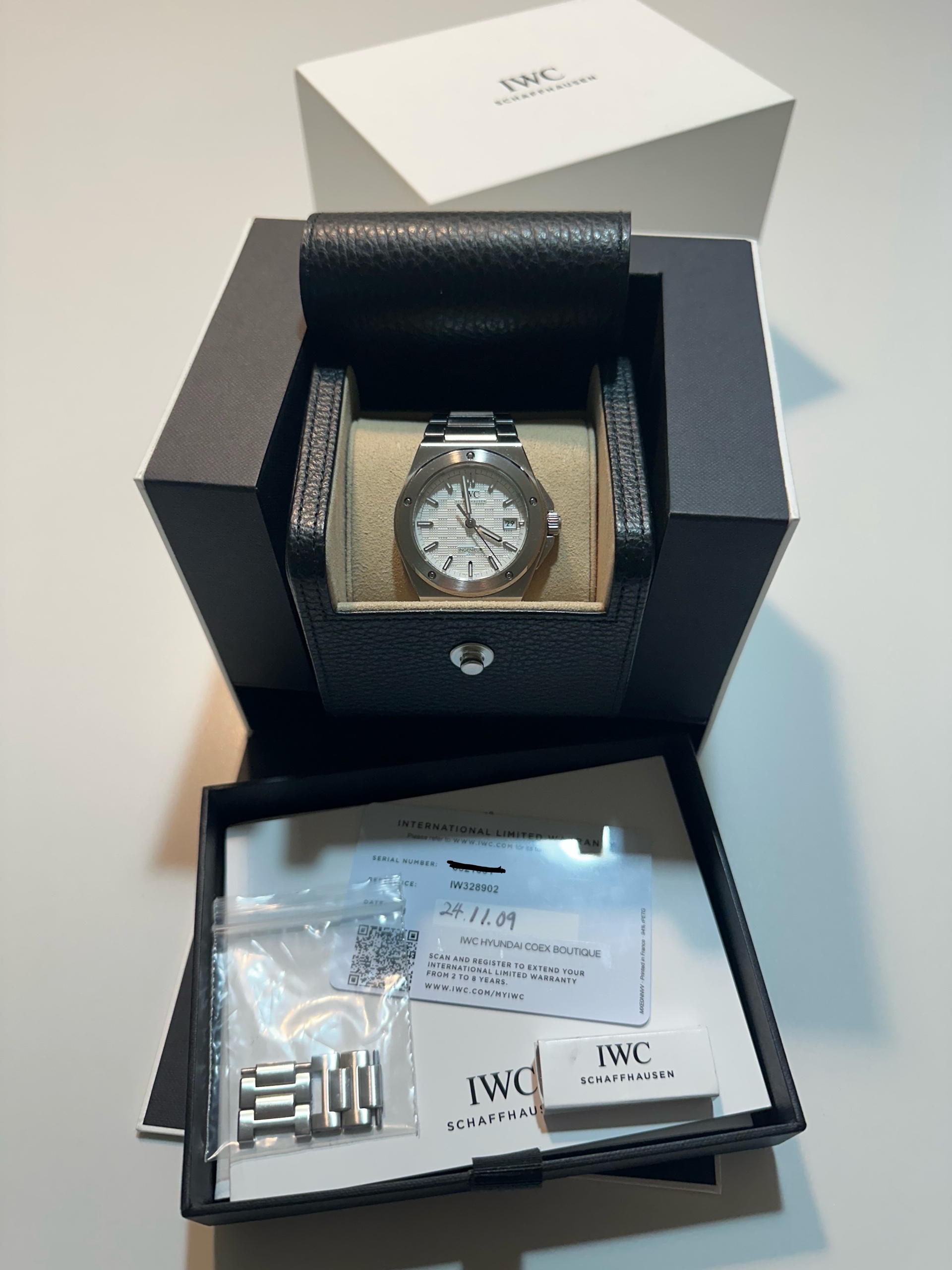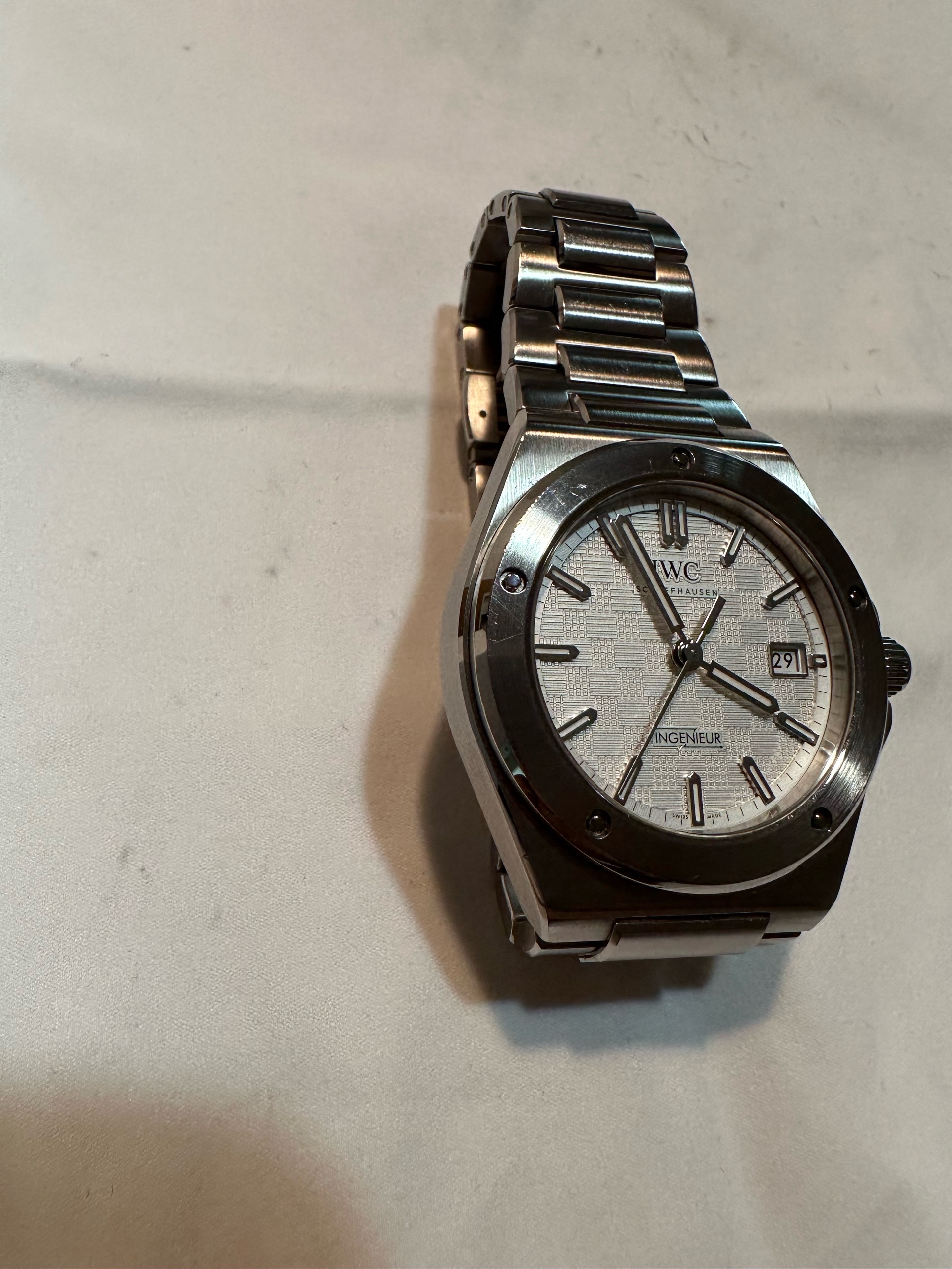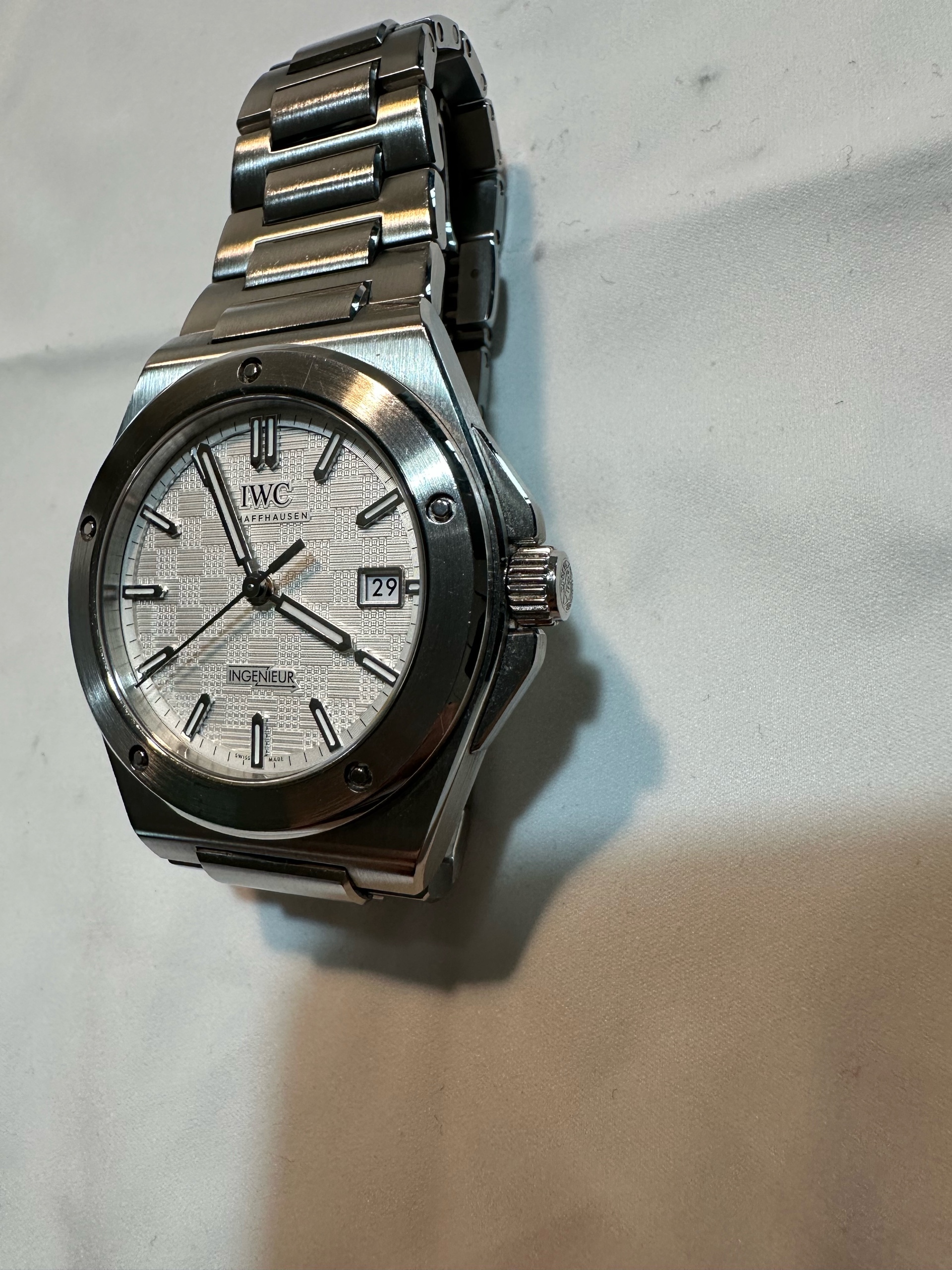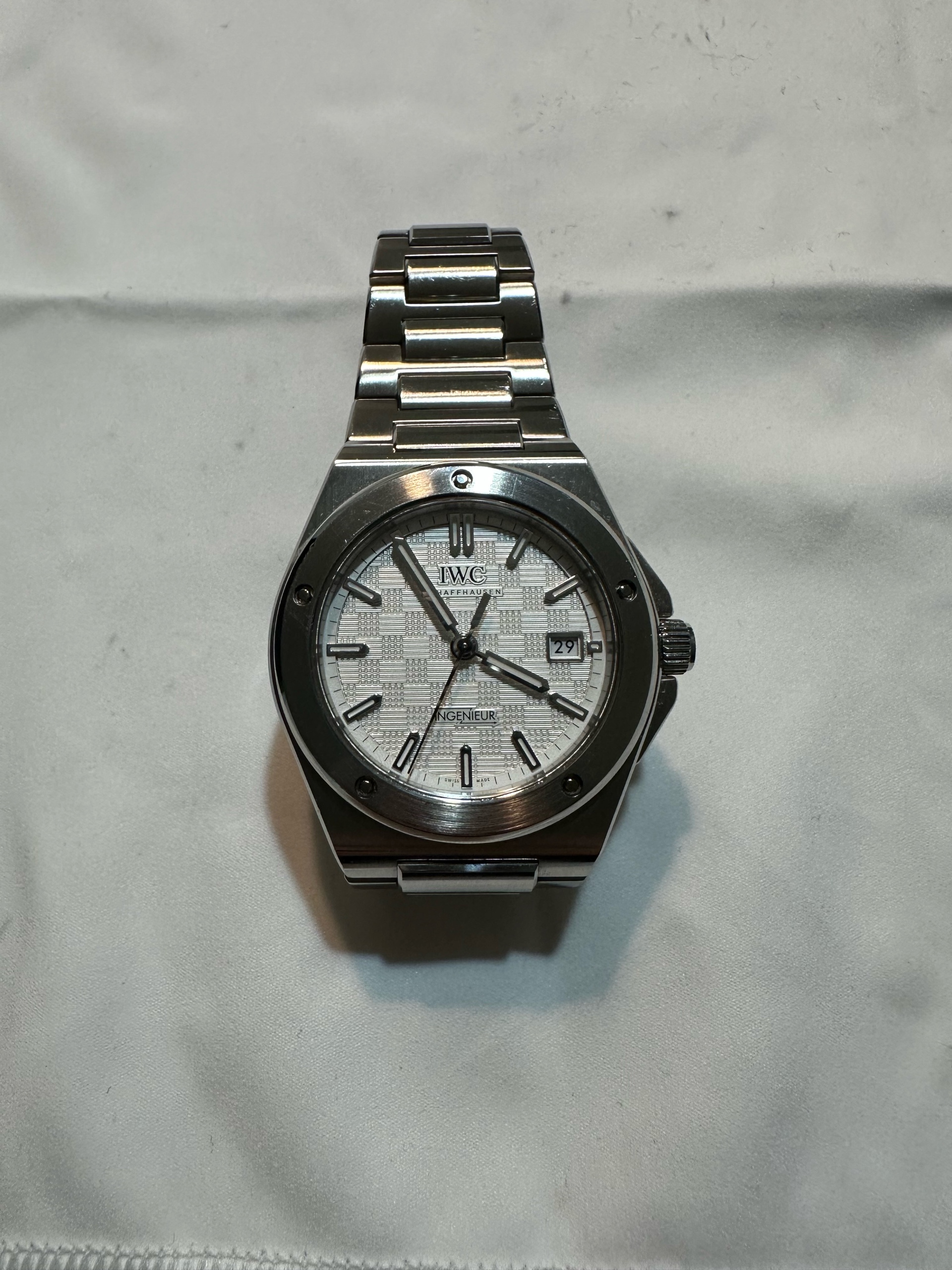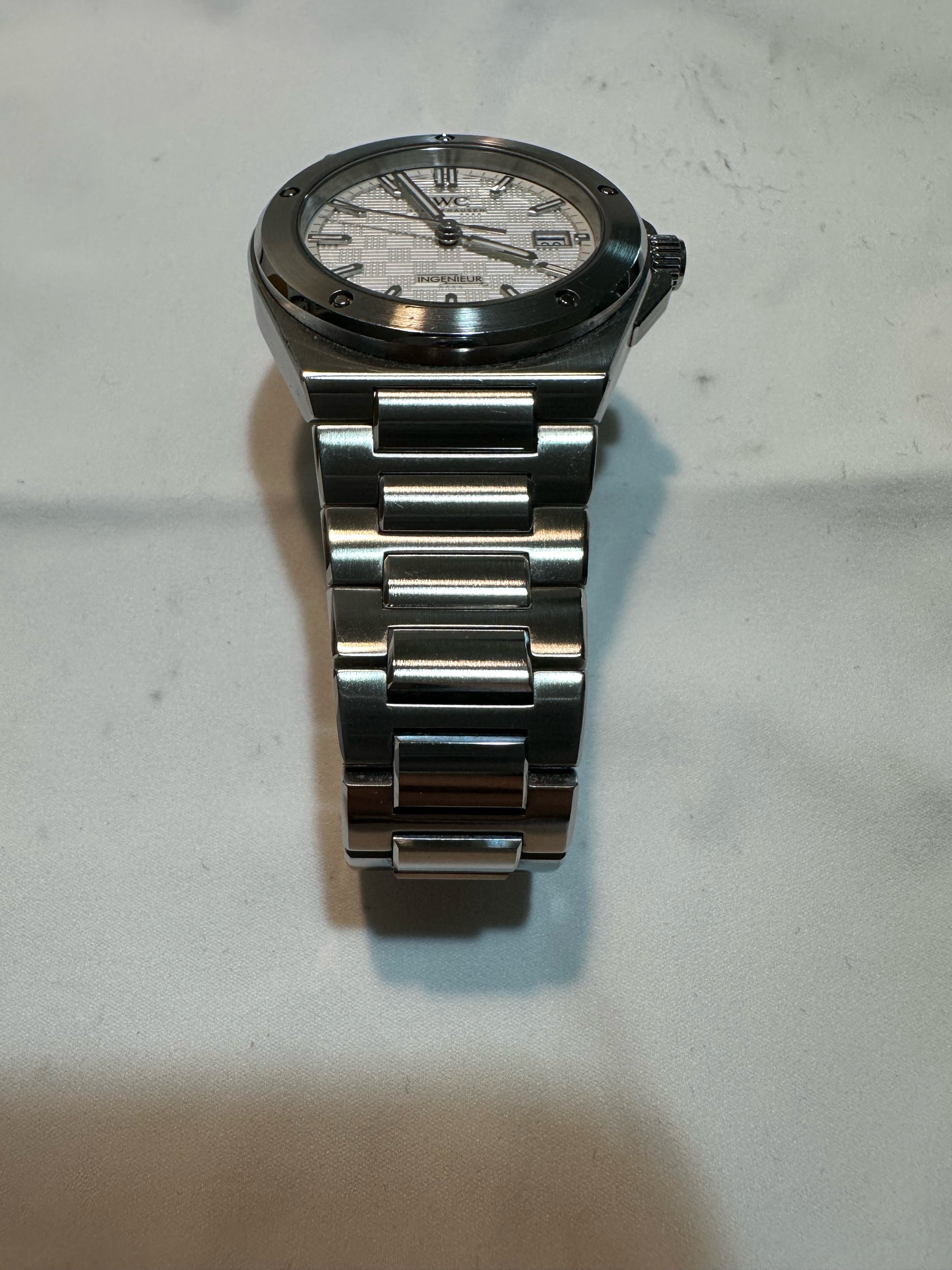 IWC IW328902,Ingenieur IW328903,IWC 인제니어 IW328903,Ingenieur,인제니어,IWC,아이더블유씨,아이 더블유 씨,IWC Ingenieur,IWC 인제니어,IWC 엔지니어,IWC 인지니어,젠타 디자인,젠타디자인,제랄드 젠타 디자인,일체형 브레이슬릿,일체형 시계,Integrated Bracelet,IWC 인제니어 실버 다이얼,IWC 인제니어 화이트 다이얼,IWC 실버 다이얼,IWC 화이트 다이얼,IWC 인제니어 흰판,IWC 인제니어 흰색 다이얼,스테인리스 스틸,셀프와인딩,Ingenieur Automatic 40,인제니어 오토매틱 40,40mm,100m,Switzerland,Stainless steel,Butterfly clasp,Date / applied obelisk indices,Hour + minute + seconds,셀프 와인딩,.실버,바,패턴,폴딩 클라스프,데이트,14mm,원형,스포츠,남성용