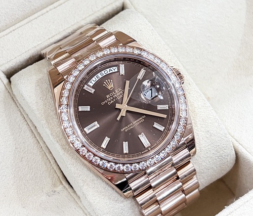 day-date40,228345rbr,m228345rbr-0006,초콜렛,다이아몬드,에버로즈 골드,프레지던트 브레이슬릿,사파이어 크리스탈,40mm,데이데이트,데데,데이트,에버로즈골드,로즈골드,로골,금통,금장,어버이날 선물,50대 추천,베젤다이아,Rolex,다이아몬드 세팅,Switzerland,Rose gold,Hidden folding clasp,Day,date / diamond-set indices,Hour + minute + seconds,Day-Date 40,데이데이트 40,Day-Date,롤렉스,.브라운,보석 세팅,폴딩 클라스프,데이-데이트,약 20mm,원형,클래식,남성용,Day, date / diamond-set indices