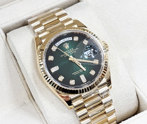 day-date36,128238,m128238-0069,그린 옴브레,다이아몬드,옐로우 골드,프레지던트 브레이슬릿,사파이어 크리스탈,36mm,데이데이트,데데,데이트,옐로우골드,옐골,금통,금장,다이아,다이아몬드 세팅,어버이날 선물,50대 추천,단종,Rolex,Yellow gold,Hidden folding clasp,Date / diamond-set indices,Day-Date 36,데이데이트 36,Day-Date,롤렉스,Day,date / diamond-set indices,Day, date / diamond-set indices,남성,기념일,.그린,보석 세팅,그라데이션,폴딩 클라스프,데이-데이트,약 20mm,원형,클래식,남녀공용