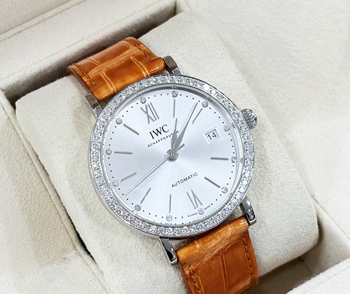 IW658601,실버,다이아몬드 세팅,스테인리스 스틸,가죽,스트랩,37mm,셀프 와인딩,Switzerland,Stainless steel,Deployant folding clasp,Date / applied roman,stick,diamond-set indices,IWC Portofino Automatic 37 steel silver steel diamond bezel diamonds,IWC 포르토피노 오토매틱 37 스틸 실버 스틸 다이아 다이아몬드 베젤 다이아,Portofino,IWC,Portofino Automatic 37,포르토피노 오토매틱 37,Date / applied roman, stick, diamond-set indices,.실버,보석 세팅,디플로이언트,데이트, 투명 케이스백,18mm,원형,드레스, 클래식,여성용