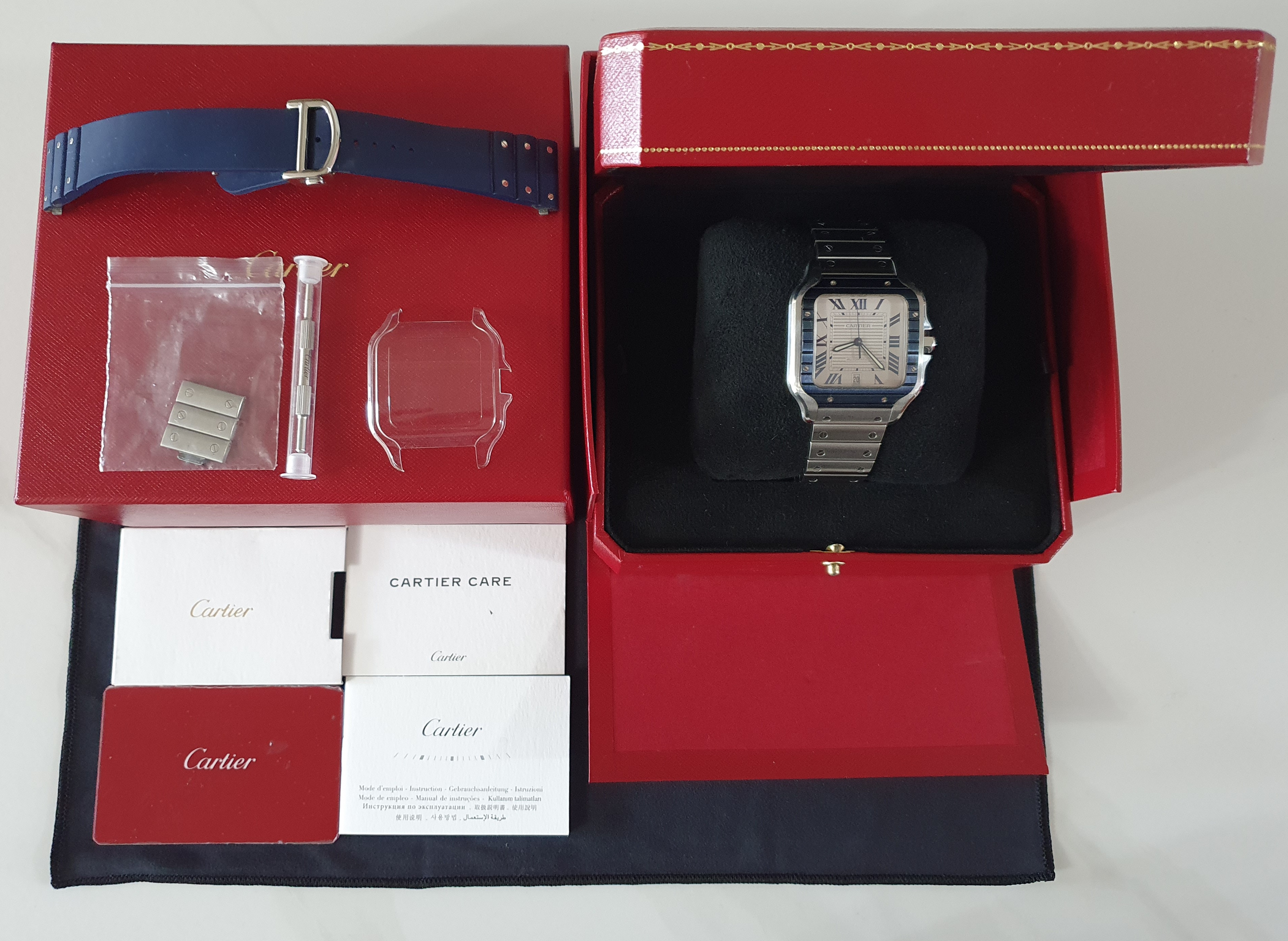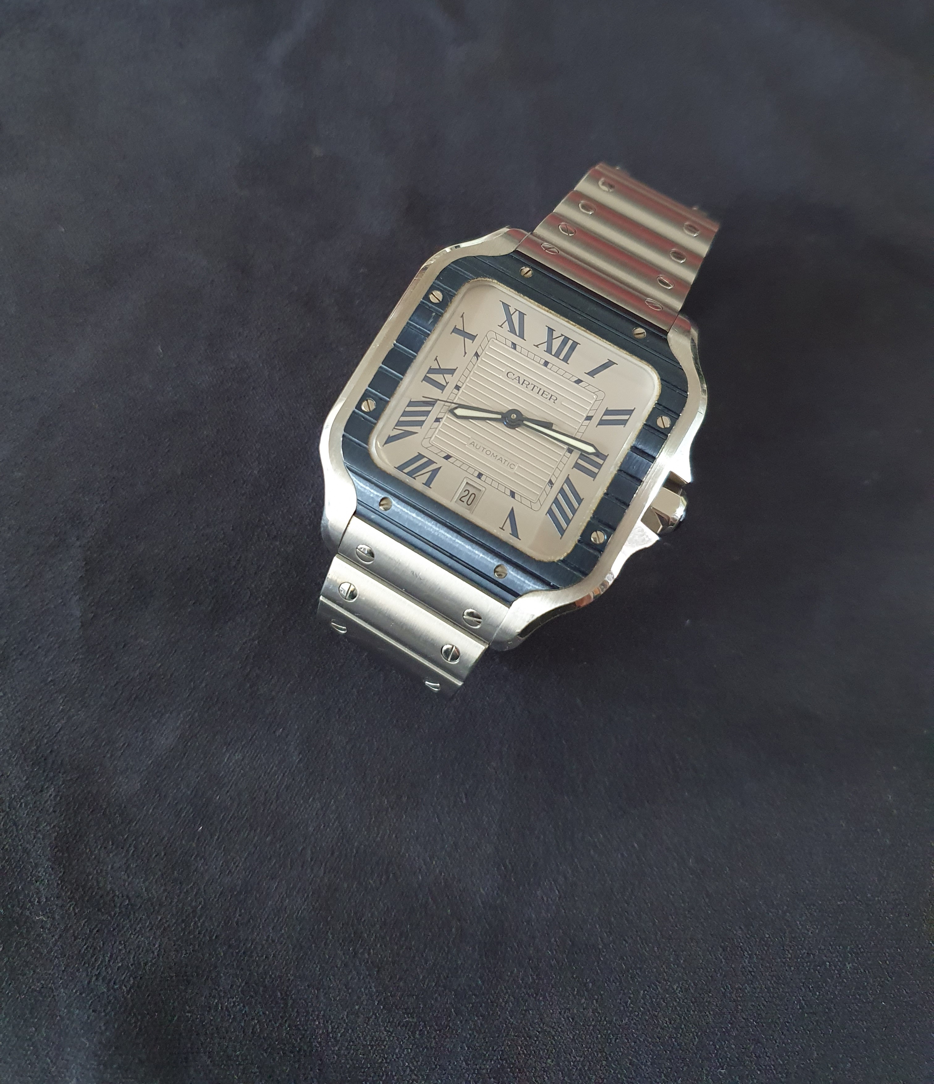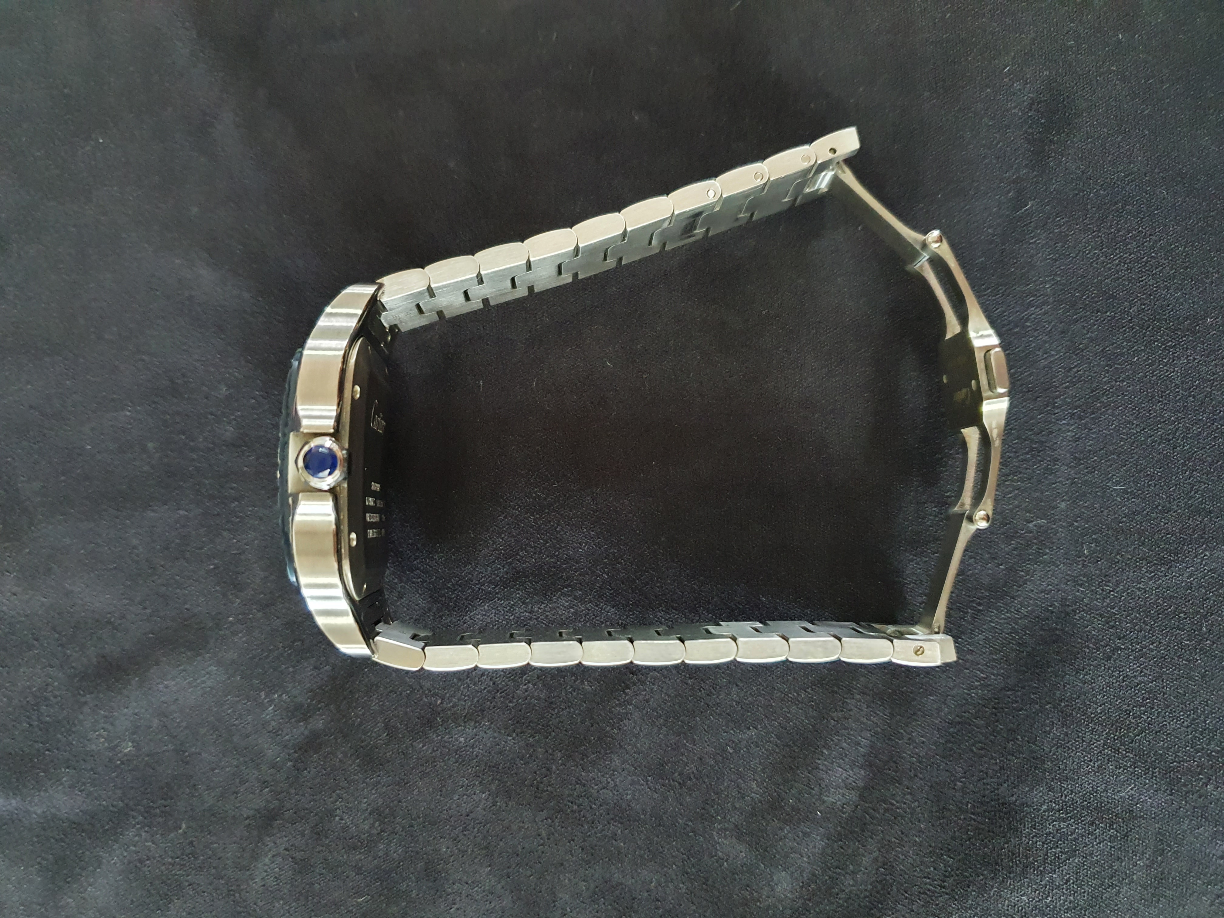 까르띠에 카르티에 산토스 싼토스 드 까르띠에 lm 라지 블루 pvd 블루 스틸 lm 라지,WSSA0047,실버,스테인리스 스틸,셀프 와인딩,Cal. 1847 MC,Switzerland,Stainless steel + spinel,Folding clasp,Date / roman numeral indices,Santos de Cartier LM,산토스 드 까르띠에 LM,Santos de Cartier,Cartier,까르띠에