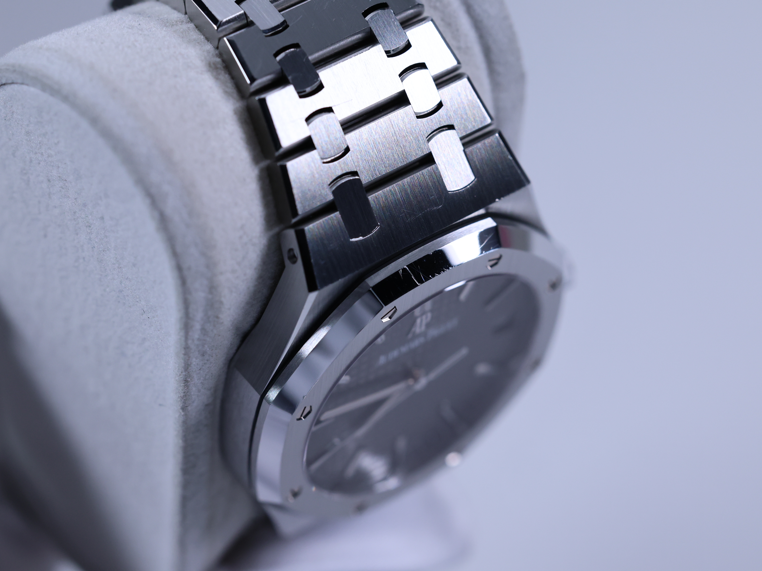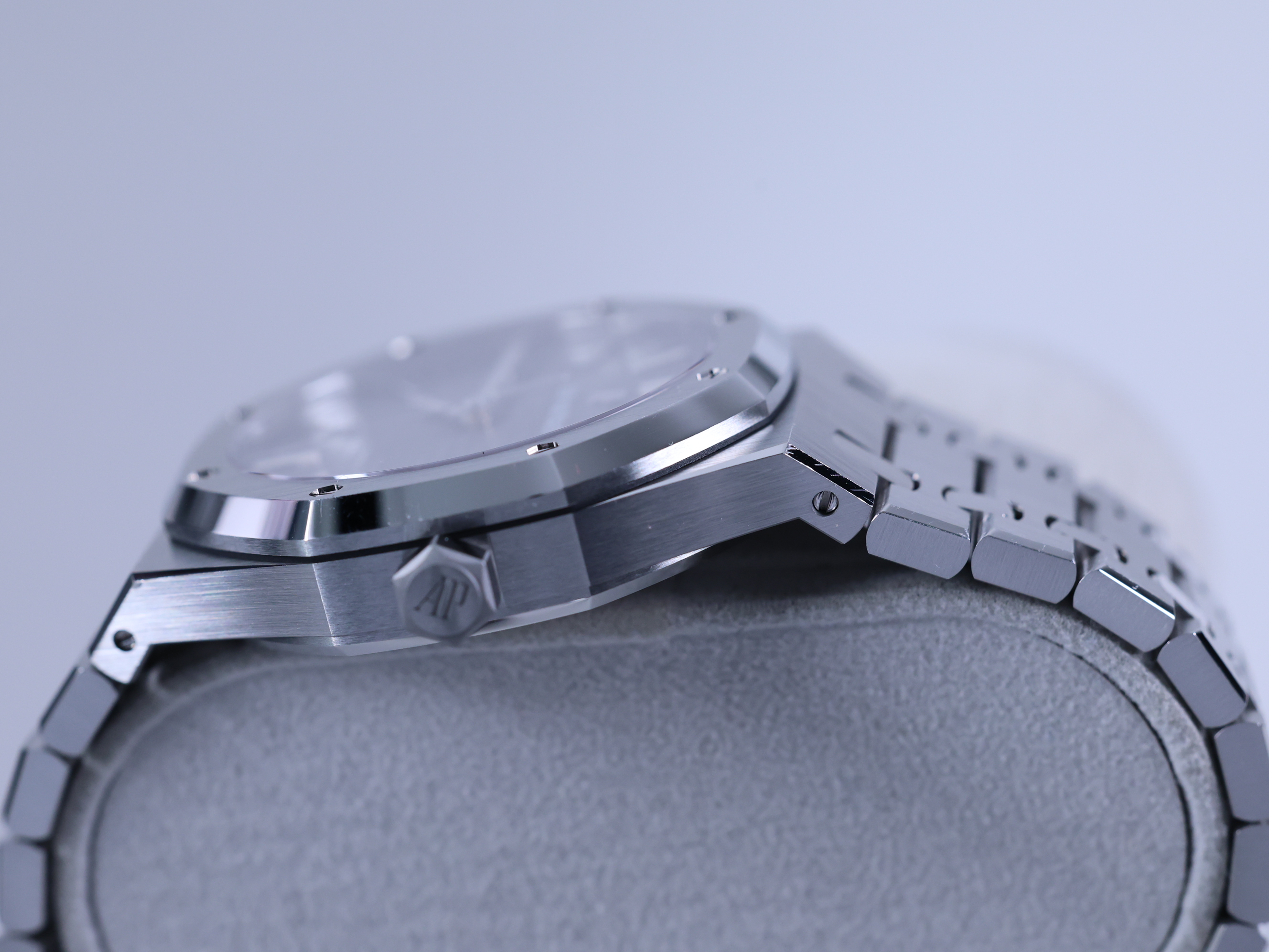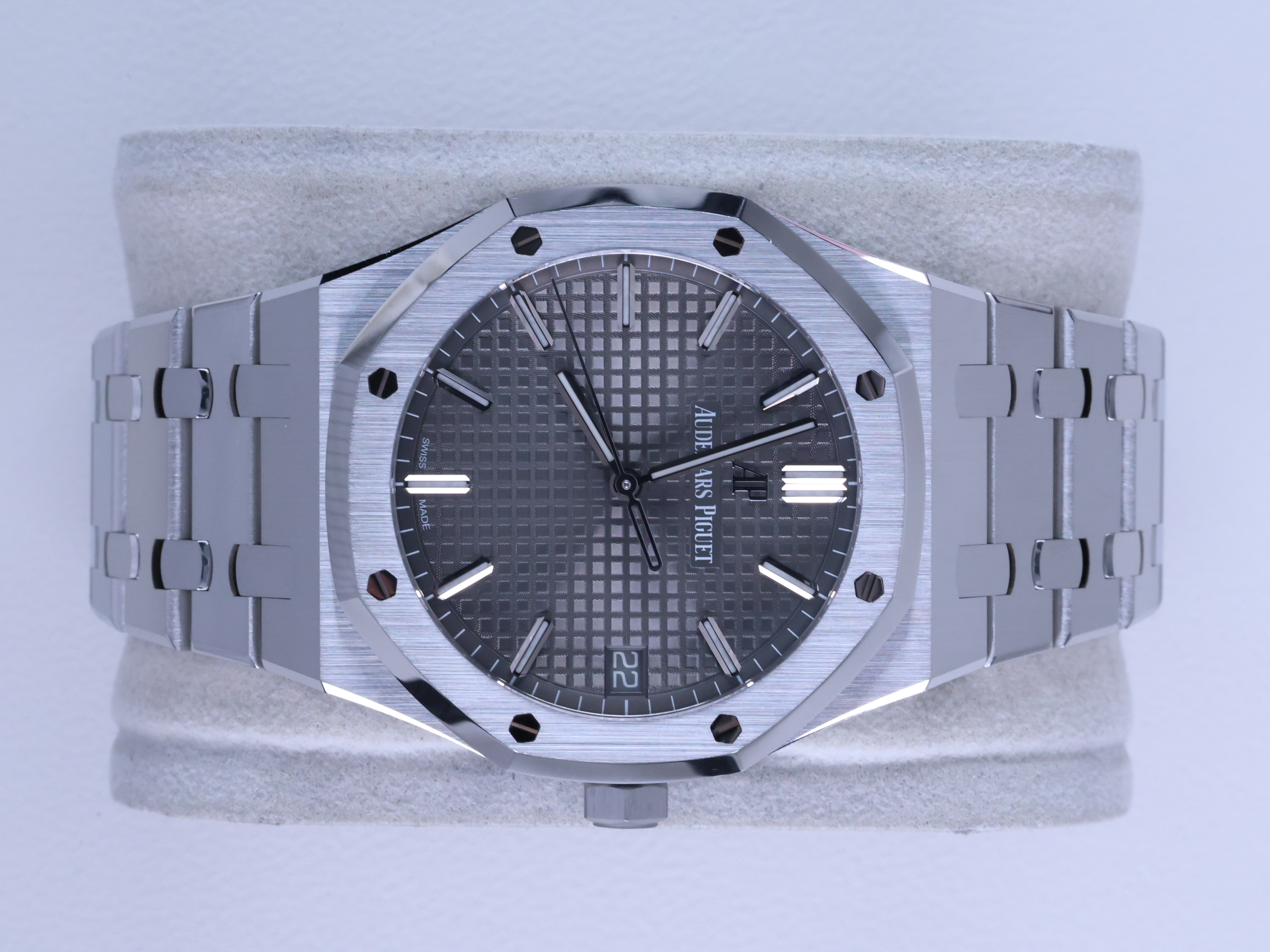 RoyalOak,15500ST.OO.1220ST.02,로열오크,로얄오크,AP,오데마,피게,팔각베젤,옥타곤,제랄드젠타,제럴드젠타,시스루백,그레이,스테인레스스틸,사파이어크리스탈,41mm,AudemarsPiguet,오데마피게,스테인레스 스틸,사파이어 크리스탈,Royal Oak,Audemars Piguet,오데마 피게,스테인리스 스틸,Switzerland,Stainless steel,Butterfly clasp,Date / applied baton indices,Hour + minute + seconds,로열 오크,Royal Oak Selfwinding,Butterfly folding clasp,투명 케이스백,Royal Oak