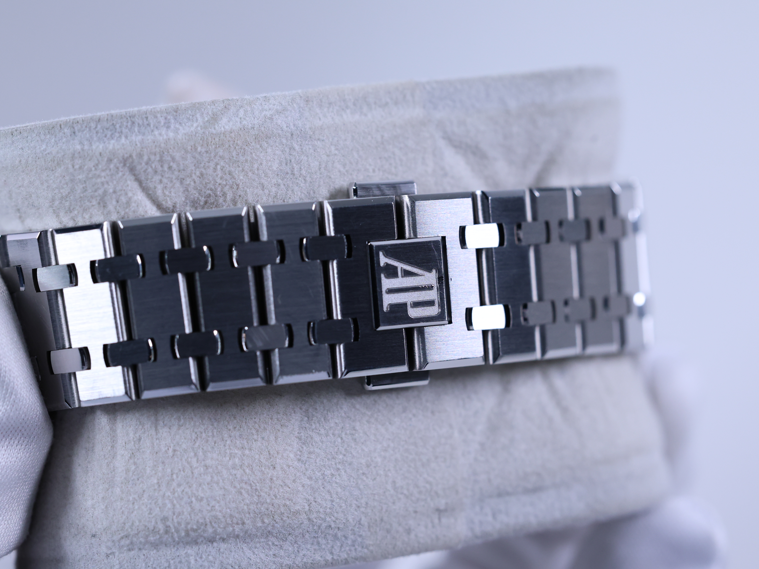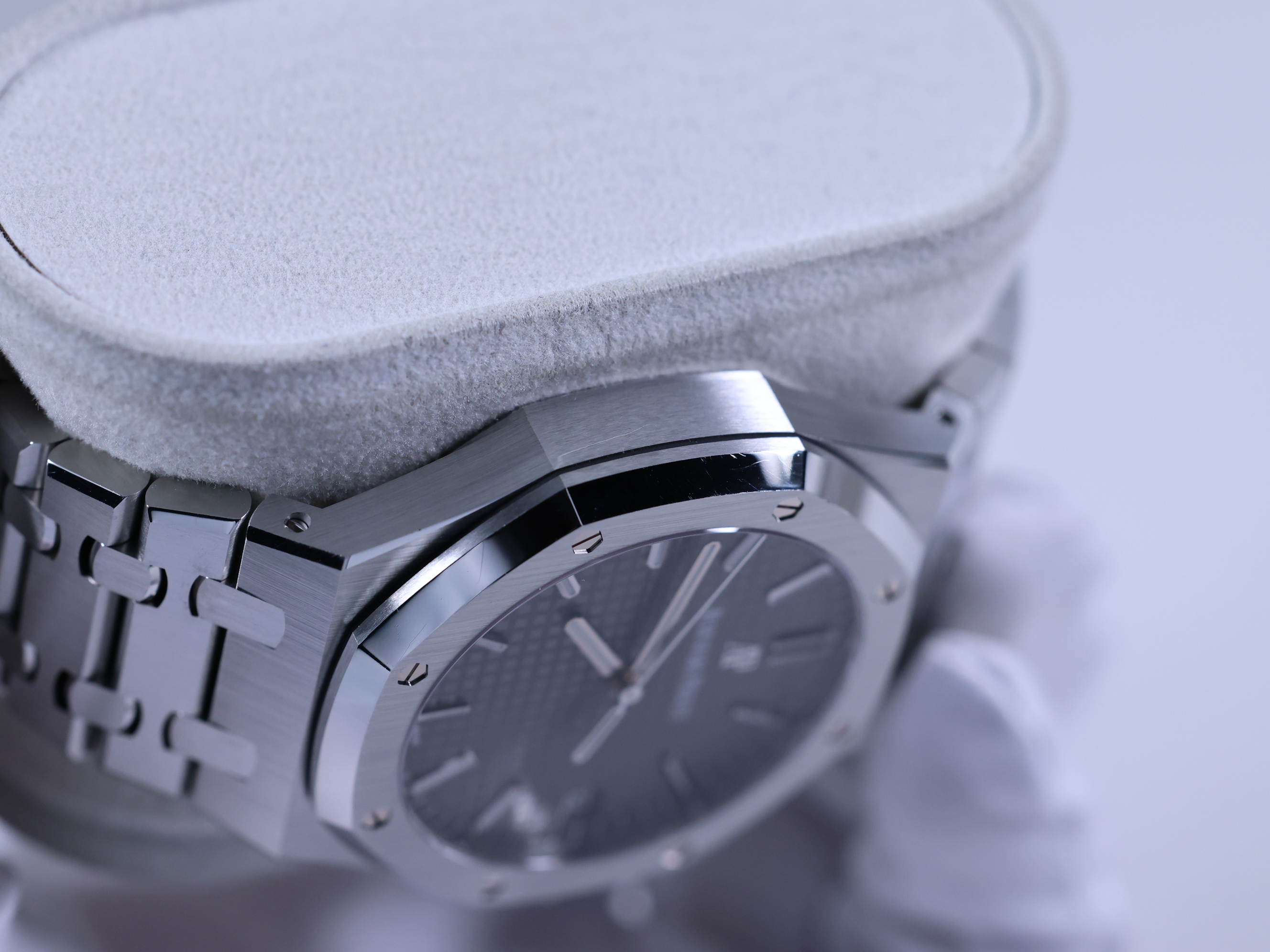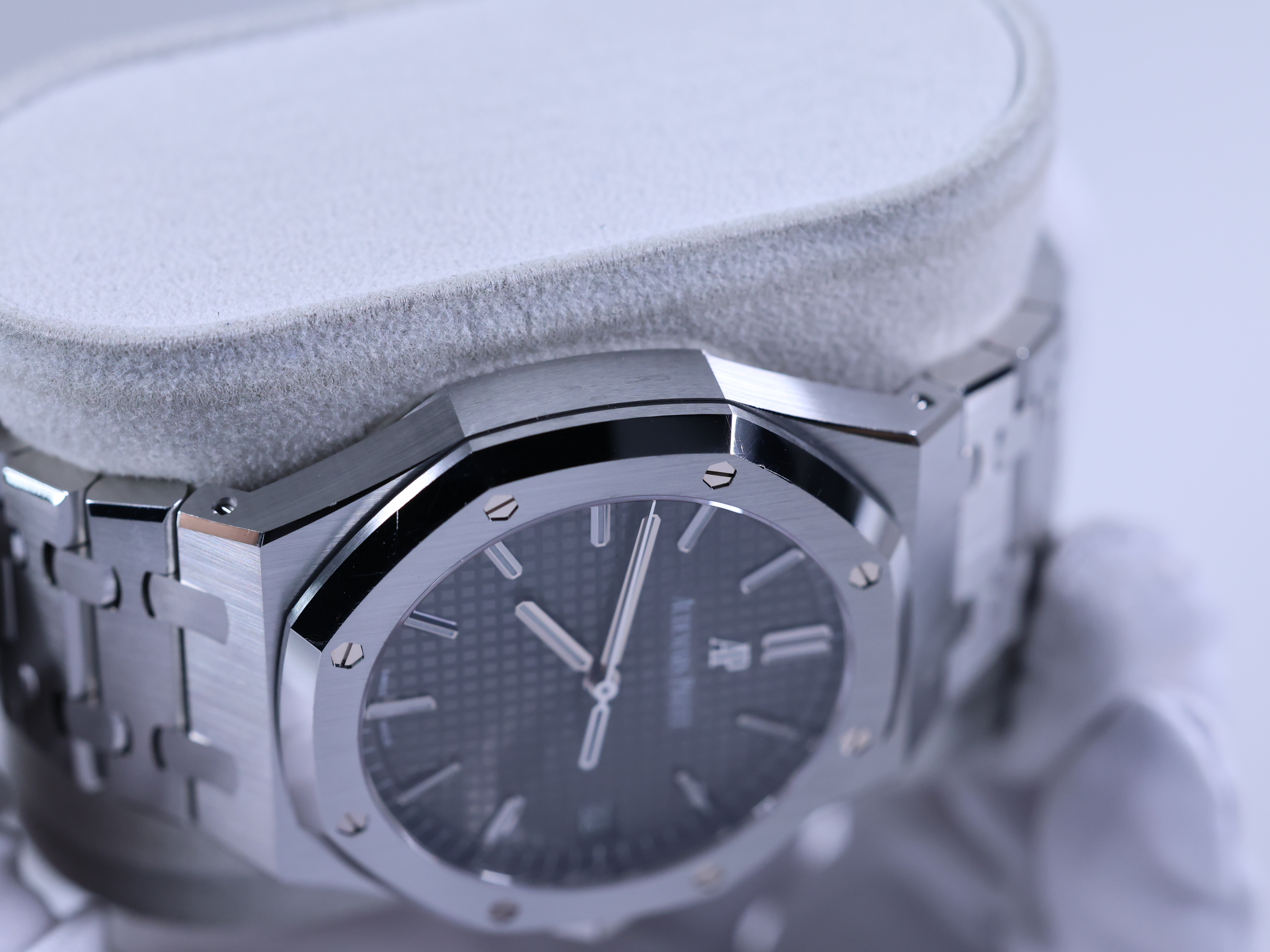RoyalOak,15500ST.OO.1220ST.02,로열오크,로얄오크,AP,오데마,피게,팔각베젤,옥타곤,제랄드젠타,제럴드젠타,시스루백,그레이,스테인레스스틸,사파이어크리스탈,41mm,AudemarsPiguet,오데마피게,스테인레스 스틸,사파이어 크리스탈,Royal Oak,Audemars Piguet,오데마 피게,스테인리스 스틸,Switzerland,Stainless steel,Butterfly clasp,Date / applied baton indices,Hour + minute + seconds,로열 오크,Royal Oak Selfwinding,Butterfly folding clasp,투명 케이스백,Royal Oak