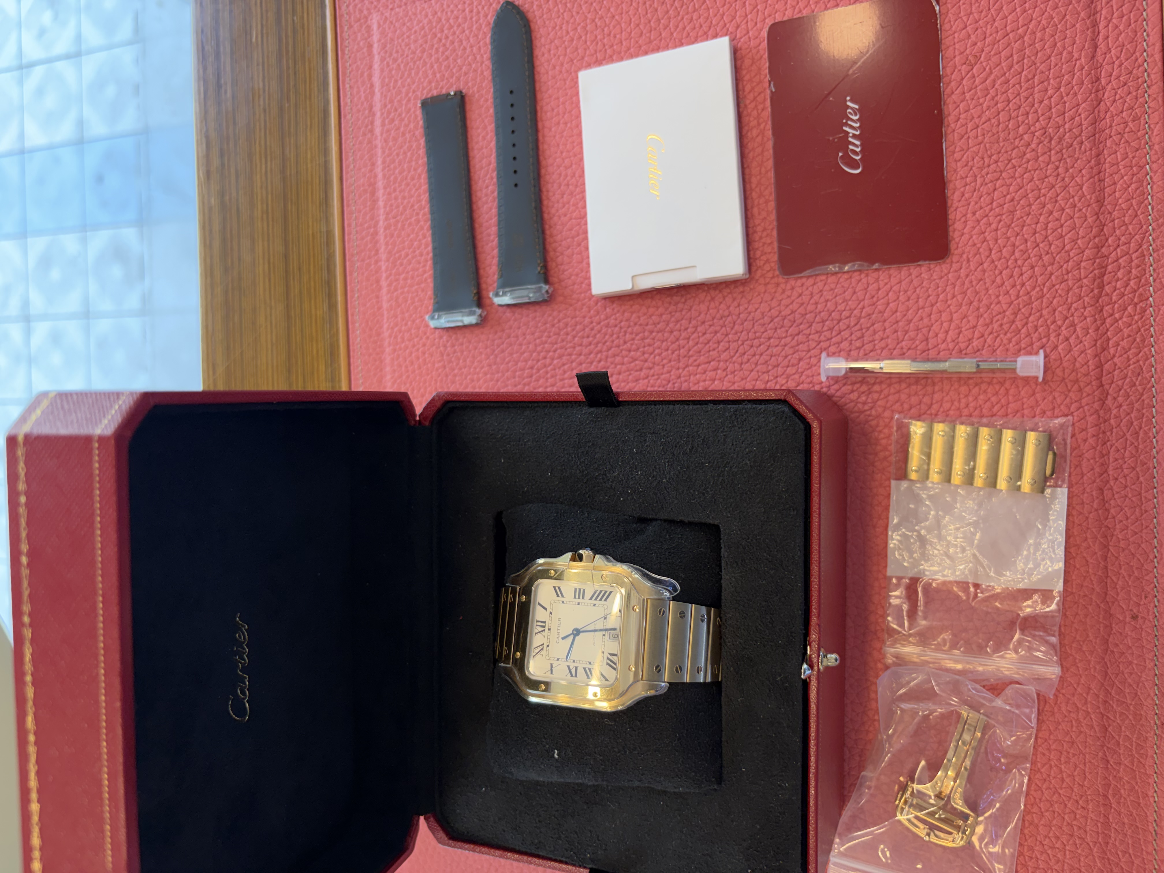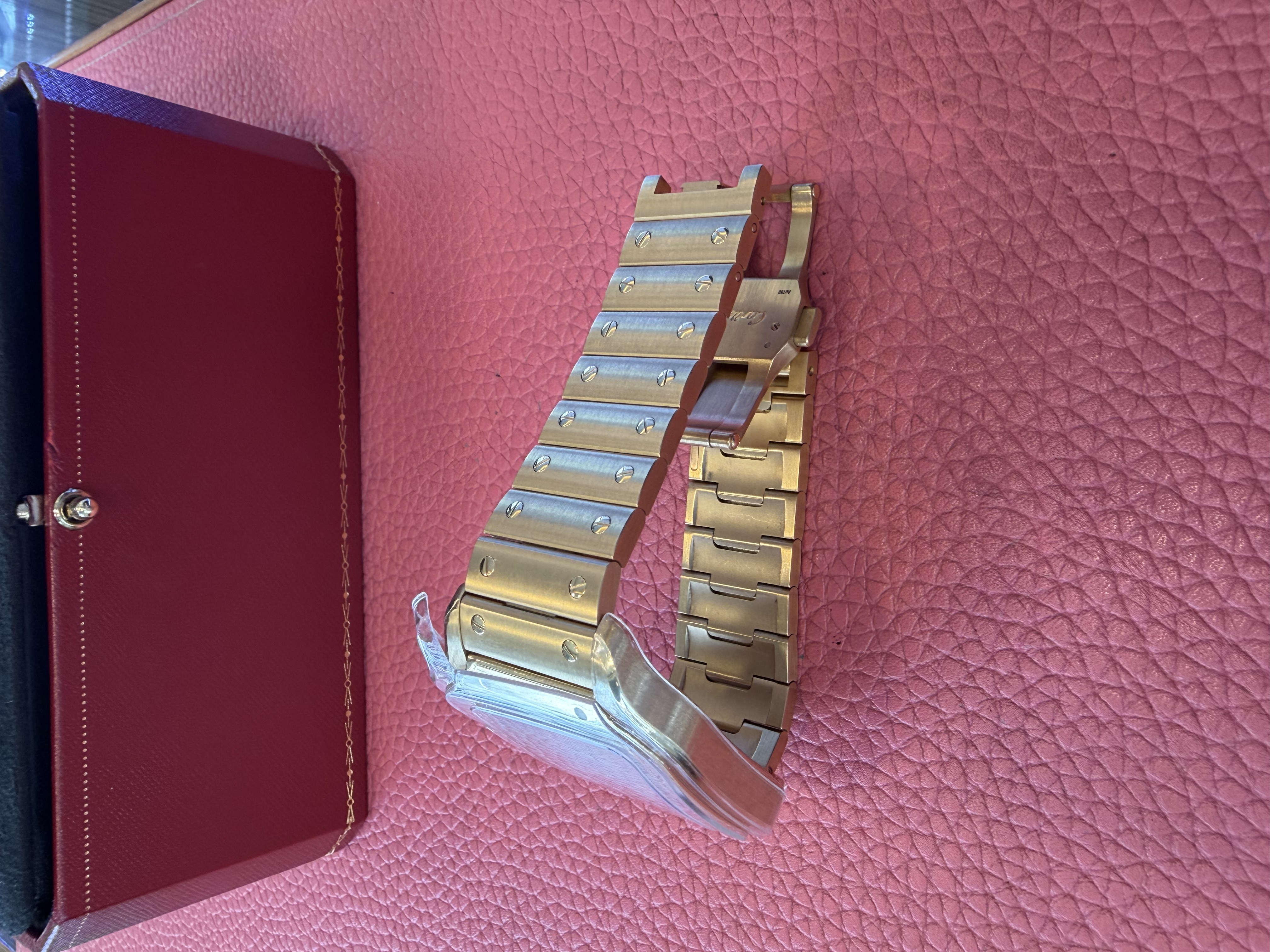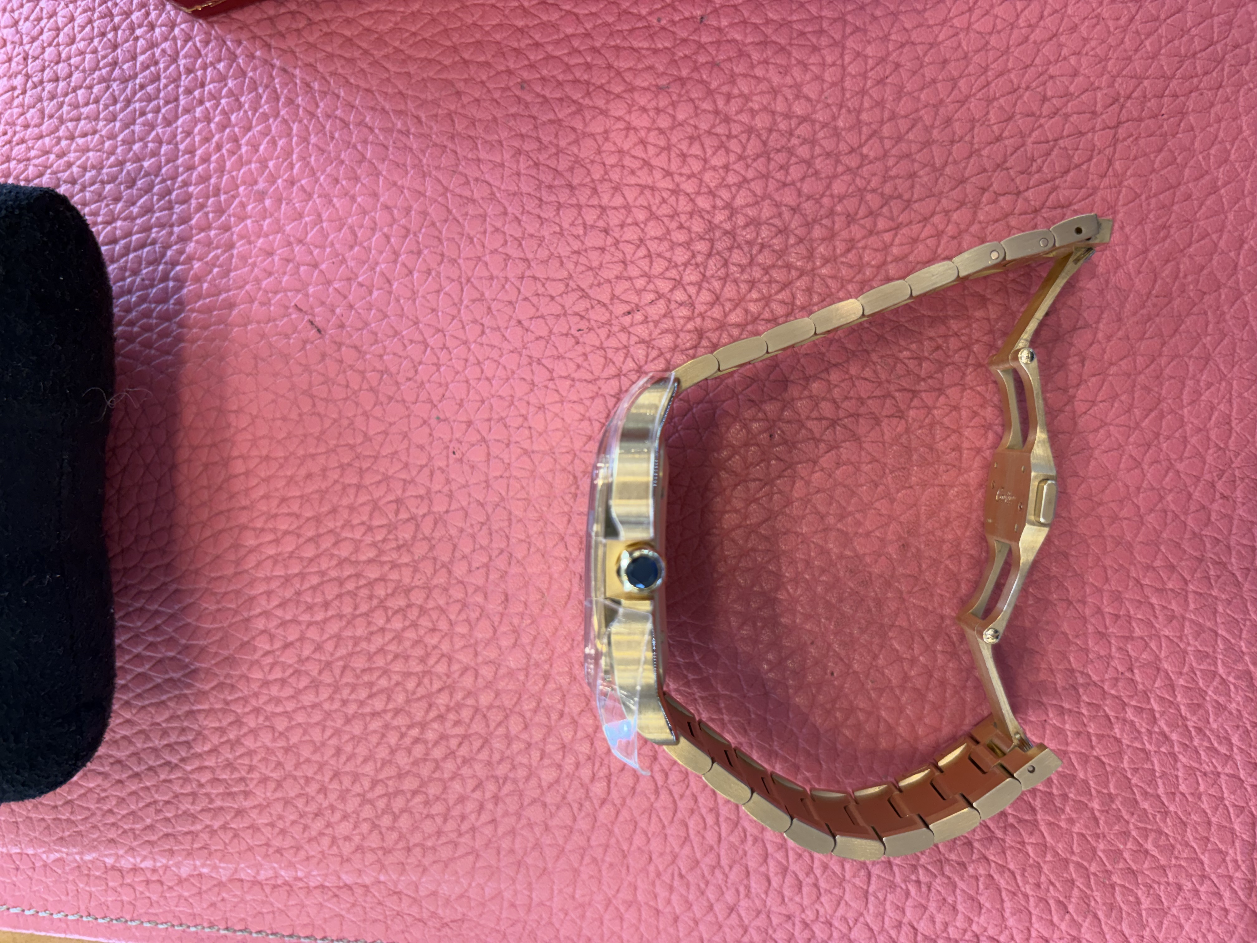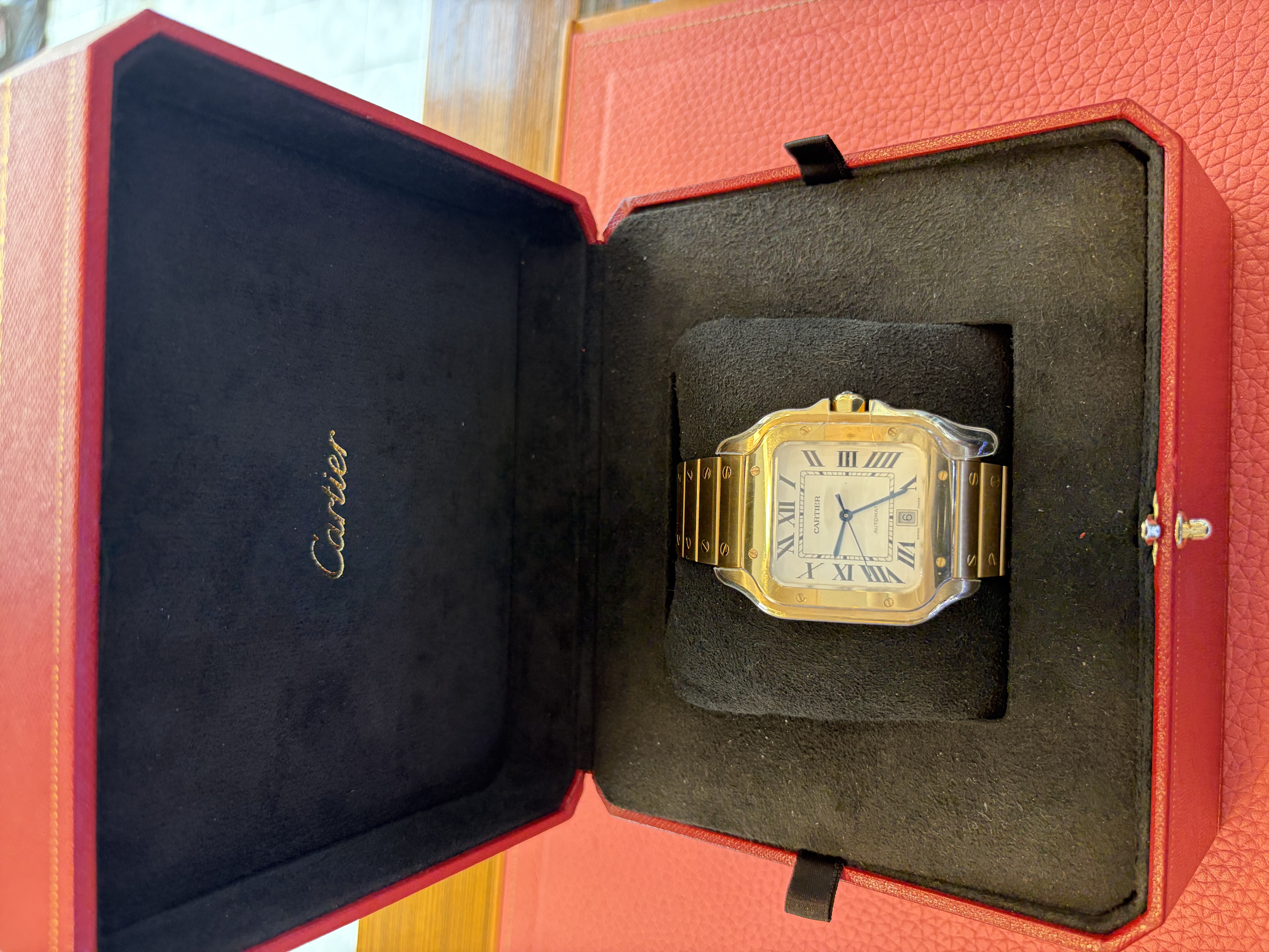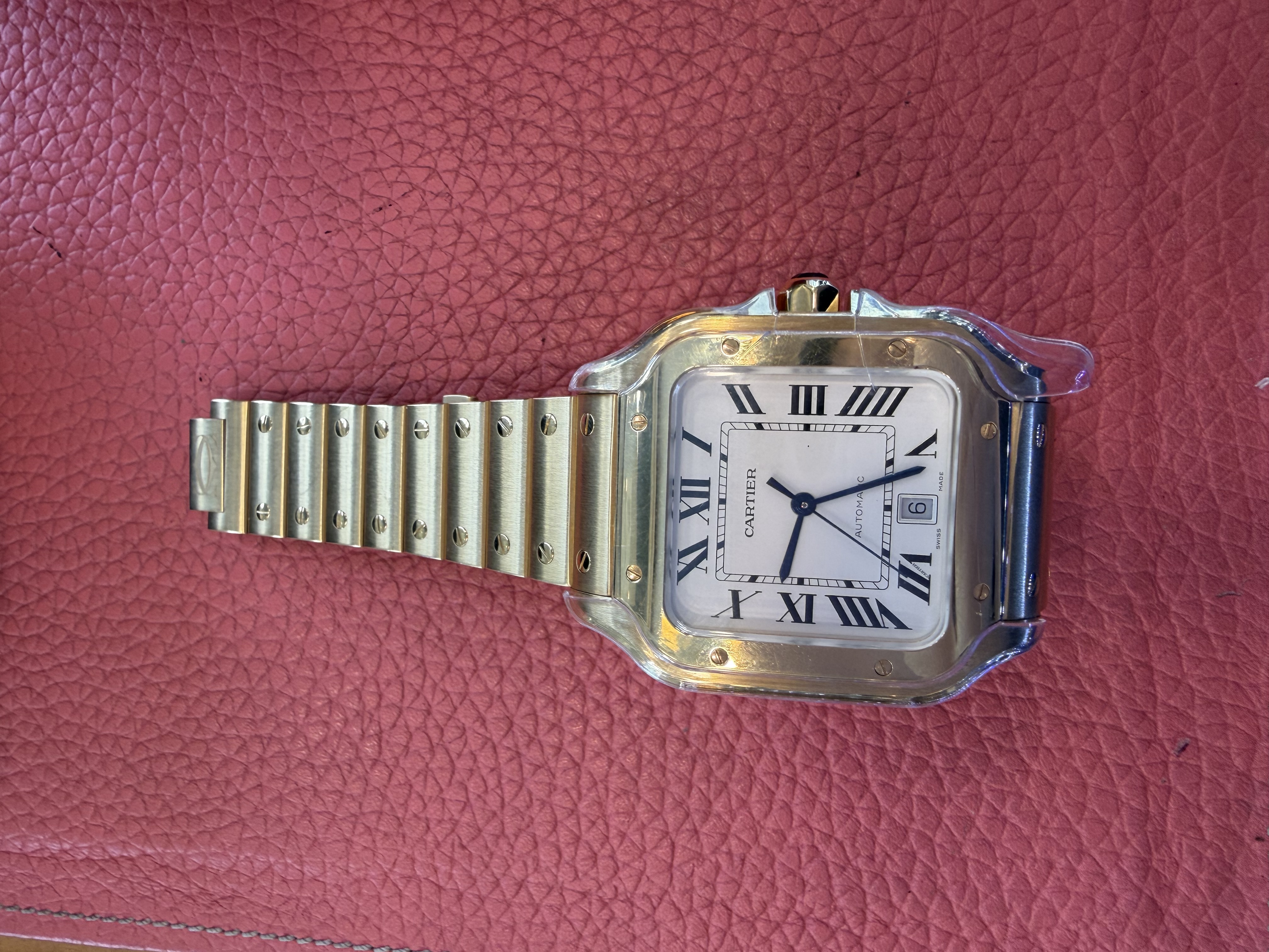 WGSA0029,roman numerals,로만,Cartier Santos LM large yellow gold automatic selfwinding self winding WGSA0029,까르띠에 카르티에 산토스 싼토스 LM 라지 옐로우 골드 옐로우골드 오토매틱 셀프와인딩 셀프 와인딩 WGSA0029,Santos LM,산토스 LM,Santos de Cartier,Cartier,까르띠에,옐로우 골드,셀프 와인딩,Yellow gold + sapphire,Butterfly folding clasp,Date / roman numeral indices,Santos de Cartier LM