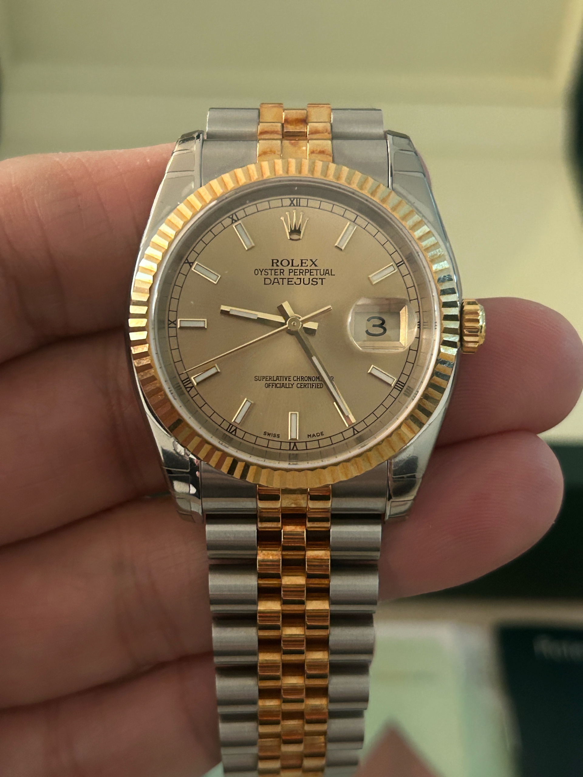 datejust36,116233,m116233-0151,샴페인,스테인레스 스틸 + 옐로우 골드,쥬빌리 브레이슬릿,사파이어 크리스탈,36mm,데이트저스트,데이저스트,데이트,옐로우골드,옐골,롤레조,콤비,데잇저스트,데잇,예물시계 추천,쥬빌리,어버이날 선물,40대 추천,단종,Rolex,스테인리스 스틸,옐로우 골드,스테인리스 스틸 + 옐로우 골드,Hour + minute + seconds,Hidden folding clasp,Date / baton indices,Datejust 36,데이저스트 36,Datejust,롤렉스,Yellow gold,스테인리스 스틸, 옐로우 골드,웨딩