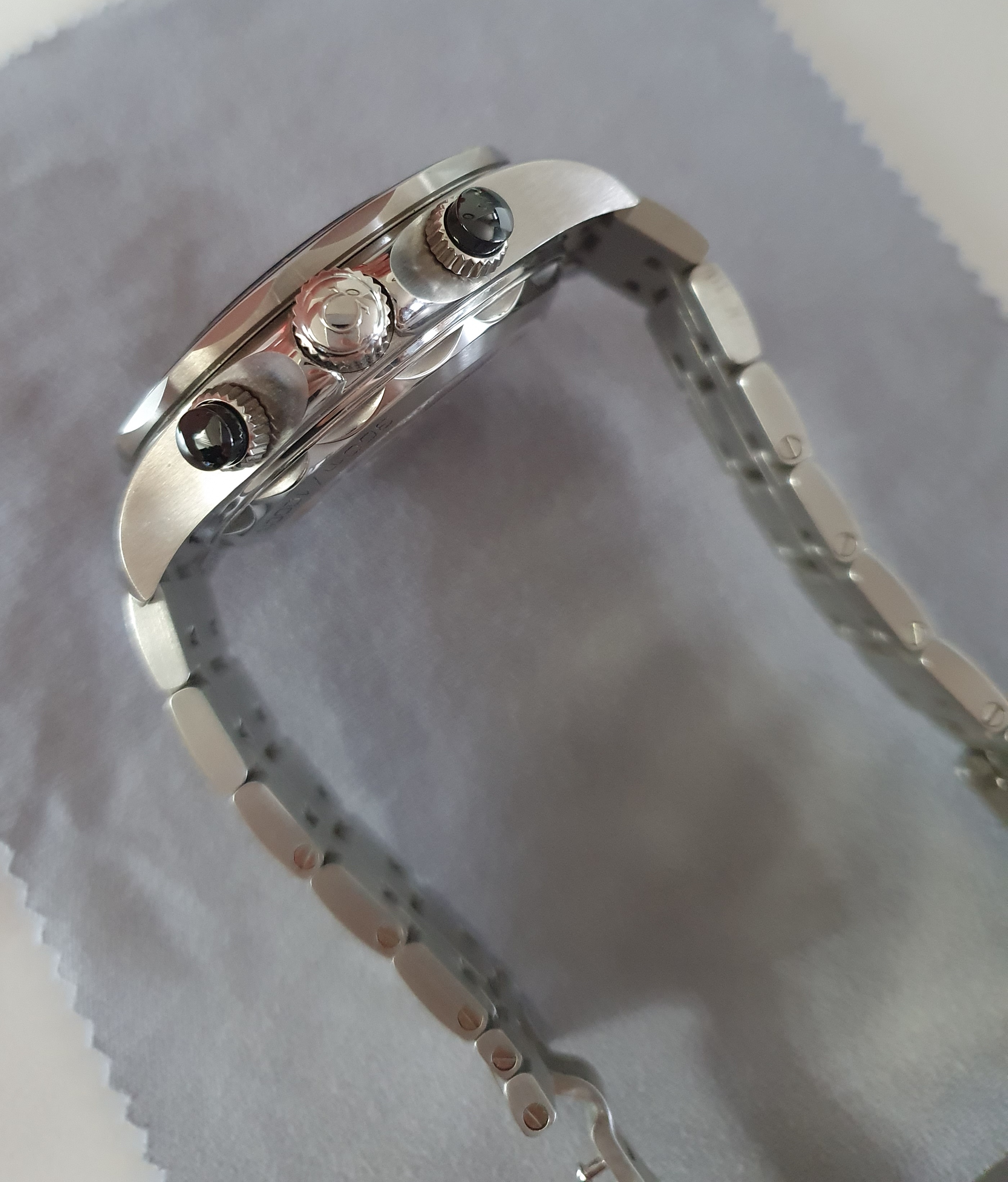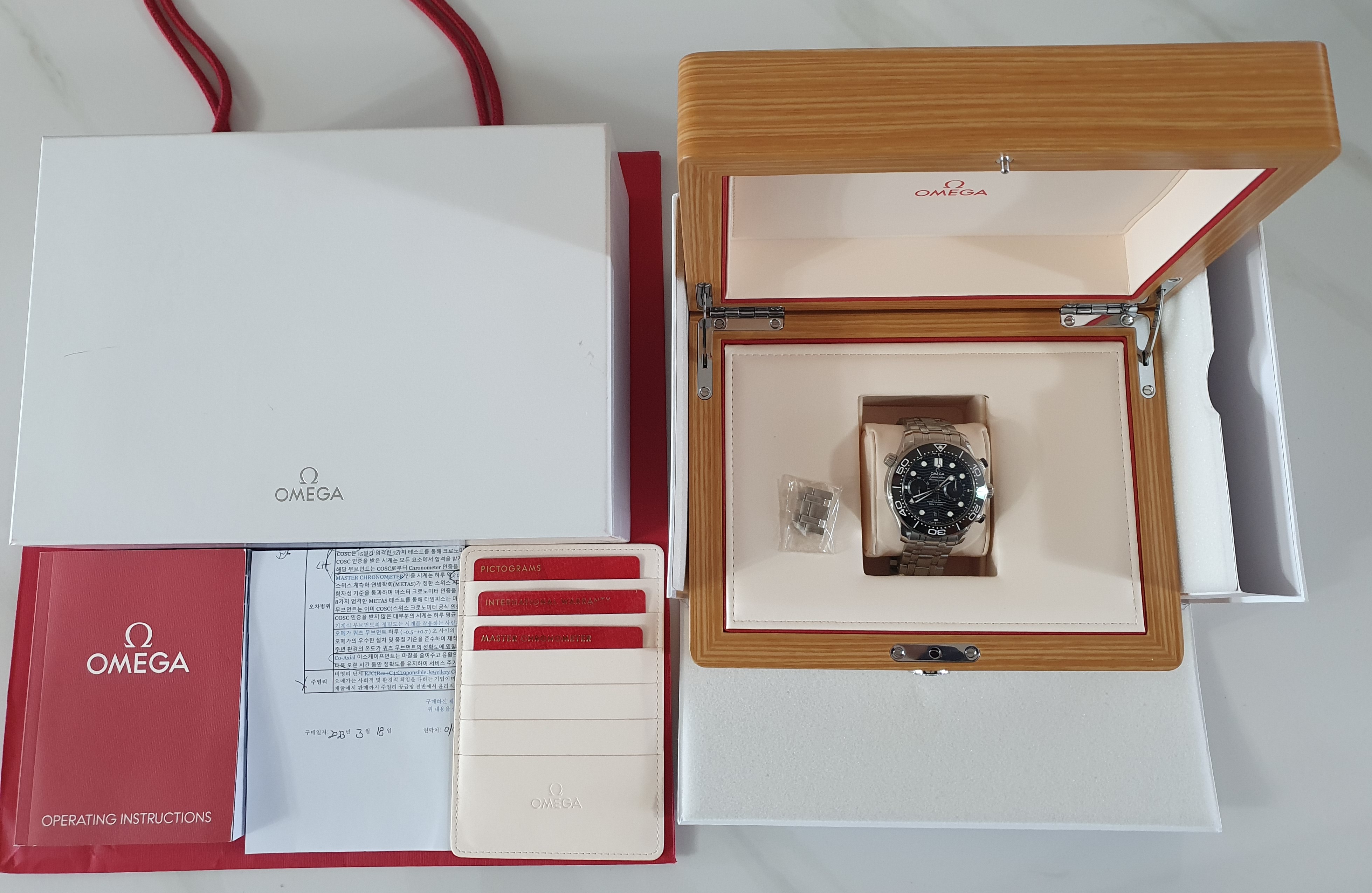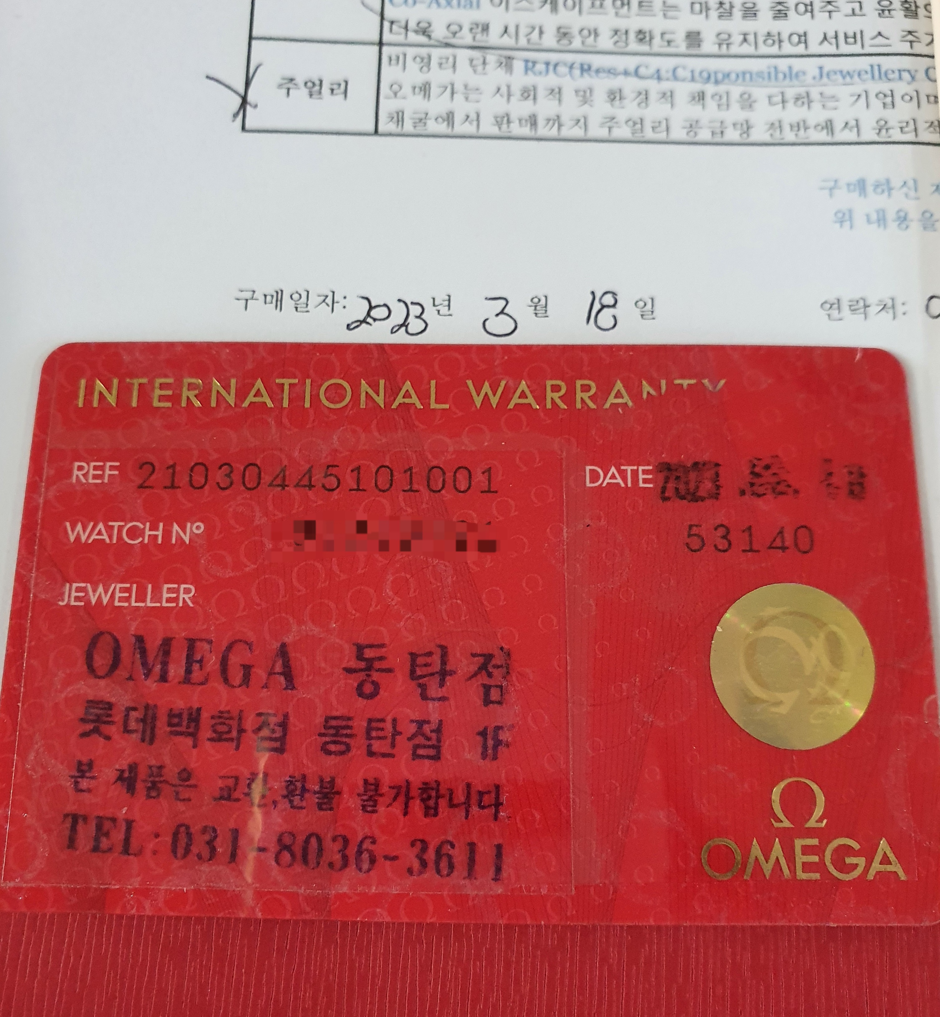 - 구성품 : 사진 참고 (시계 쿠션 겉 고리만 분실,보증카드에 스탬핑 잉크가 번져있음)