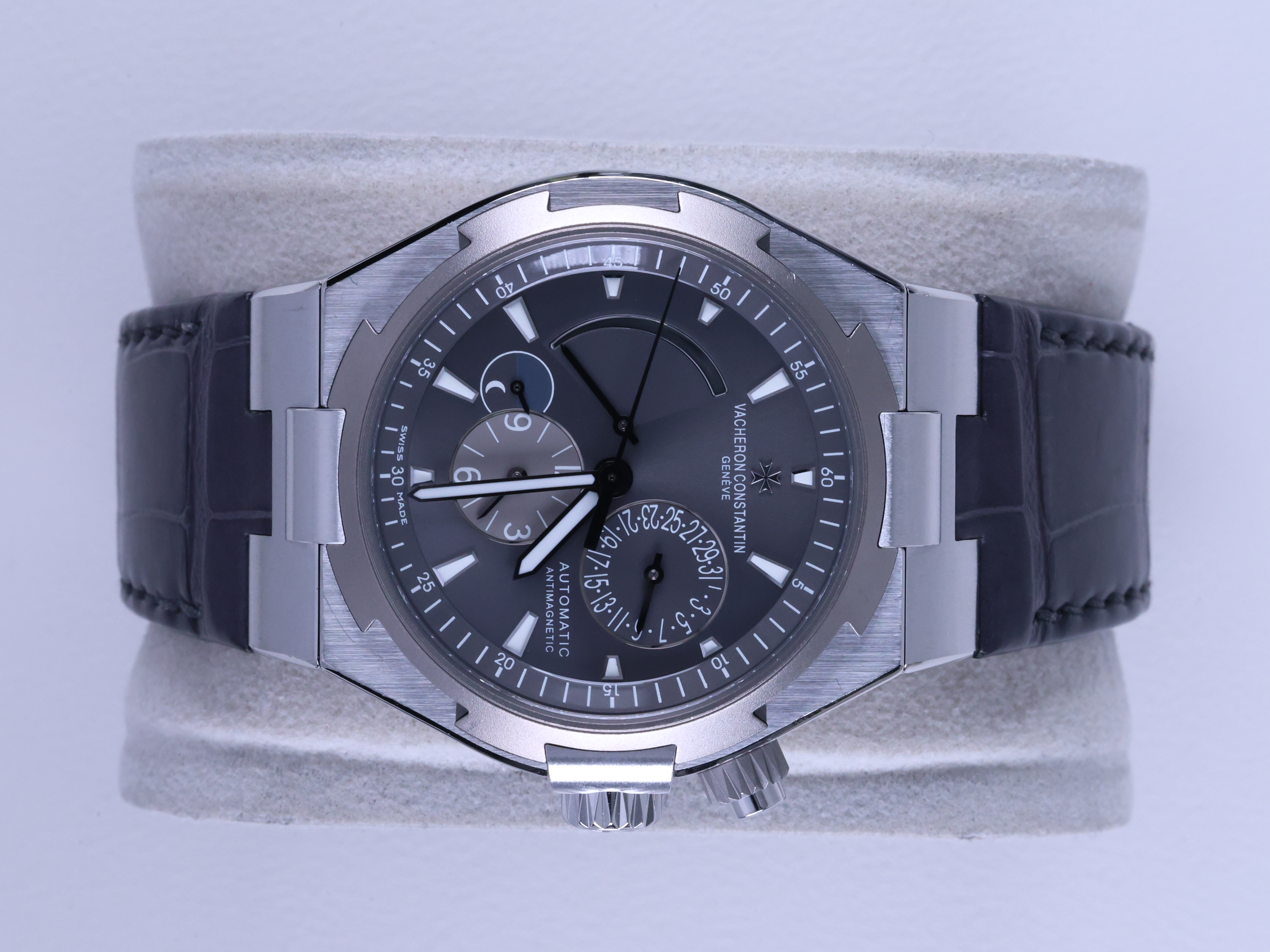 47450/000W-9511,VC Vacheron Constantin Overseas Dual Time dualtime deep stream deepstream slate grey gray steel case titanium bezel 47450,VC 바쉐론 콘스탄틴 오버시즈 듀얼타임 듀얼 타임 딥스트립 딥 스트립 스틸 케이스 티타늄 베젤 47450 42mm,Overseas Dual Time,오버시즈 듀얼 타임,Overseas,Vacheron Constantin,바쉐론 콘스탄틴,슬레이트 그레이,스테인리스 스틸,스트랩,42mm,티타늄,셀프 와인딩,Stainless steel,Deployant folding clasp with anchor buckle,Date,2nd time-zone,am/pm indicator,power reserve / applied trapezoidal indices,Date, 2nd time-zone, am/pm indicator, power reserve / applied trapezoidal indices
